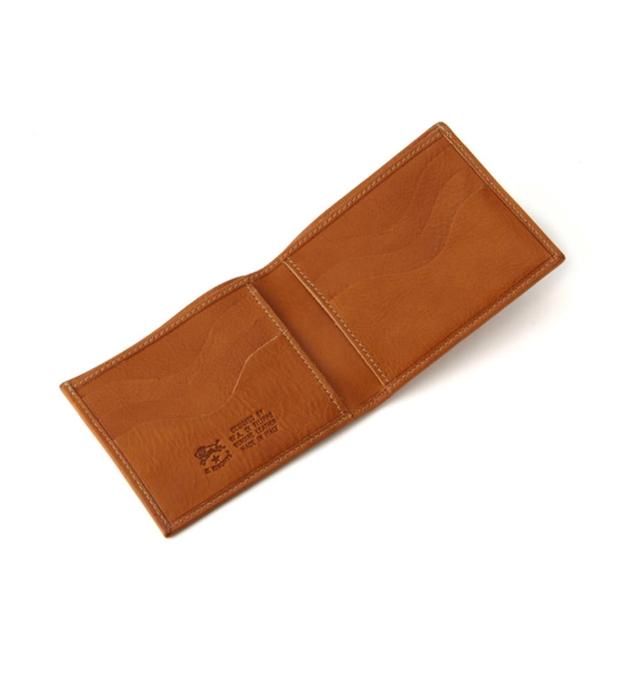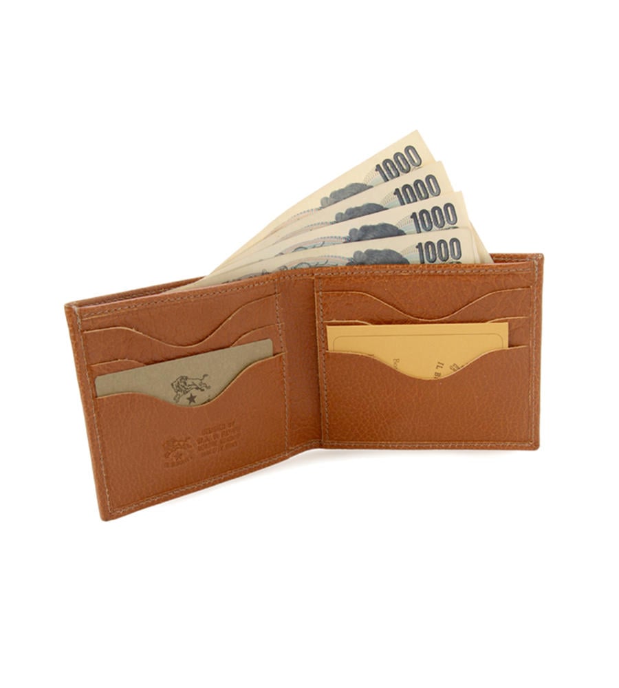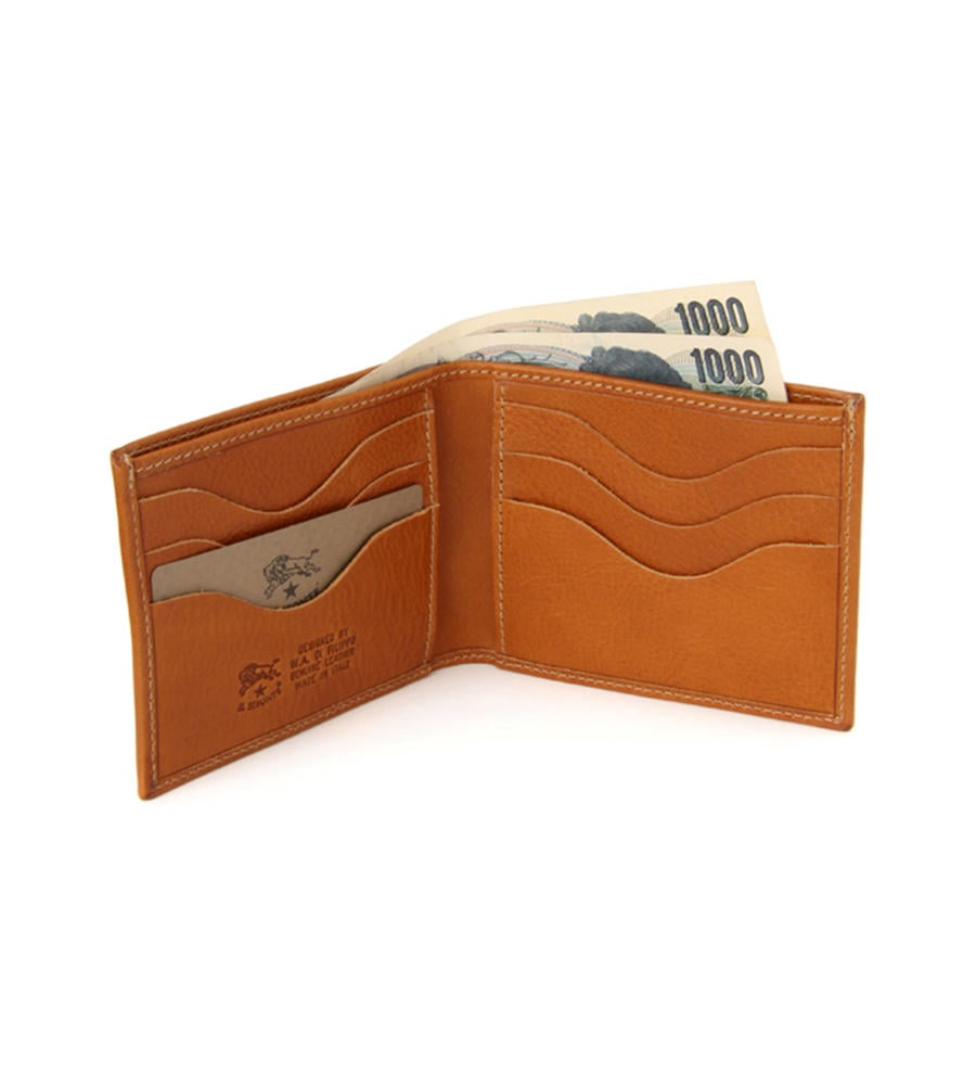 スタンダードな2つ折りのレザーウォレットです。コインケースがないシンプルな仕様の財布は、長く愛される定番財布の1つです。