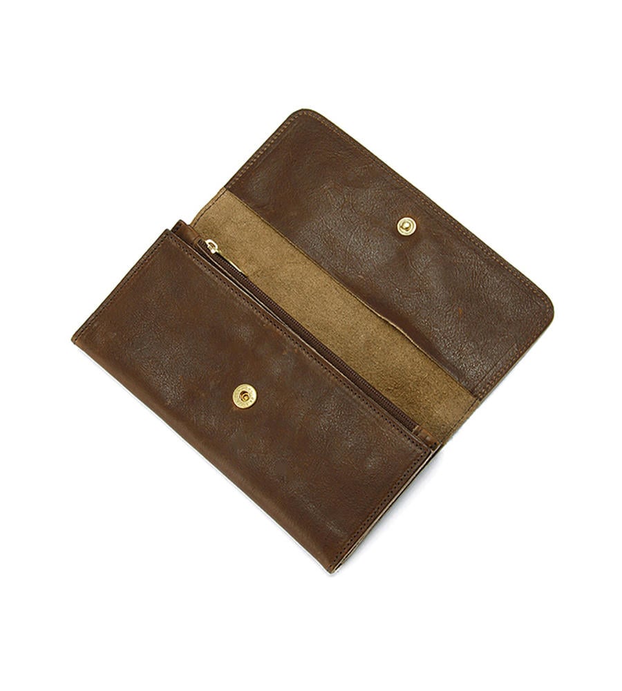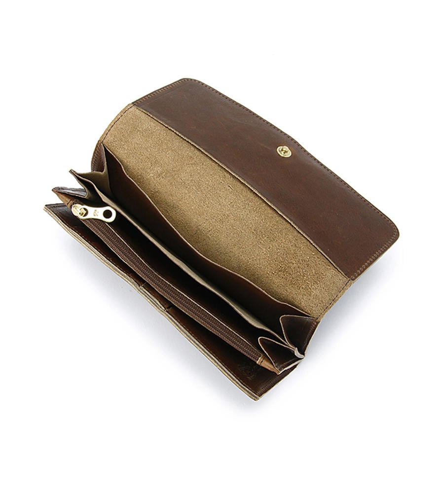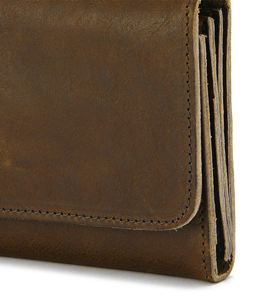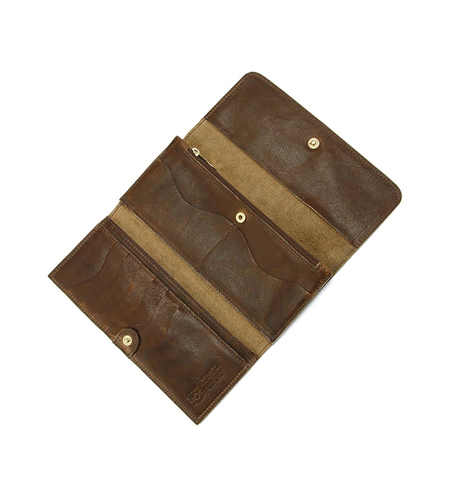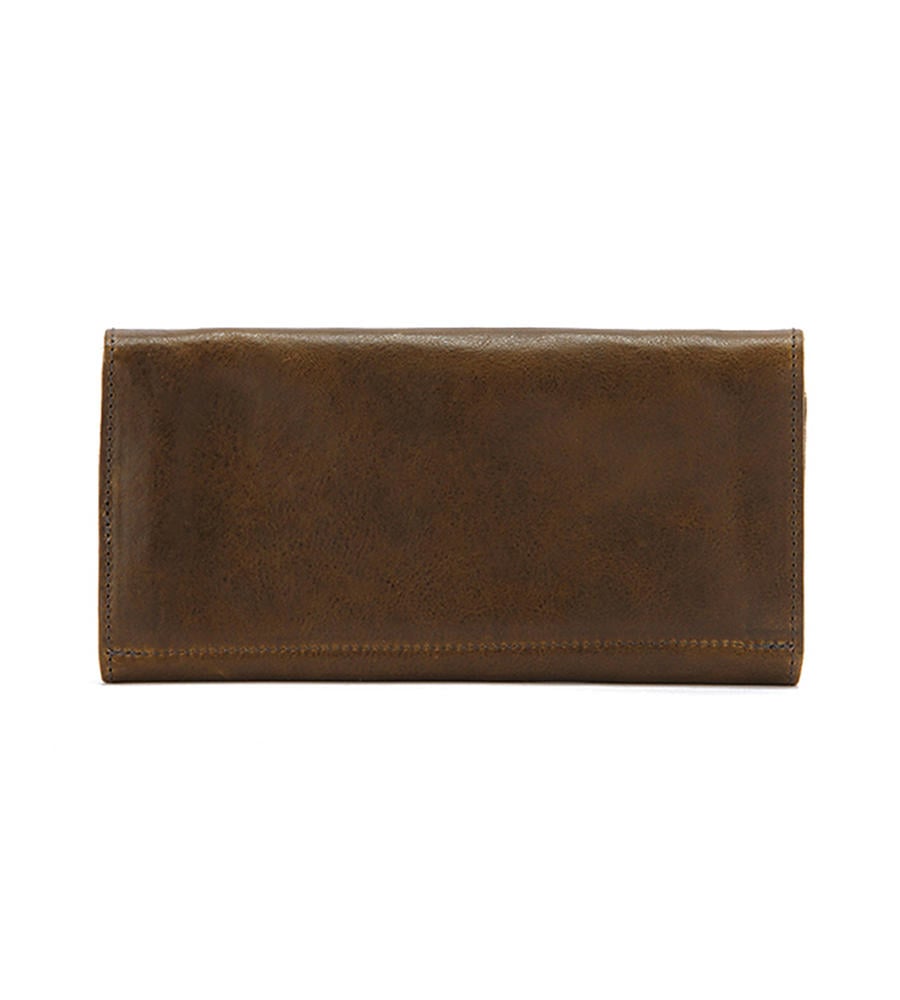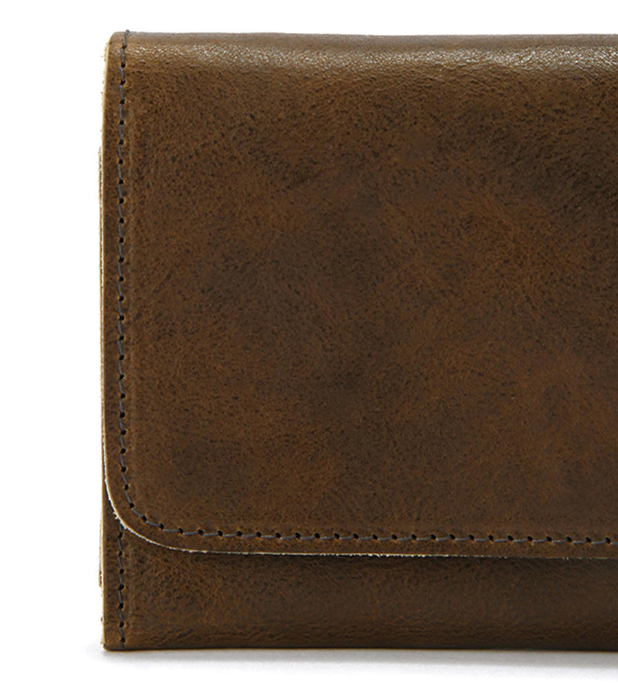 使い込んだような風合いを再現したバケッタヴィンテージを採用したロングウォレット。3つ折りの機能的で収納力の高い仕様はそのままで、オリジナルレザーとは一味違う雰囲気が楽しめます。