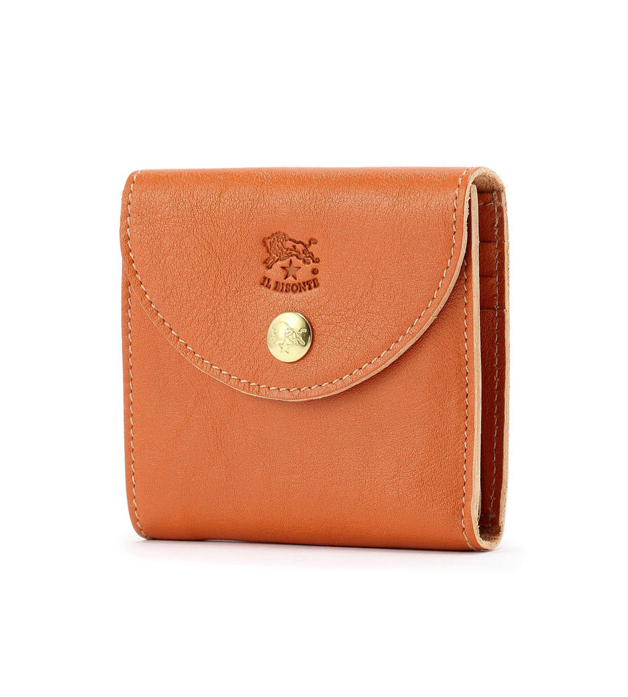 多彩な色展開を揃えたスモールサイズの2つ折り財布。フラップを開くと、小銭・札・カードの収納スペースが設置されています。ポケットや小さなバッグにも収まりやすく、必要最低限のものを機能的に持ち運ぶことができます。