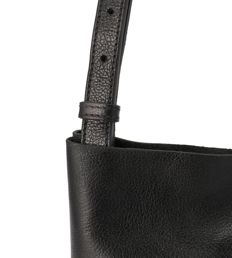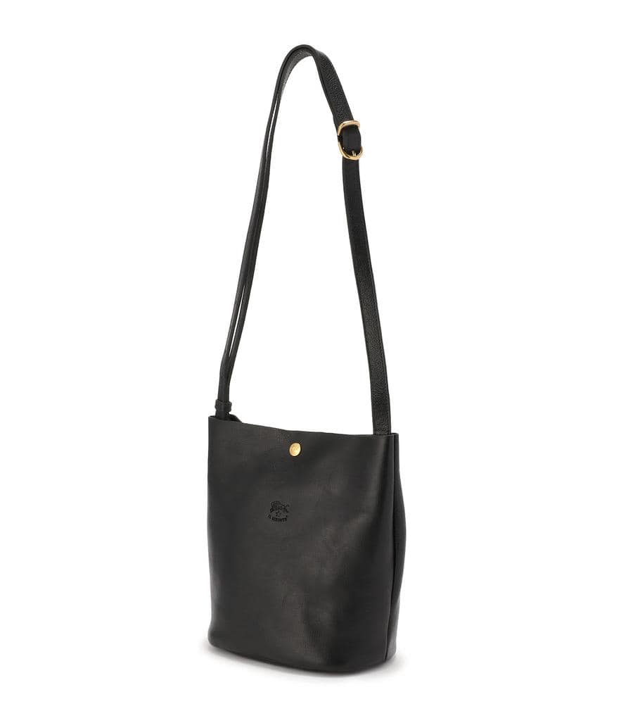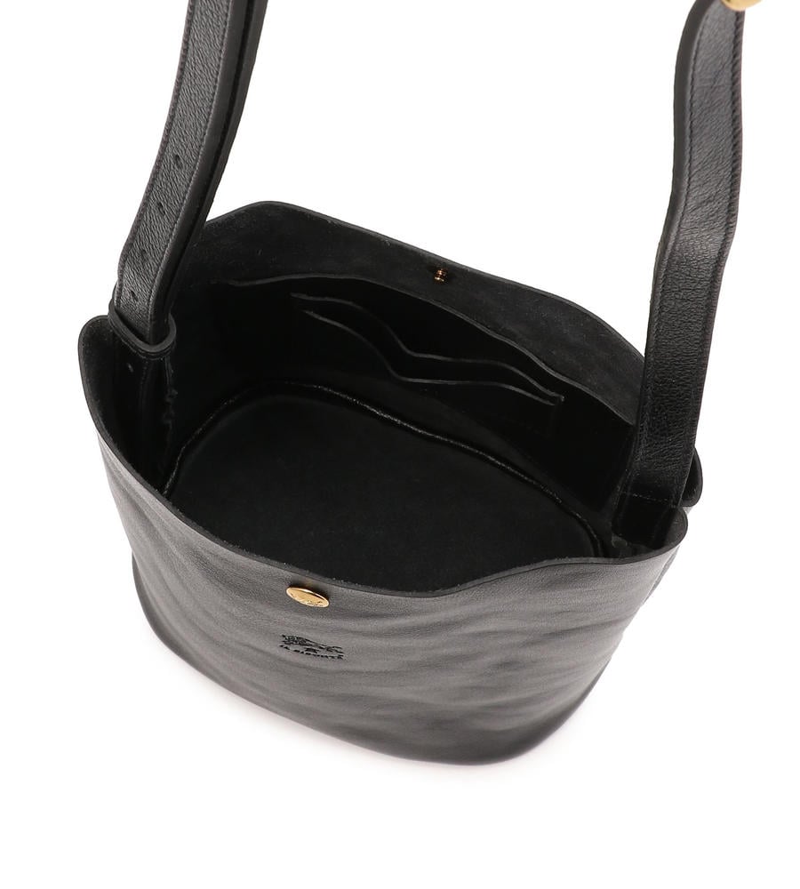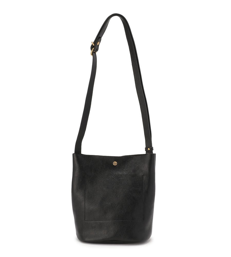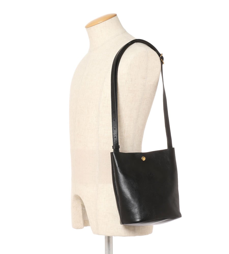 肩に掛けやすいサイジングに仕上げたバケツフォルムのレザーショルダーバッグ。スナップボタン仕様、内側にはポケットつき。シンプルなデザインが幅広いコーディネートに合わせていただけます。フロントにはブランドロゴの型押しを添えて。
