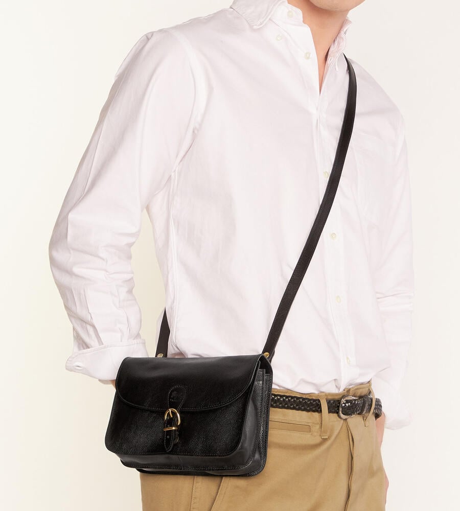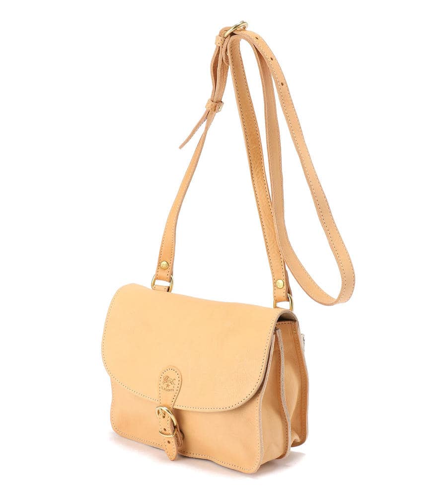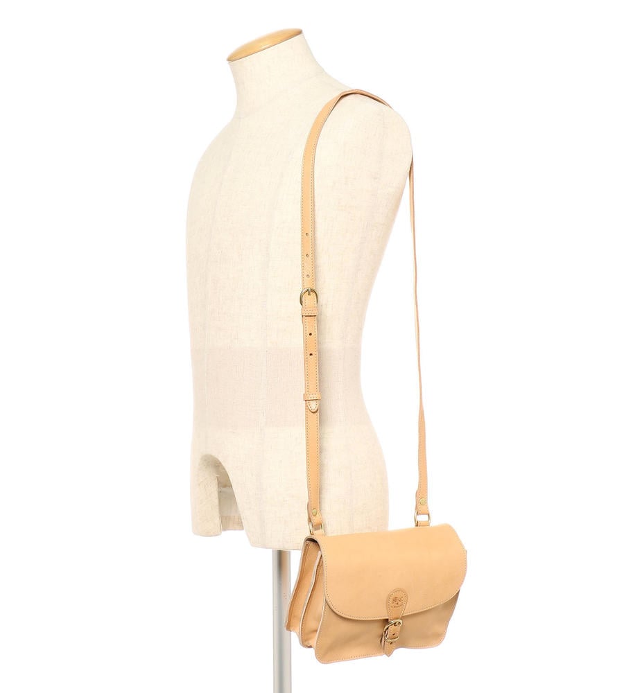 バイソンロゴの型押しとベルテッドデザインがアクセントになったバッグです。開閉はマグネット仕様で中身の出し入れもスムーズ。内側中央に仕切りを設けた二層構造、小物収納に便利なファスナーポケットを備えています。ショルダーベルトは長さの調整が可能です。