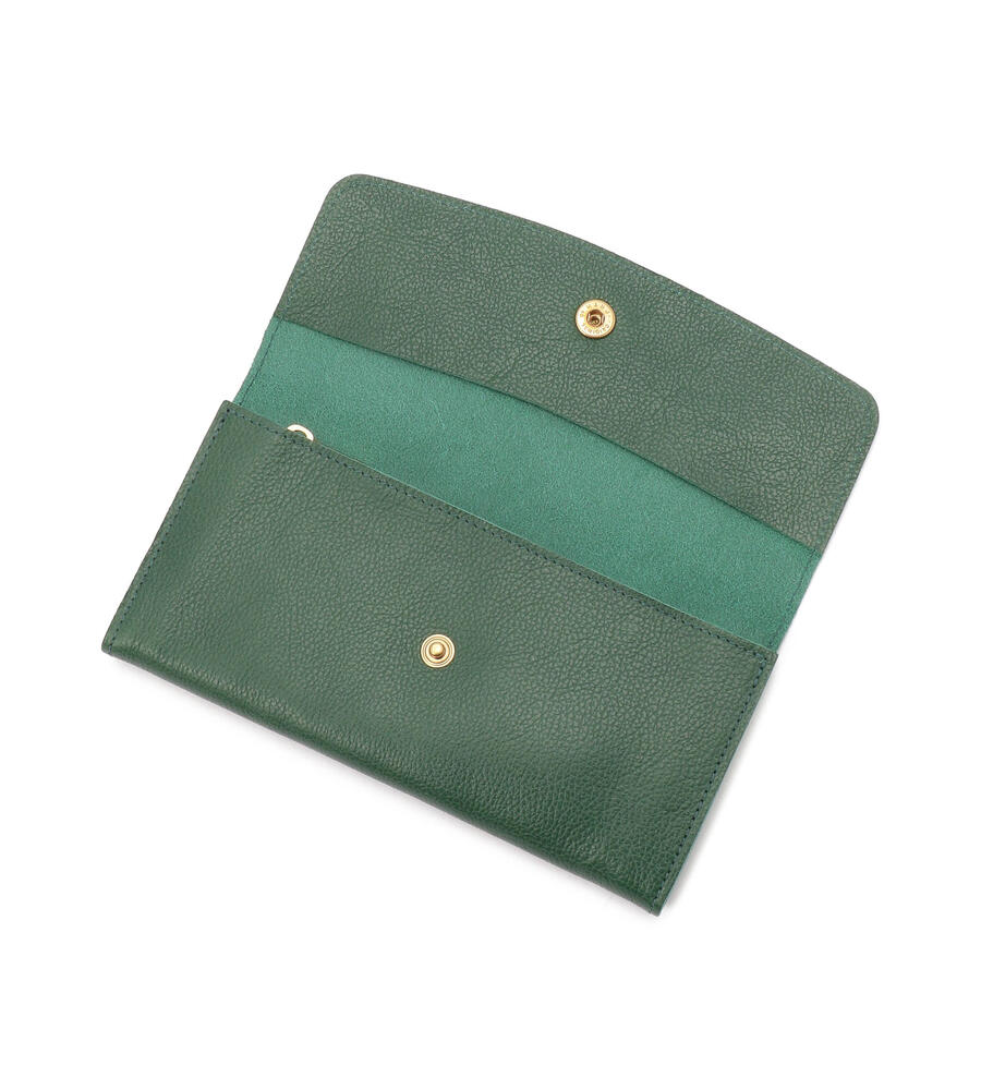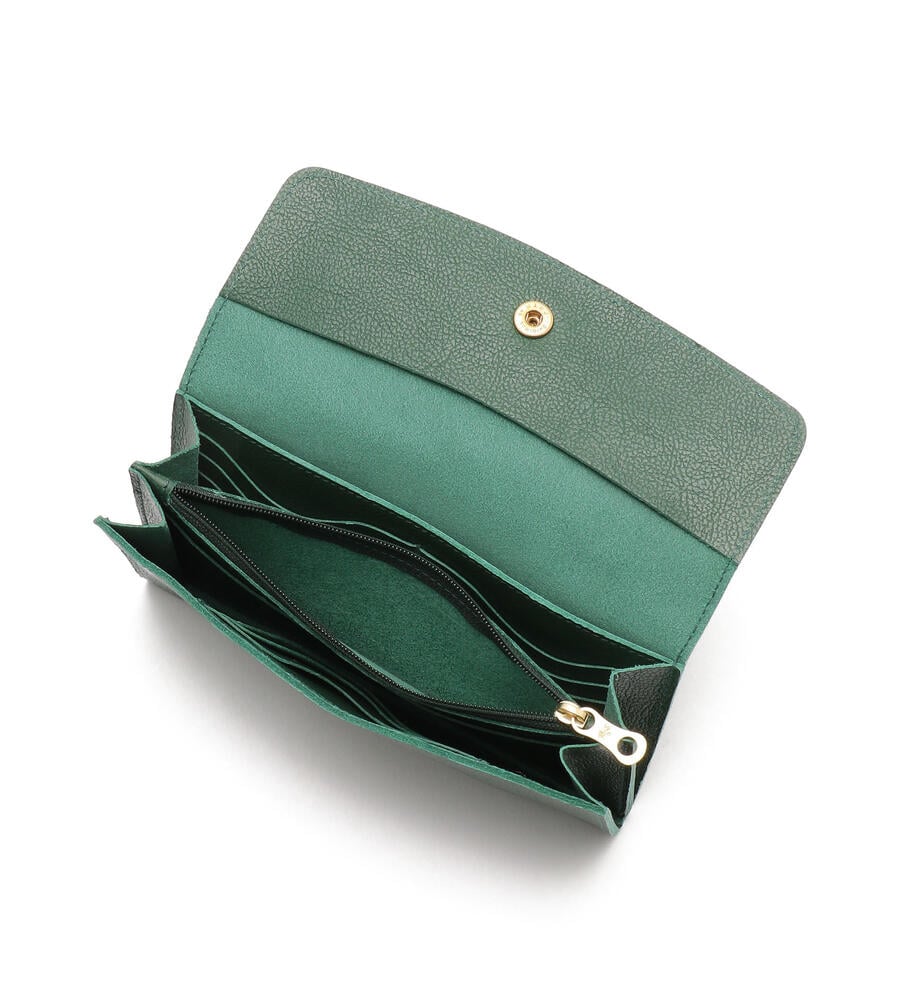 バイソンロゴの型押しとゴールドボタンがポイントになったロングウォレット。内側中央に大きく開くジップコインポケットを配置し、両側にカードホルダーと札入れを備えています。使うほどに味わいが増す、しなやかなレザーの質感をお楽しみいただけます。