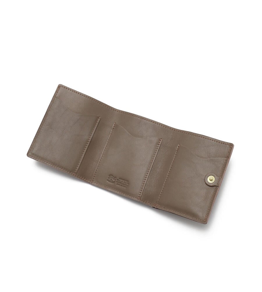 コンパクトなフォルムで持ち運びしやすい3つ折りウォレットを豊富なカラーバリエーションでラインナップ。外側に配置したフラップコインケースは使い勝手も抜群。スナップボタンを外すと内側にカードホルダーと札入れを備えています。