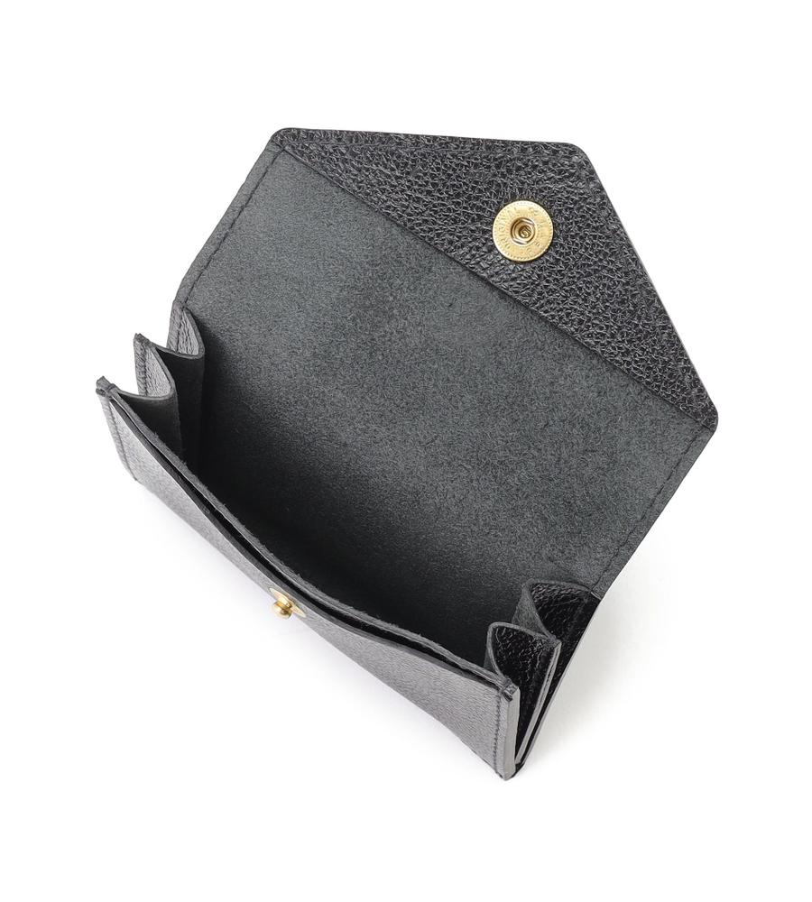 使うほどに手肌に馴染んでいく、皮の質感にこだわったシンプルなカードケース。角のあるシャープなフラップにロゴ鋲が映えるスタイリッシュなデザイン。トレンドに左右されないミニマルさで、ギフトにもおすすめしたいひと品です。内部には2箇所の収納スペースを設け、使いやすさにもこだわりました。