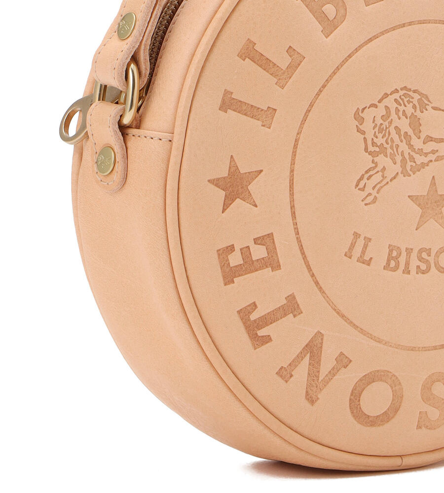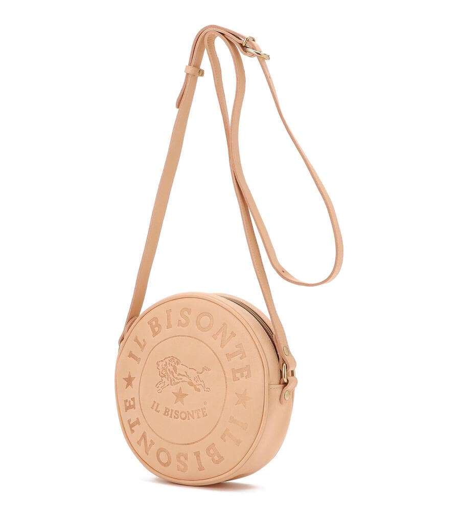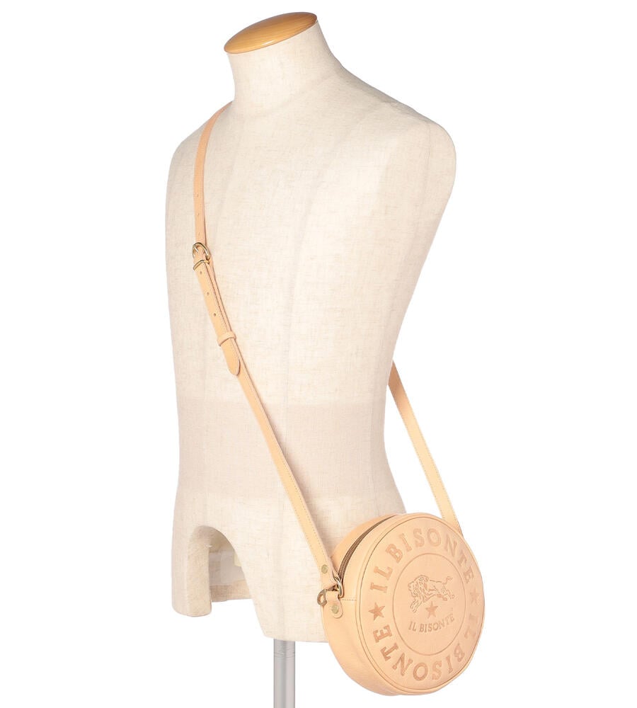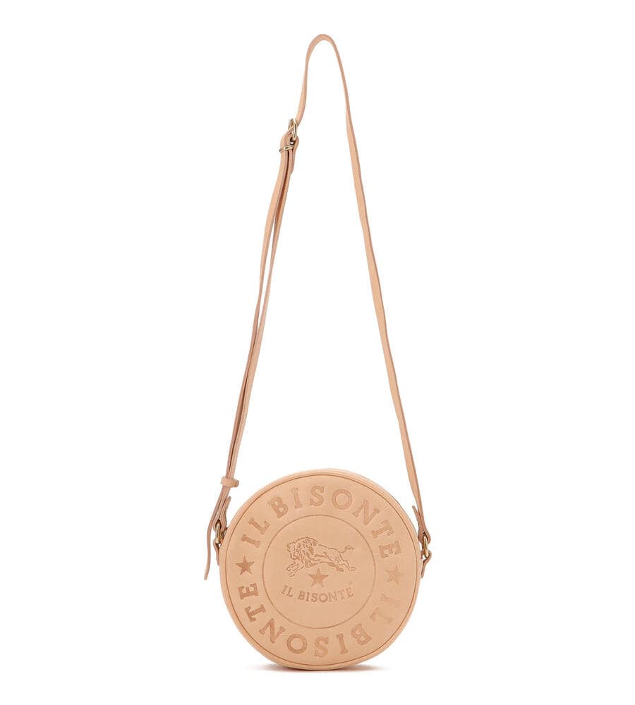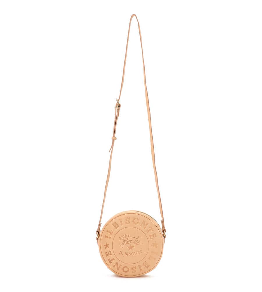 イルビゾンテのブランドロゴマークを大きくフロントに型押しした、インパクトあるデザインのショルダーバッグ。ラウンド型のフォルムがスタイリッシュなポイント。しっかりとマチのある仕様に加え、ショルダー部分は長さ調整可能で肩からかけたり斜めがけにも便利。スタイリッシュな着こなしが決まるアイテムです。