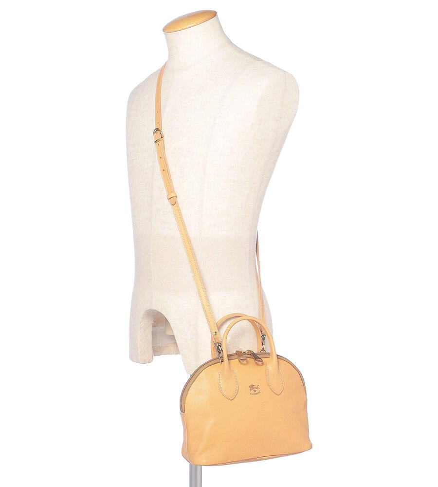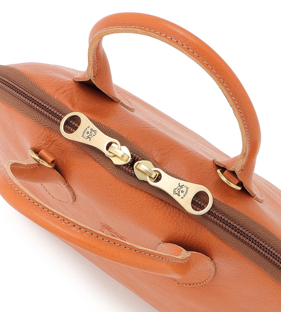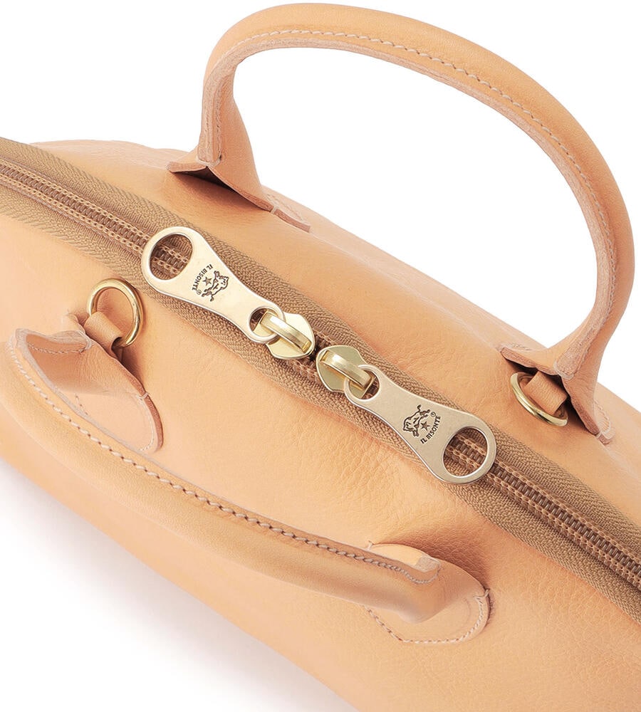 使うほどに風合いが出る、上質なカーフスキンで仕立てられた、ダブルジップハンドバッグ。ブランドロゴの型押しがお洒落なワンポイント。取り外し可能なストラップ付きで、ショルダーバッグと2通りの使い方が可能。中面はポケット付きで小物の整理がしやすく、機能面も優秀。お出かけやお仕事に便利なアイテムです。