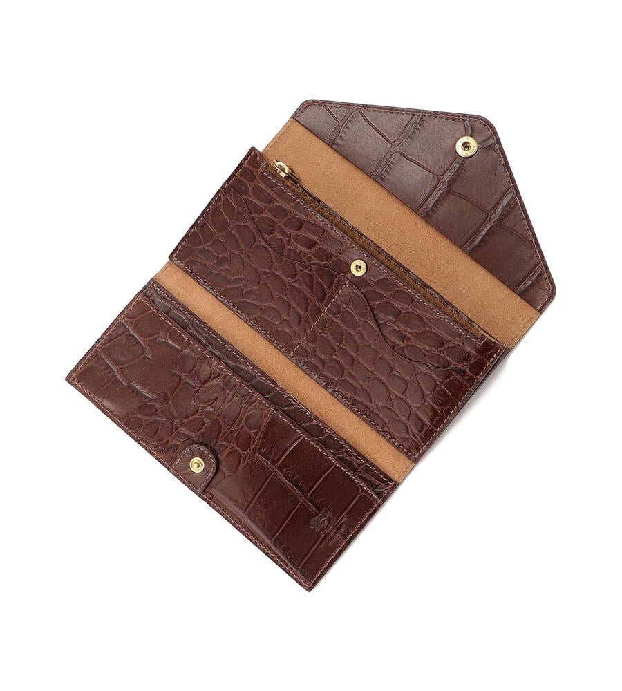 エンボス加工されたクロコダイル柄が特徴の“CROC EMBOSSED LEATHER(クロコ エンボスドレザー)”ライン。クロコ特有の凹凸が美しく表現され、色の濃淡や艶感まで丁寧に調整し、リアルクロコを再現。深みのある色調がクラシカルで、大人の落ち着きのある表情を演出します。