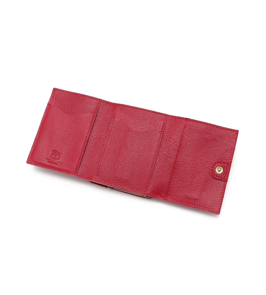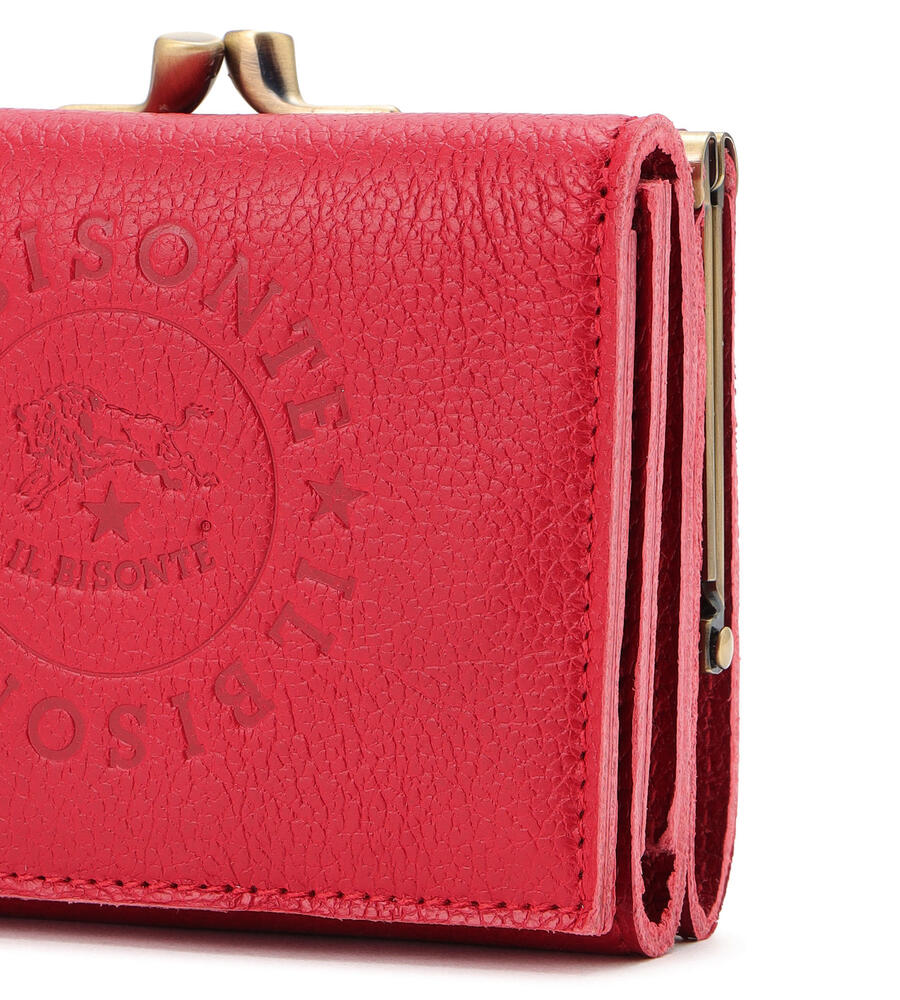 フロントに大振りなバイソンロゴをあしらったトリフォルドウォレット。コンパクトながら札入れ・カードポケット6段・がま口小銭入れを備え、必要最低限の現金を収納できるアイテム。小さなバッグにも収まりやすく持ち運びにも便利です。