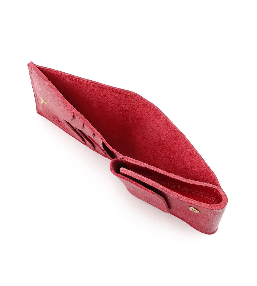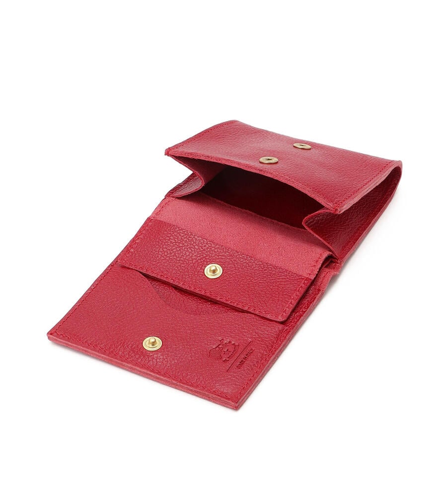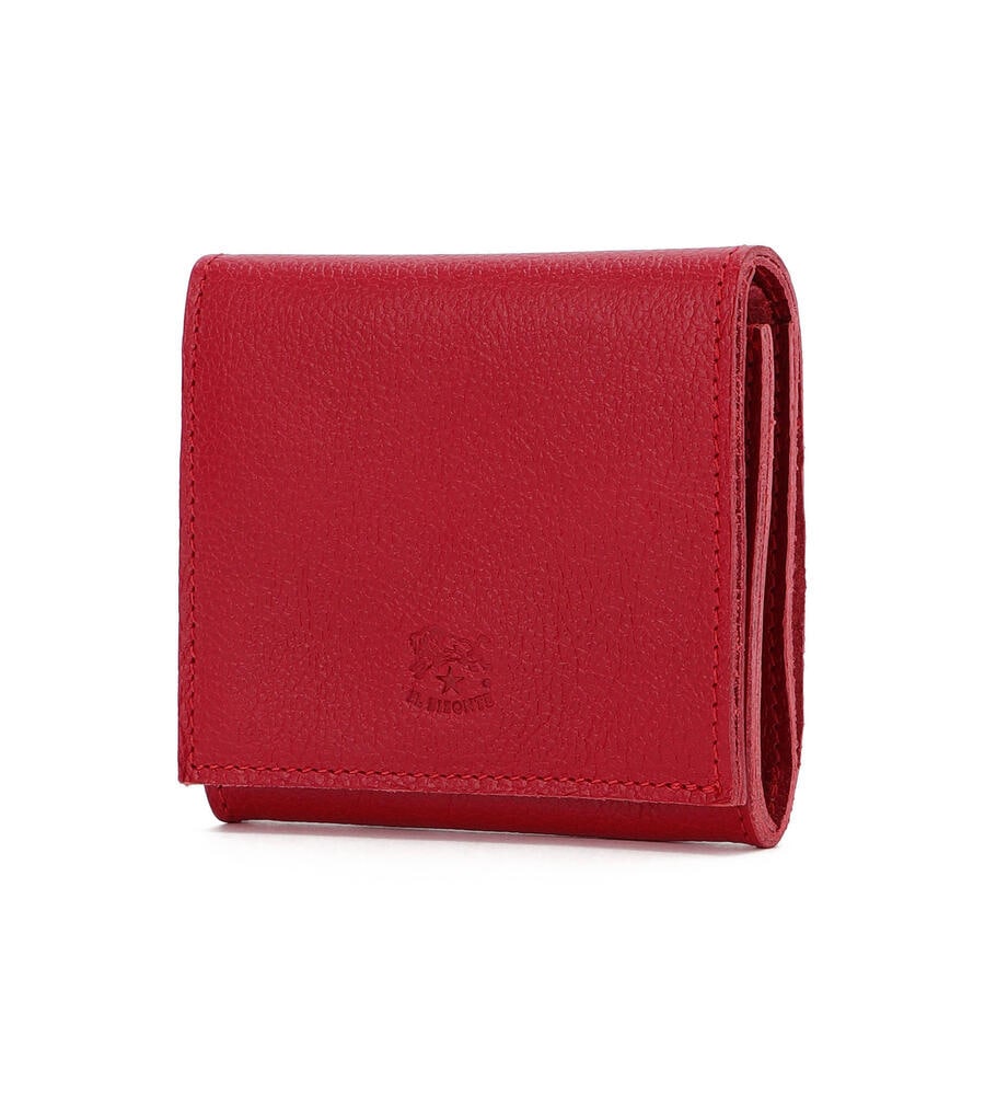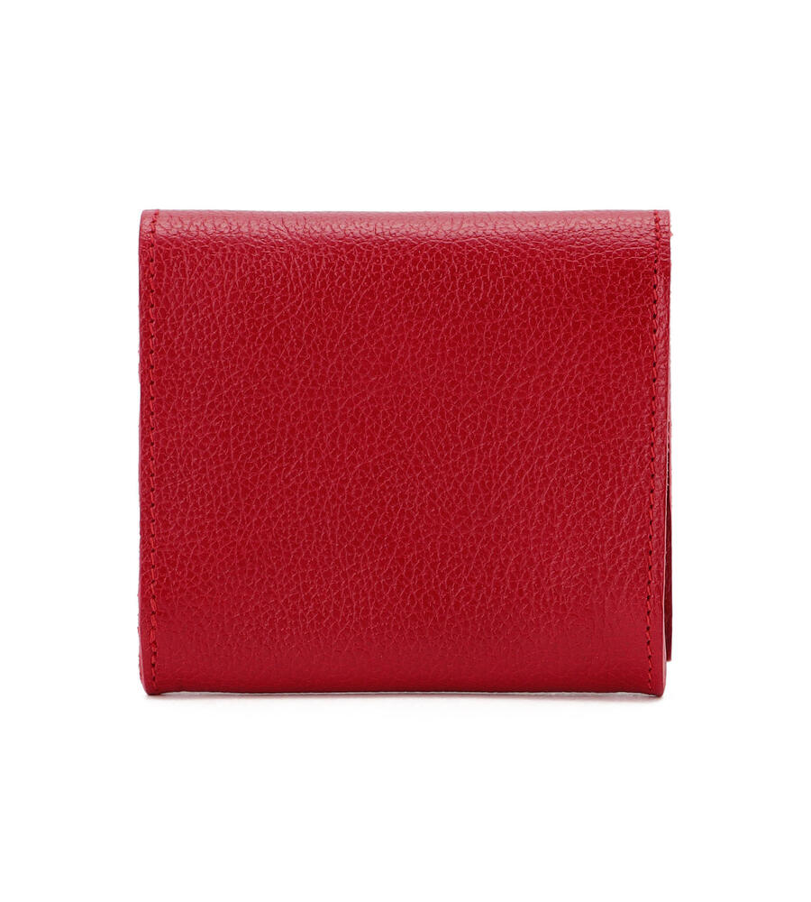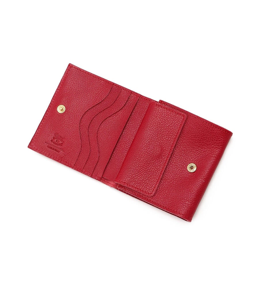 表情のある美しいレザーで仕立てた2つ折りのミニ折財布。ブランドロゴを表と中面にさりげなく型押しした、シンプルかつスタイリッシュなデザインが魅力。コンパクトながら、中は札入れ、小銭入れと、カードホルダーの充分な機能を兼ね備えたミニマルなアイテム。軽やかなお出かけスタイルに最適なアイテムです。
