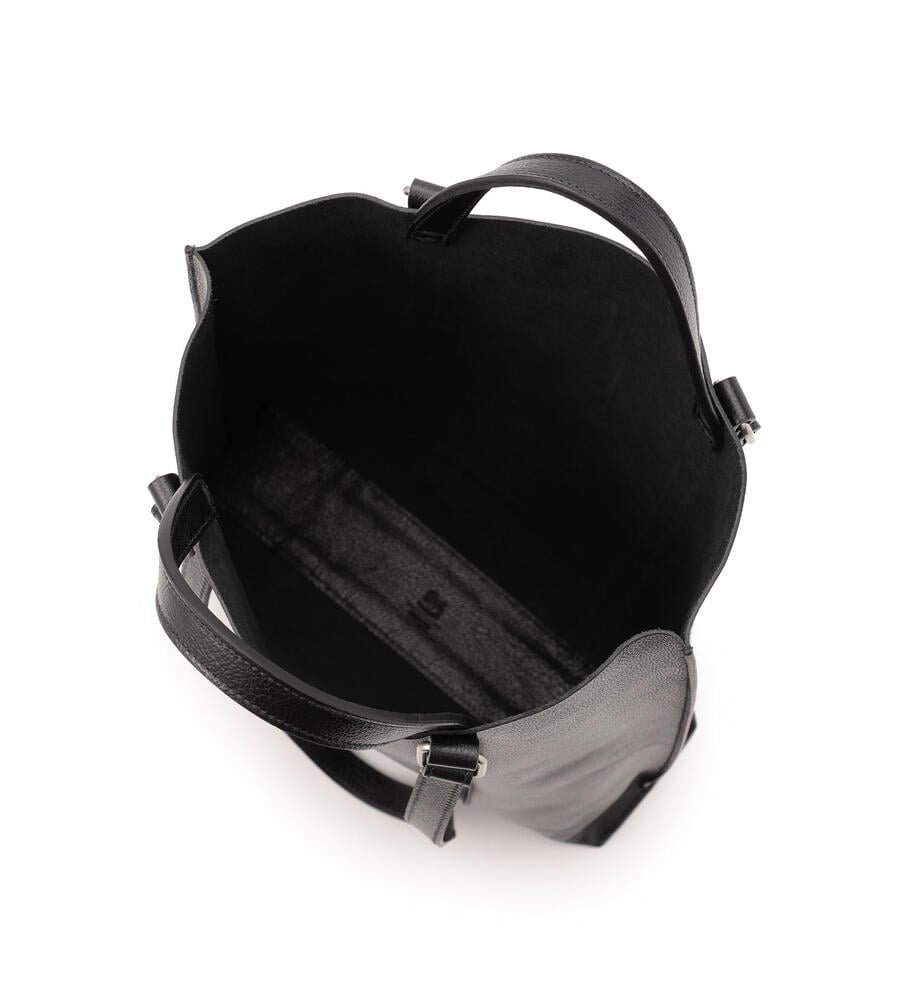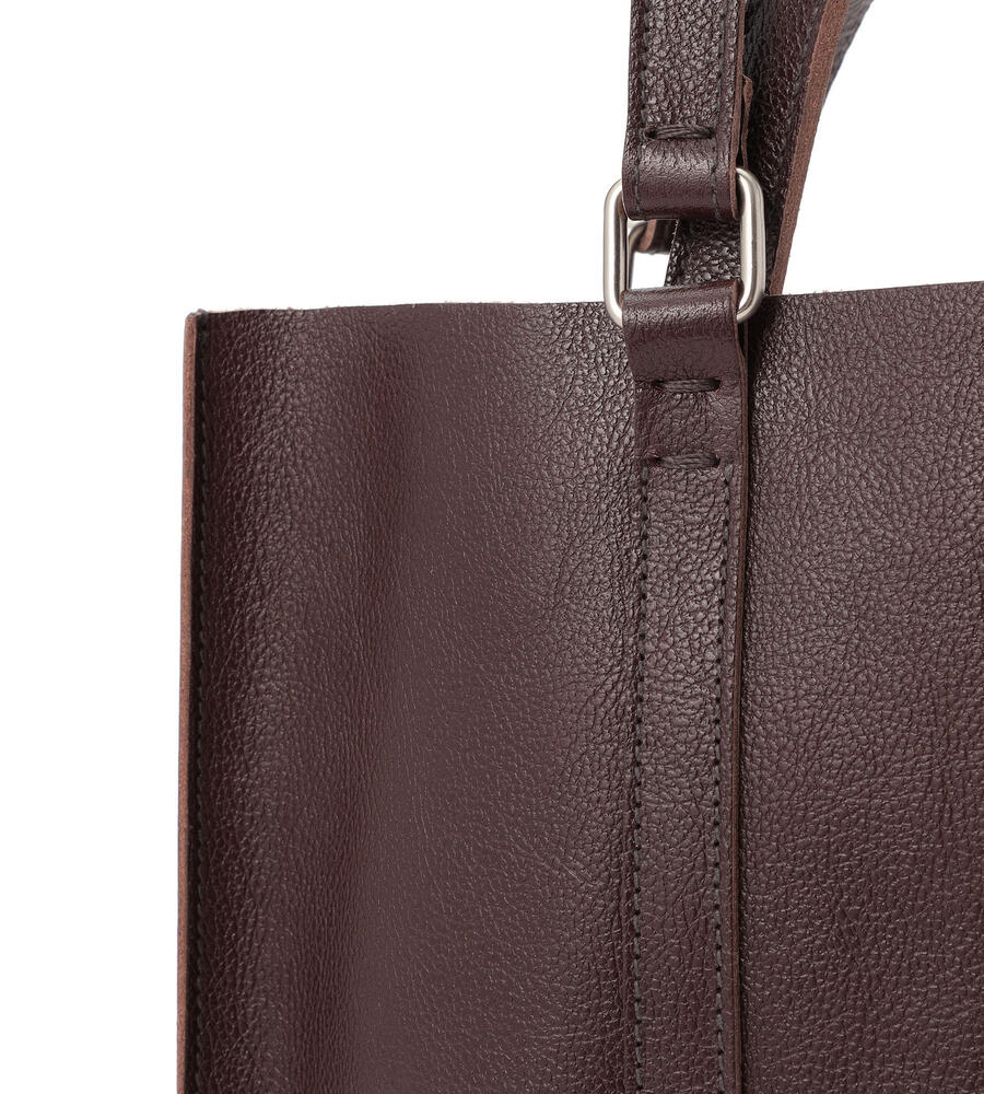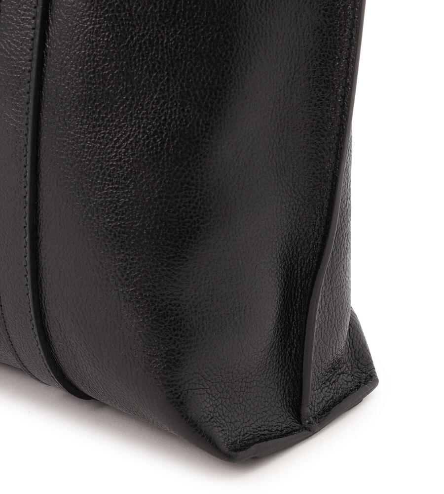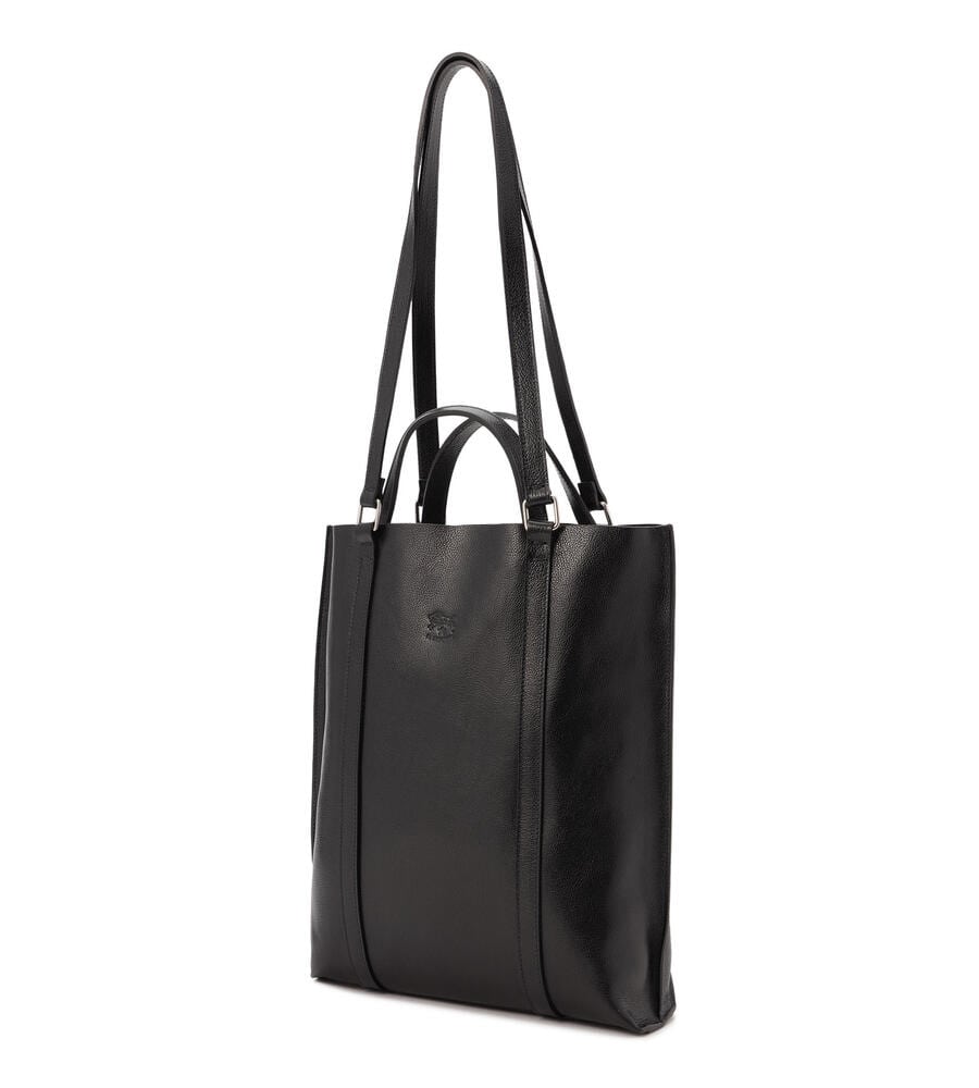 手持ちとショルダー、お好みで持ち方を選べるレザートートバッグ。前面にはブランドロゴの型押しをあしらい、背面には小物収納に便利なアウトポケットを配置。シンプルなデザインはスタイリングしやすく、シーンを選ばずに活躍します。