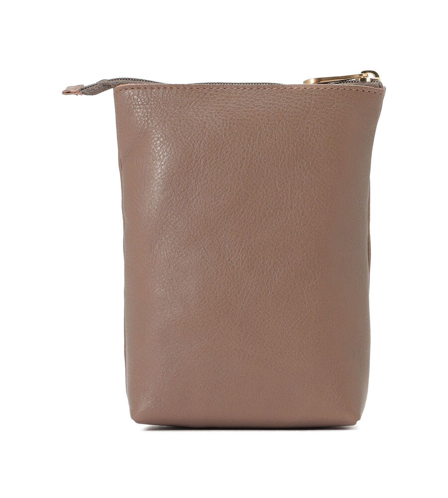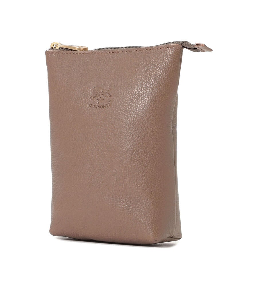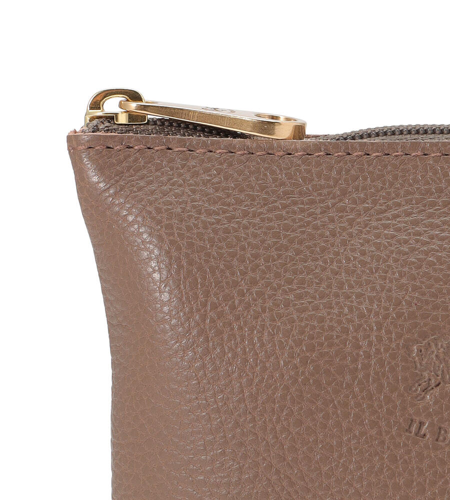 使い込むほどに味わいが増す、小物の収納や持ち運びに便利な縦長フォルムのレザーポーチ。フロントにはブランドロゴの型押しをあしらいワンポイントに。間口はファスナー仕様で物の出し入れもスムーズに行えます。