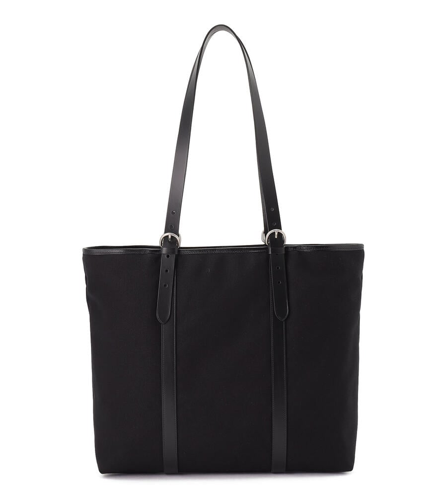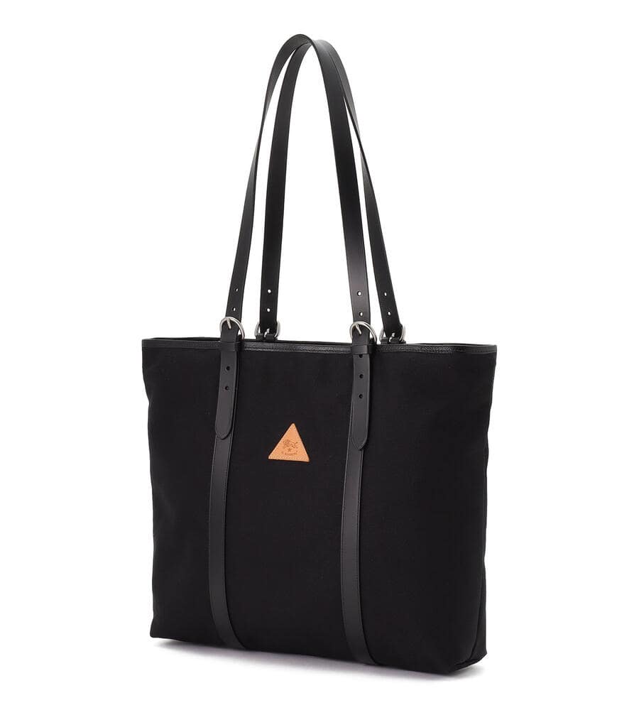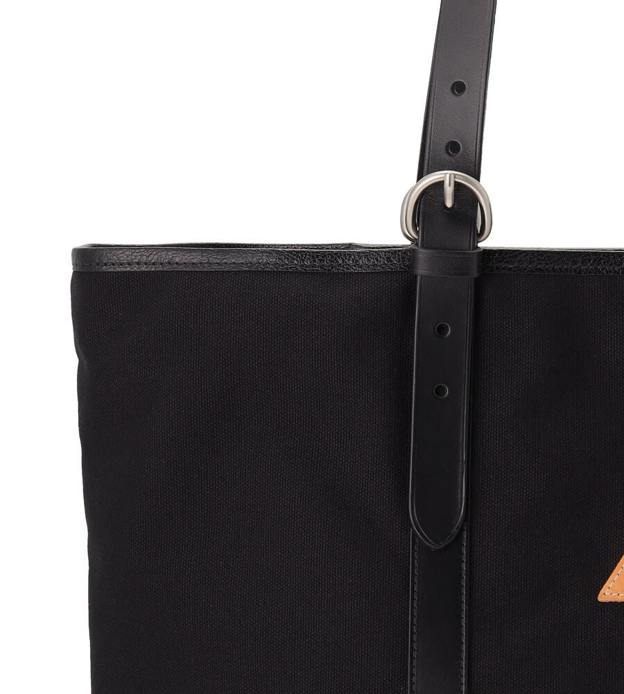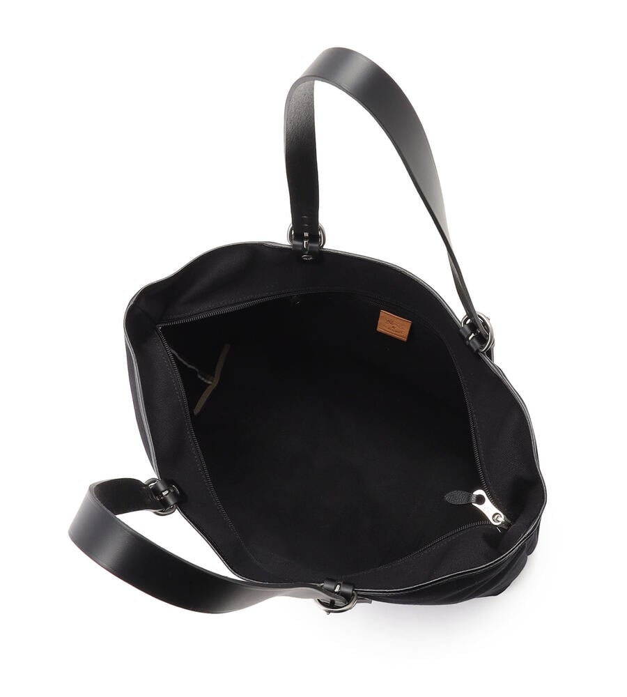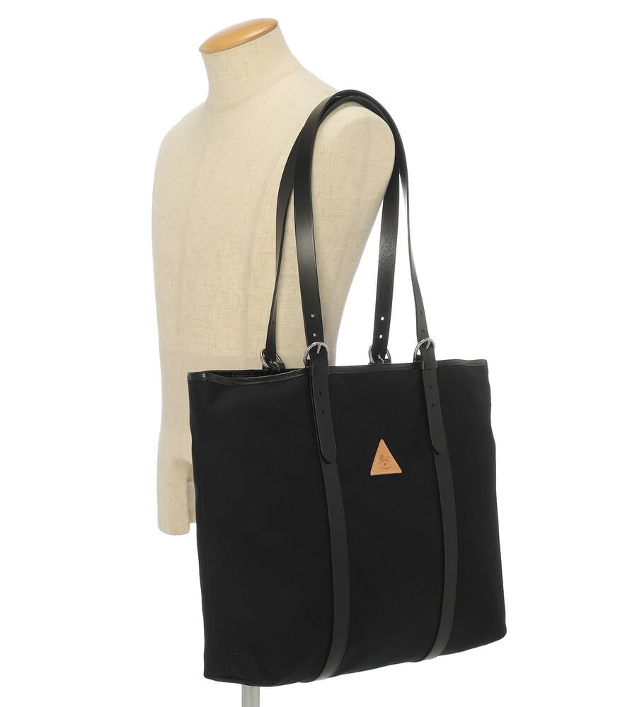 程よい厚みのコットン地を使用したトートバッグ。部分的に取り入れた牛革が上質感を引き上げます。バックルのメタリック感も印象的です。フロントには三角形のタグをセット。小旅行などにもおすすめの大きめのサイズです。