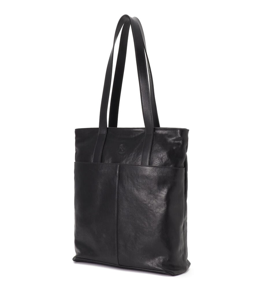 ブランドの特徴である質の高いやわらかなレザーで仕立てたトートバッグ。型押しロゴがスタイリッシュなデザインポイント。便利なジップ開閉、フロントポケット付き。A4サイズが入る使いやすいサイズ感で、デイリーからビジネスシーンまで幅広いシーンで活躍するアイテムです。