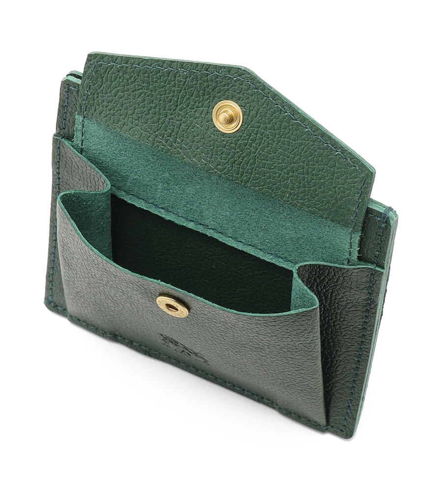 キャッシュレス派にもおすすめのミニ財布。フロントのコインポケットにはロゴマークの型押しを施しています。しっとりとした肌触りで手に馴染みが良いのも魅力。背面には複数のカードポケットを備えています。