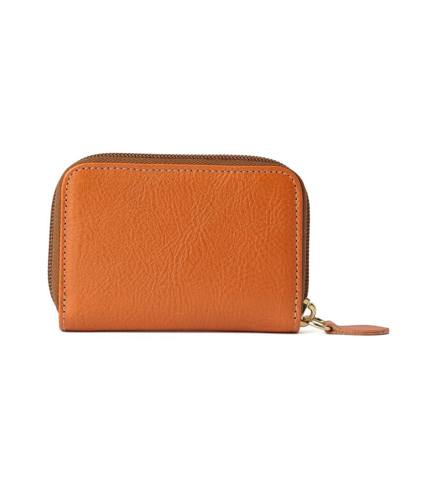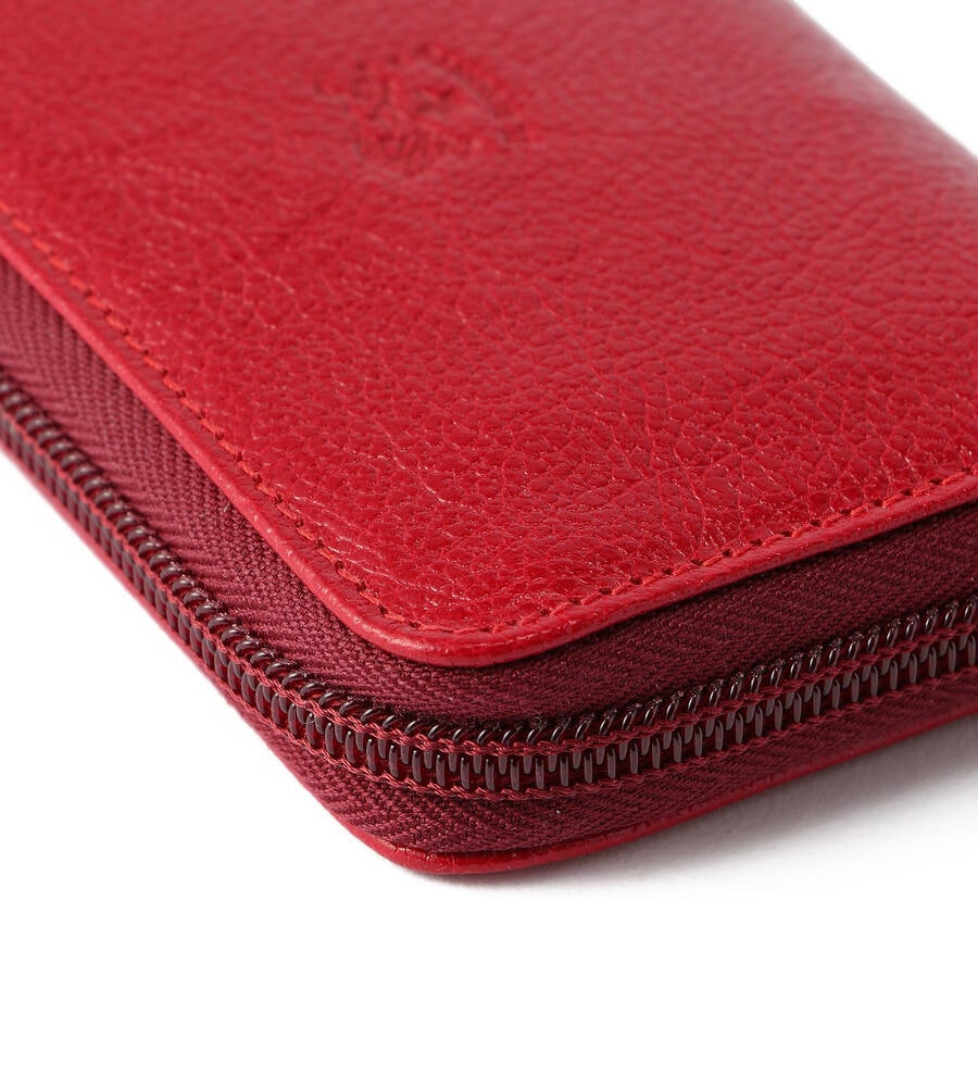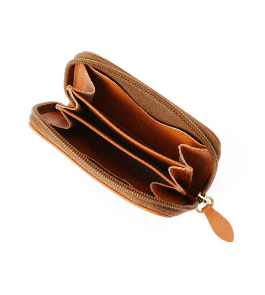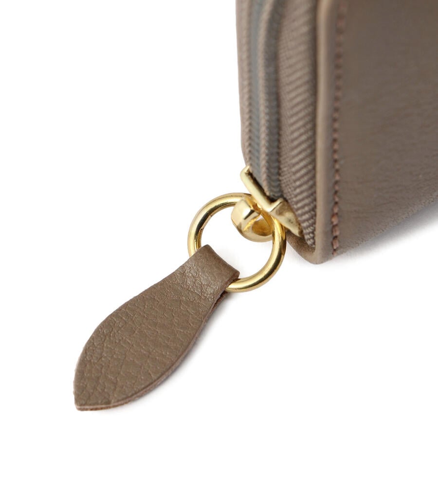 シボのある上質な皮革素材を用いたカードケース。ラウンドジップを採用し、使い勝手良く仕上げています。フロントの型押しロゴが格調を高めるアクセント。マチがしっかりあり、カード類がたっぷり収まります。