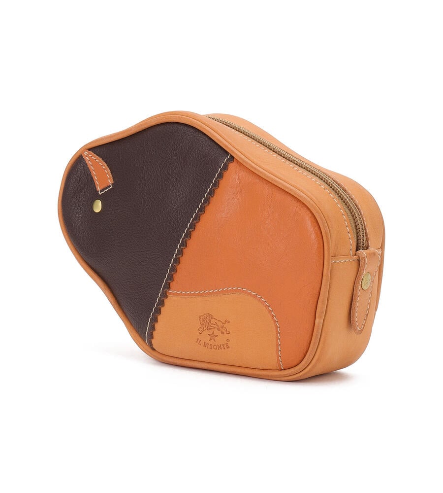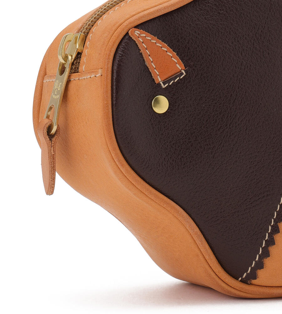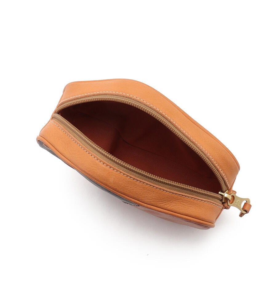 ユニークなフォルムで大人の遊び心を表現したポーチ。フロントの色をブロッキングさせることで、グラフィカルな印象に仕上げています。ラウンドジップが大きく開き、中身が取り出しやすい設計。散らばりがちな小物をすっきりとまとめられます。