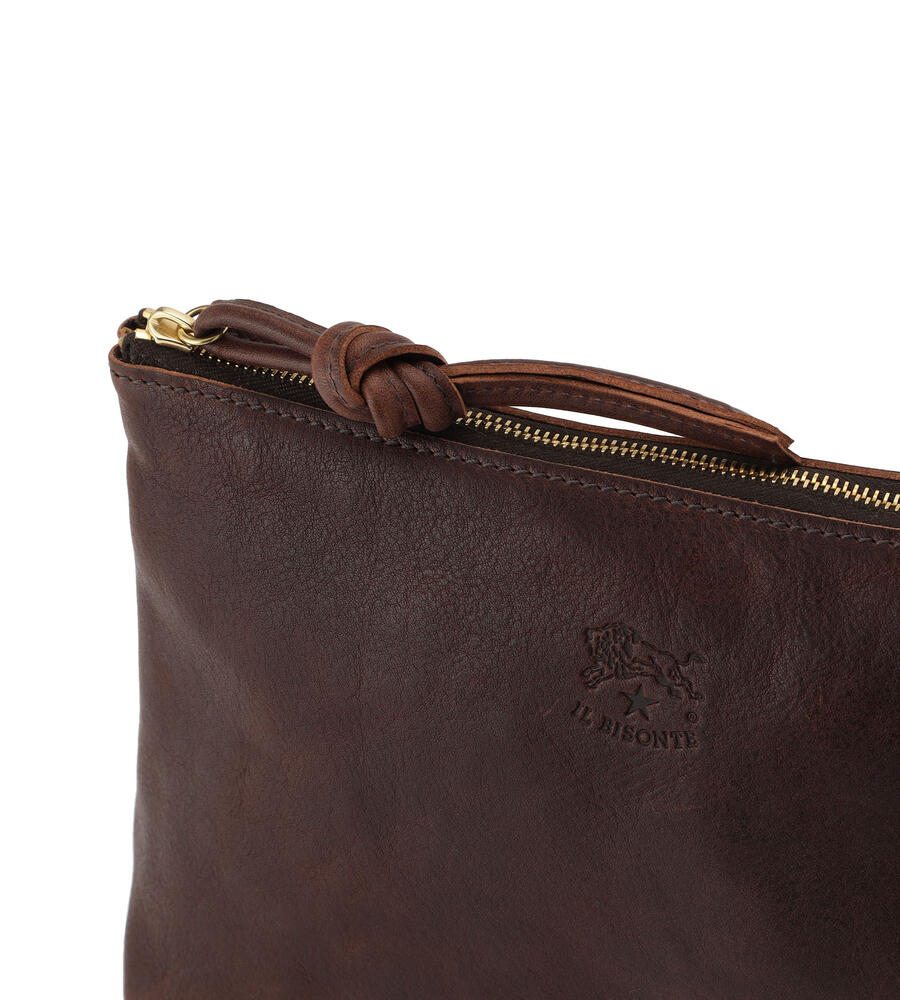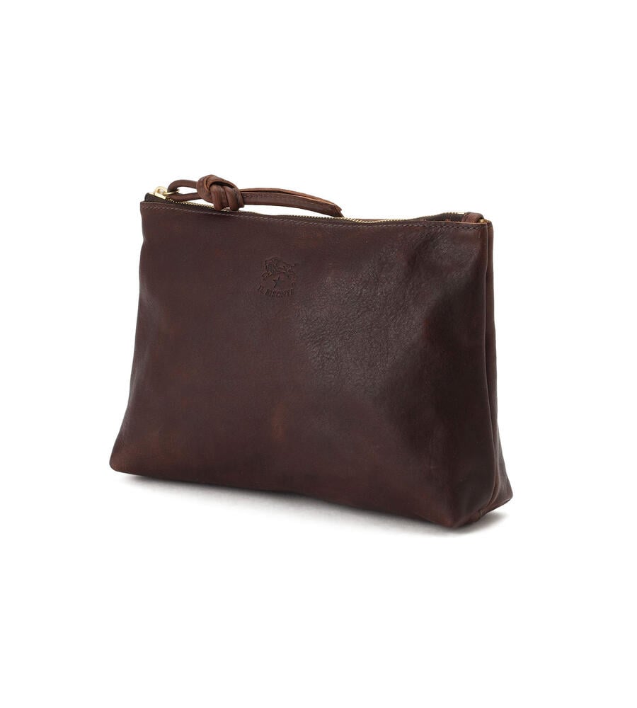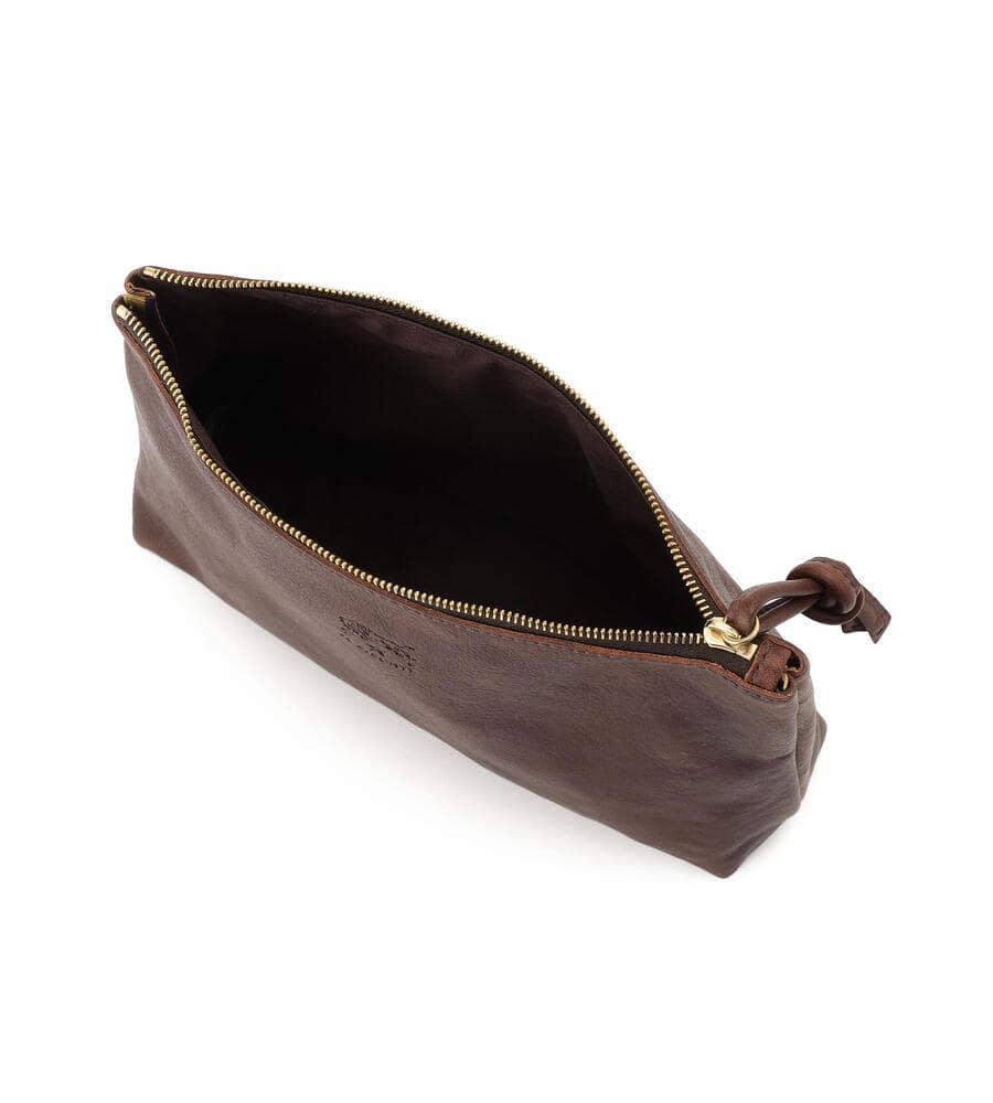ジップハンドルにロープ状のレザーを用いて、クラフト感のある佇まいに仕上げたポーチ。シンプルながらもマチがあるフォルムで、身の回りの小物をすっきりとまとめます。ジップが大きく開くため、中身が見やすく取り出しやすいのも特徴。