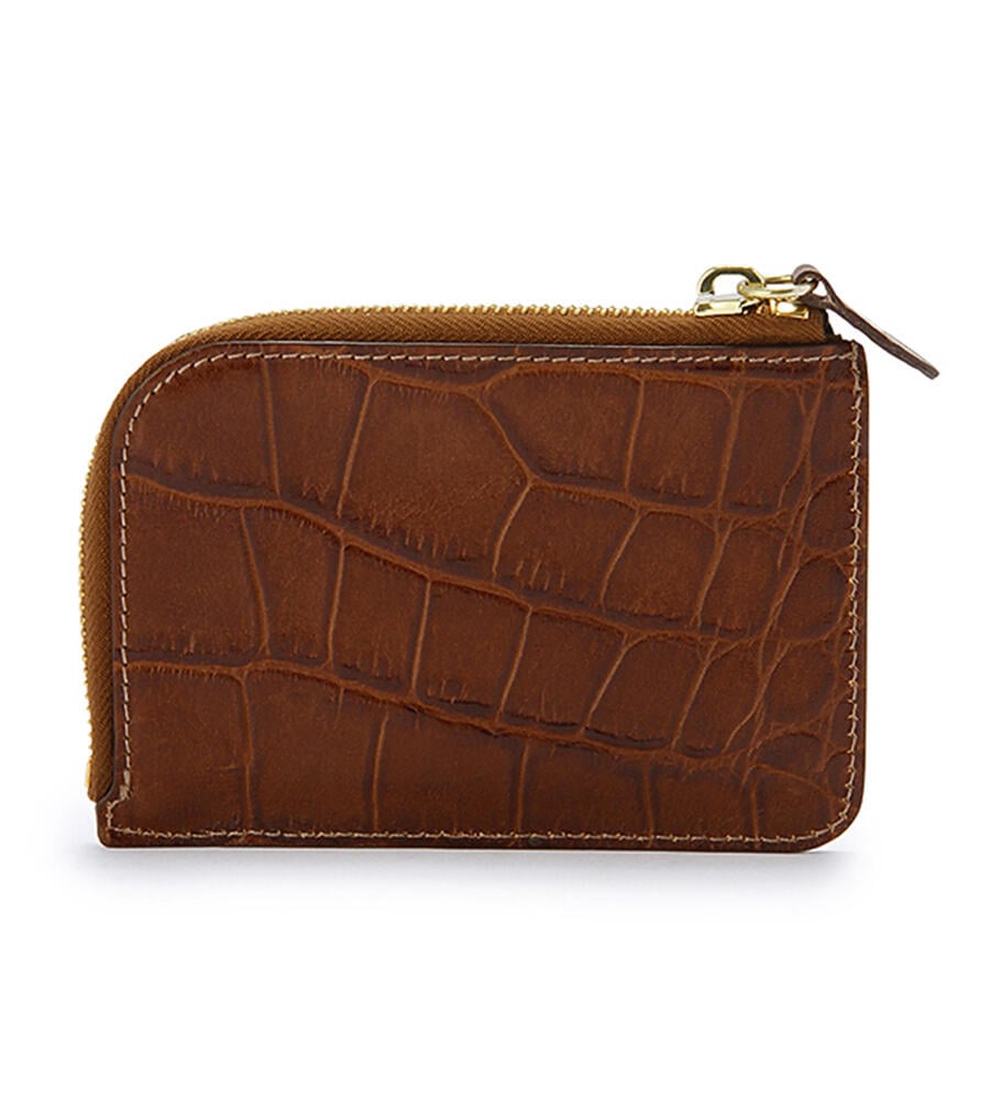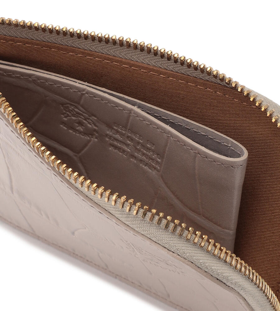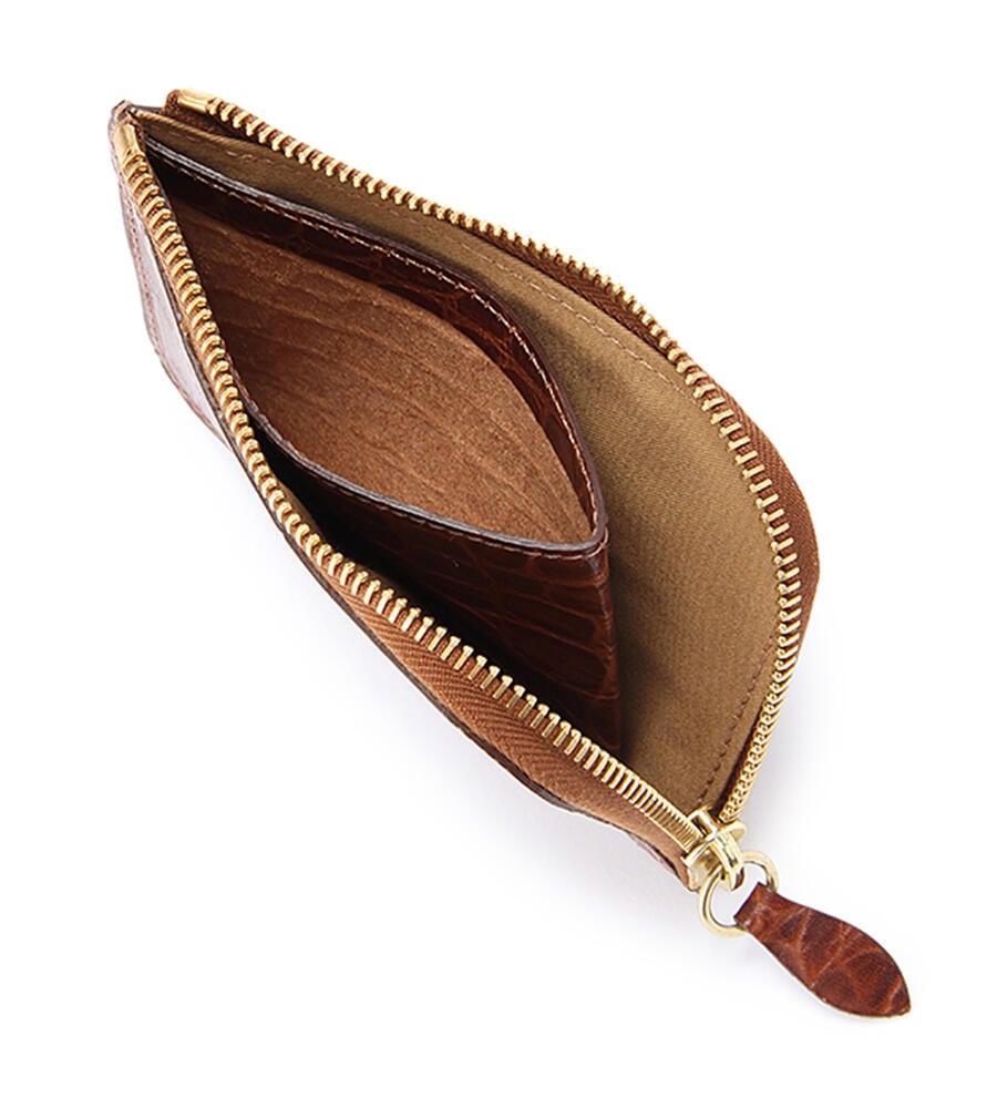 大人気のウォレットアイテムに、大人らしい魅力を宿すクロコの型押しタイプが到着。インナーには、仕切りがついているから、コインとカードをきちんと分けて収納できる。ゴールド金具で、より華やかに。