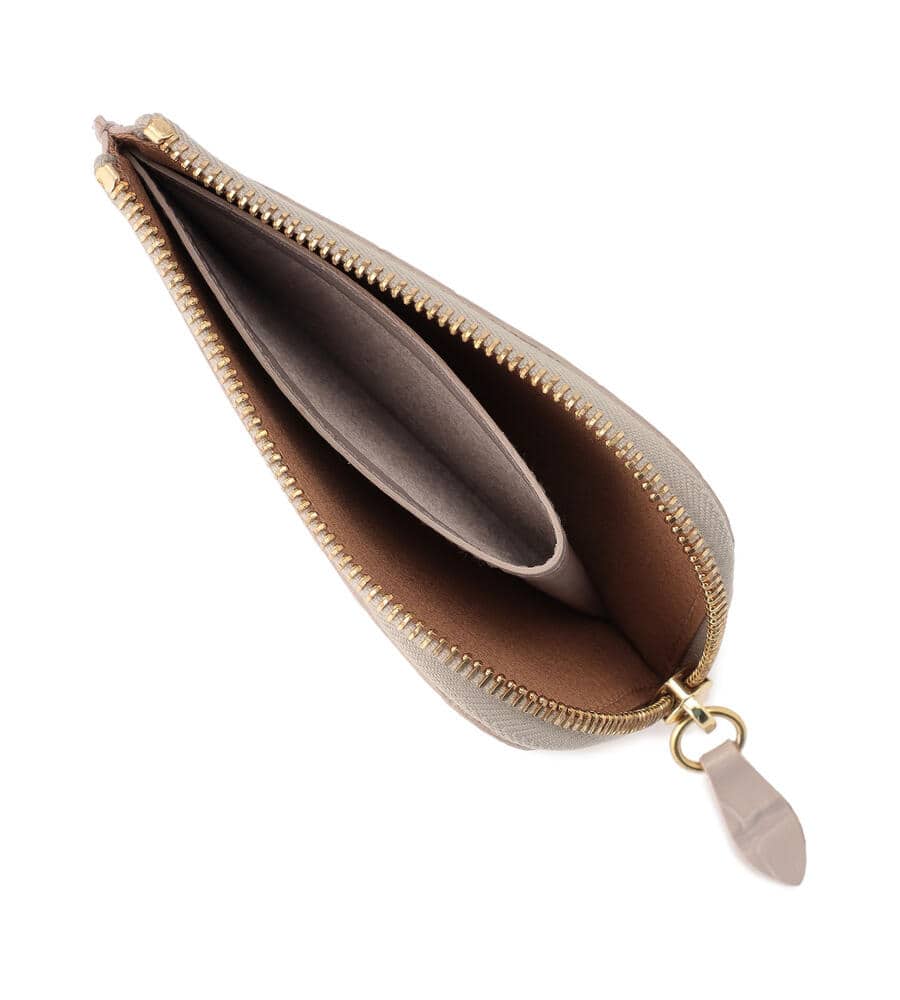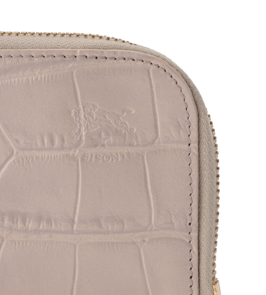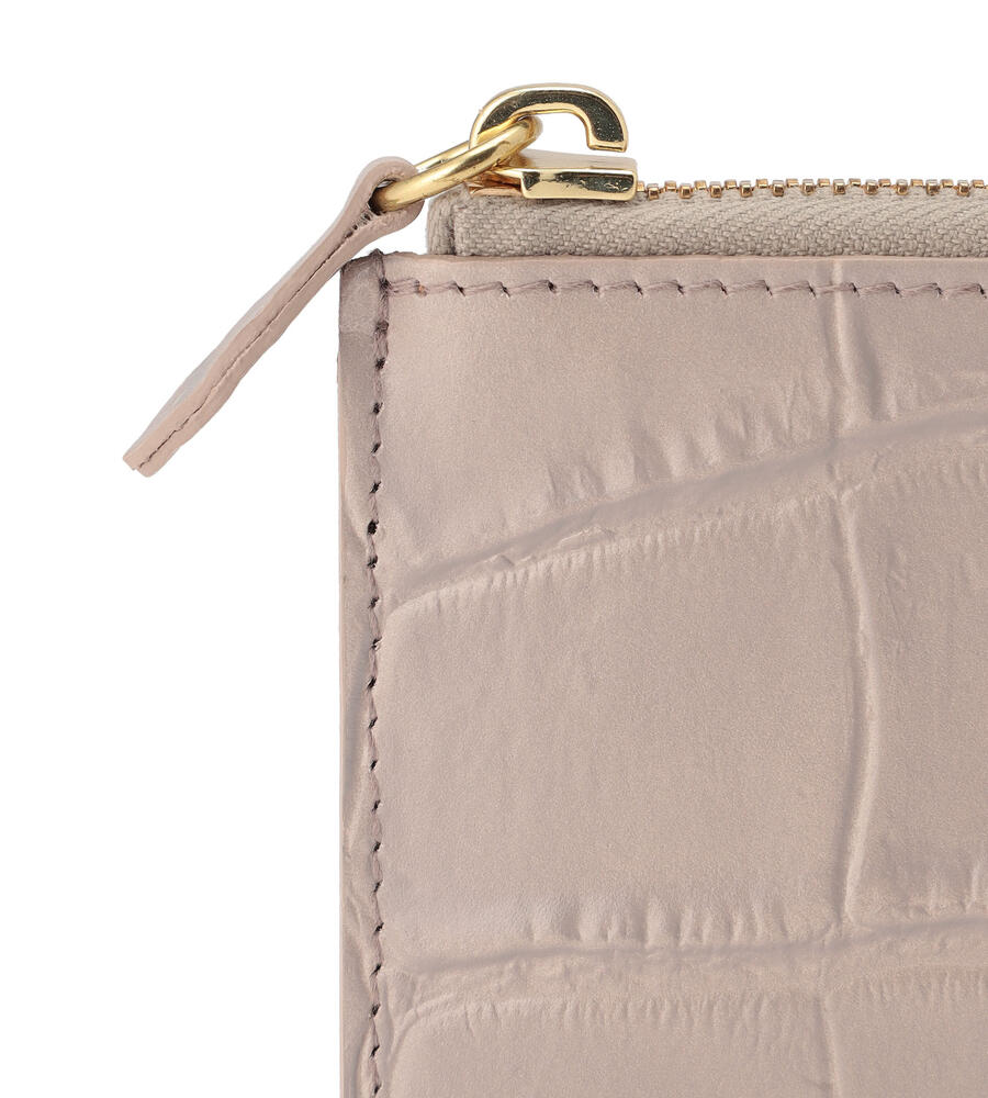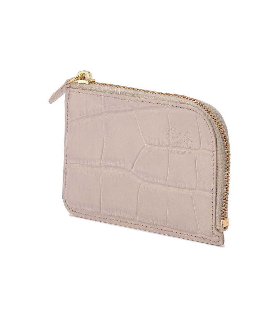 大人気のウォレットアイテムに、大人らしい魅力を宿すクロコの型押しタイプが到着。インナーには、仕切りがついているから、コインとカードをきちんと分けて収納できる。ゴールド金具で、より華やかに。