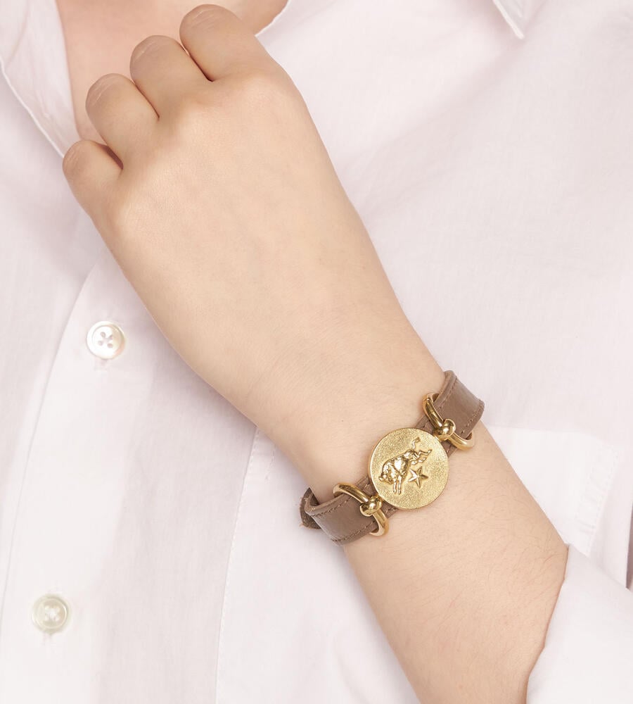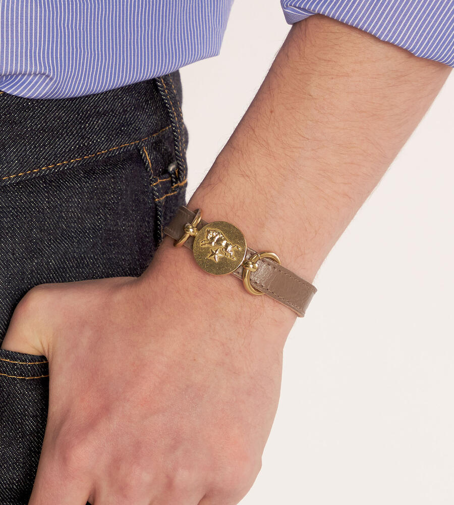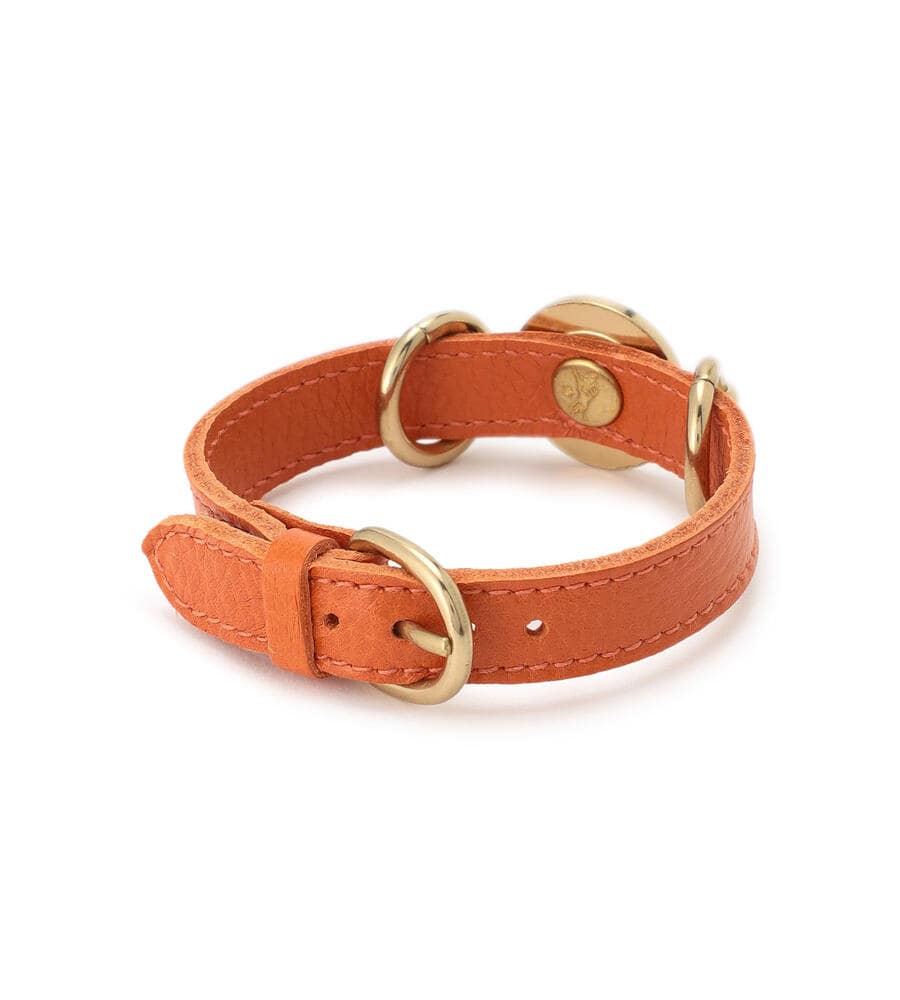 ブランドロゴをあしらったコンチョがアクセントになったレザーブレスレット。2008年に登場以来、常に人気のアイテムです。サイズはベルト穴で調節可能です。