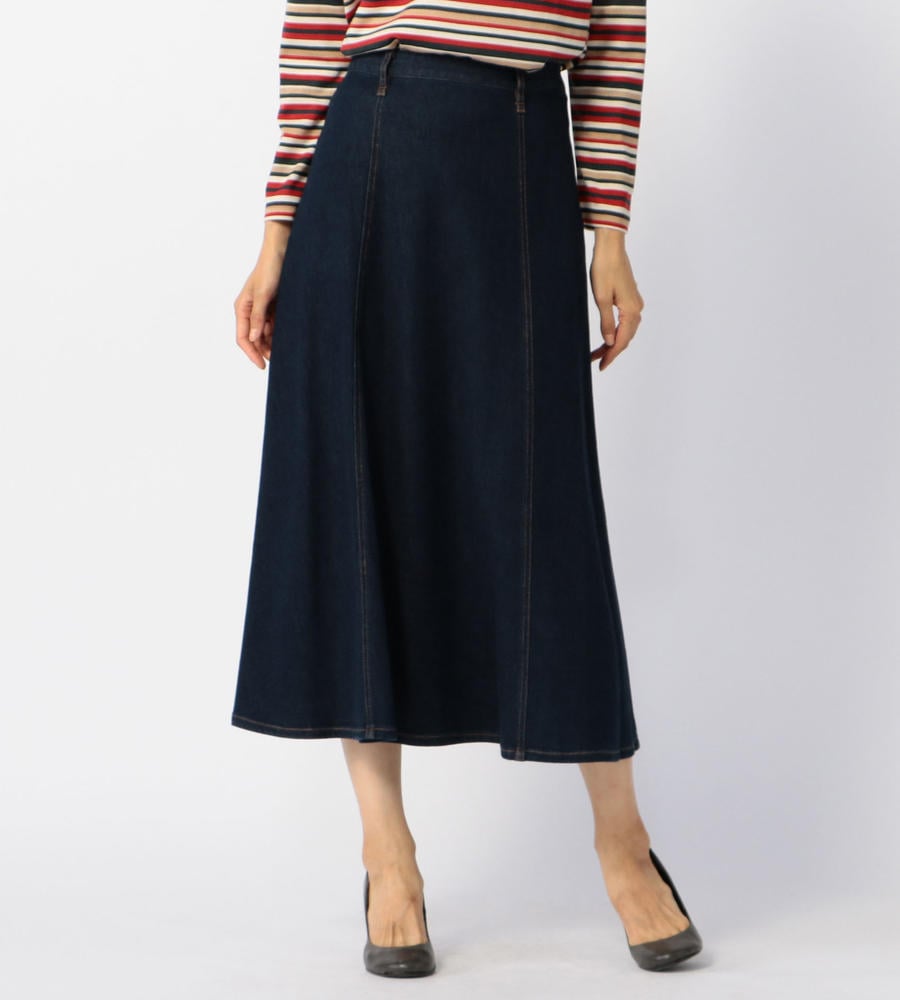 大人のカジュアルスタイルに欠かせない、きれいめな印象で着こなせるスカート。美しいフレアシルエットとロング丈が洗練されたムードを演出します。バックの2ポケットがアクセントに。トップスを選ばず幅広いスタイルに活躍するデイリーベーシックアイテムです。