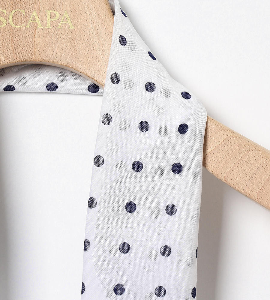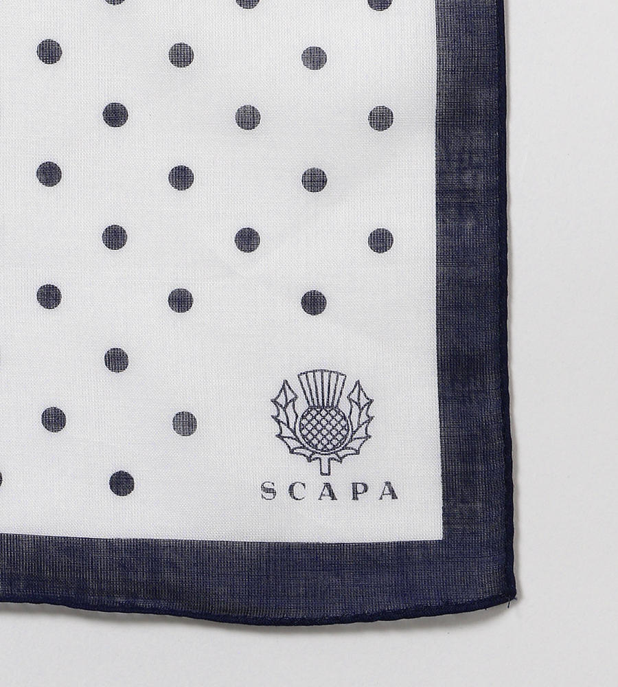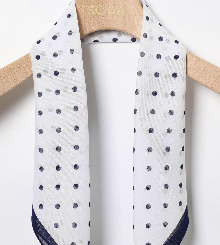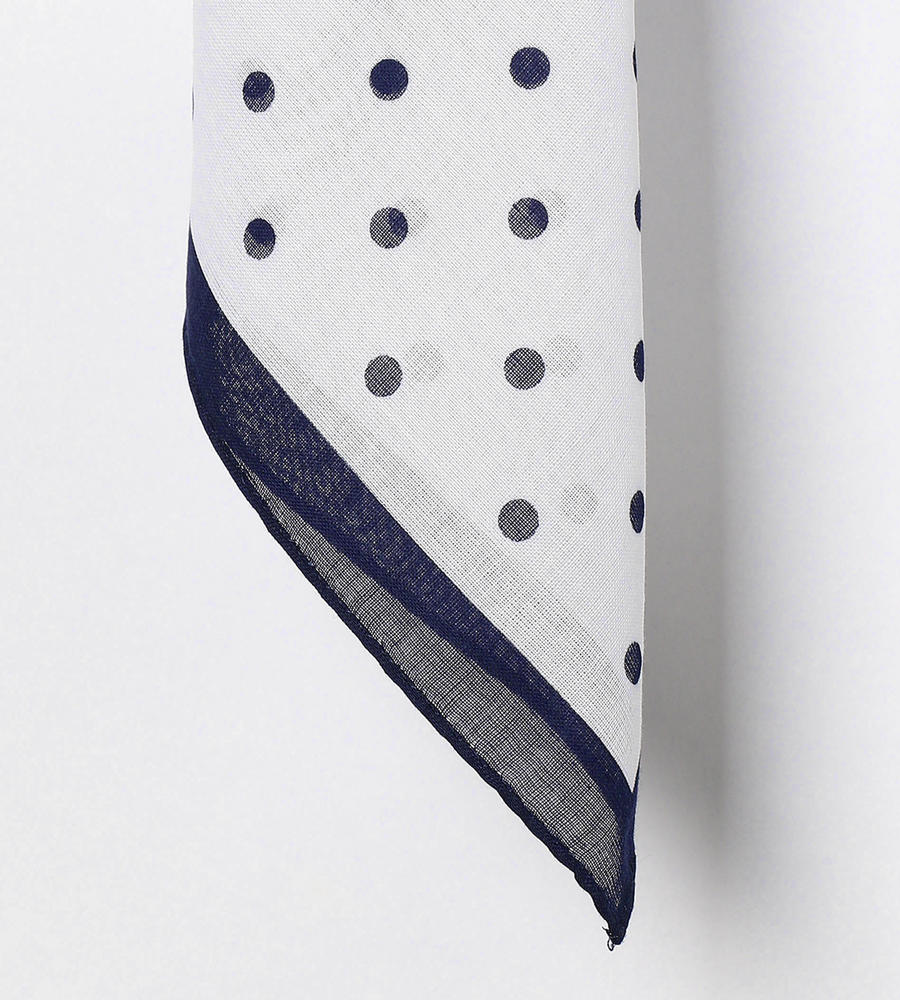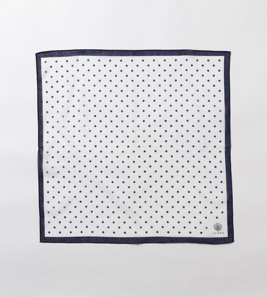 ドット模様のクラシカルなコットンハンカチが登場。四方は配色ラインを効かせて、すっきりとしたデザインに仕上げています。ナチュラルな風合いで肌触りが良く、使い心地も抜群。ハンカチとしての使用はもちろん、ジャケットのポケットに挿したり、バッグのハンドルに結んだり、ファッションアレンジにもお使いいただけます。