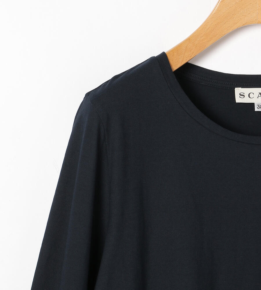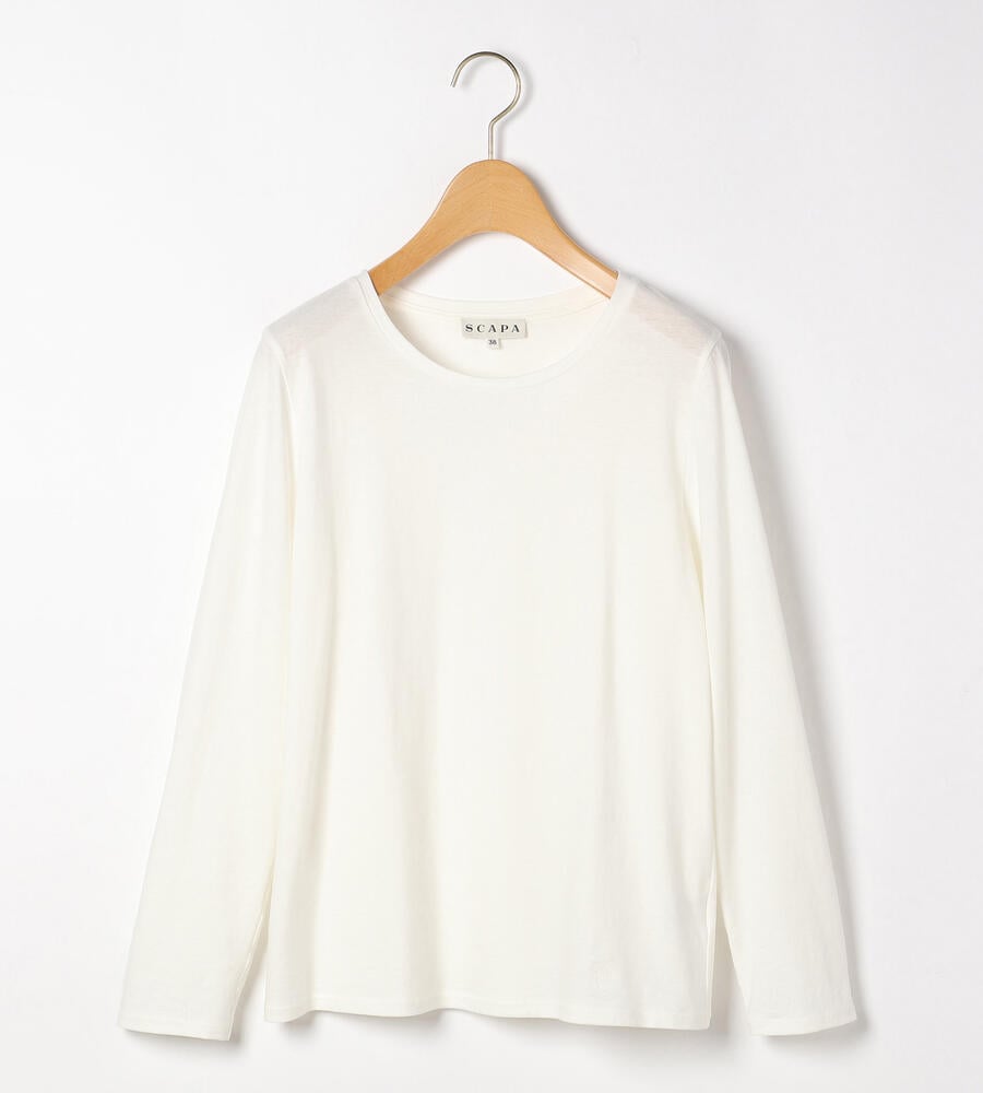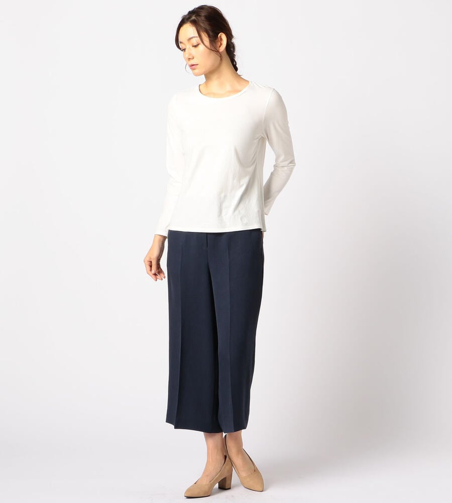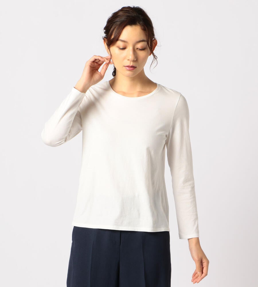 コーディネートに欠かせないシンプルベーシックなデザインのロングスリーブクルーネックカットソー。さらりとした風合いが着心地の良いコットン100%素材を使用。前裾にさりげなくブランドロゴ刺繍がほどこされています。