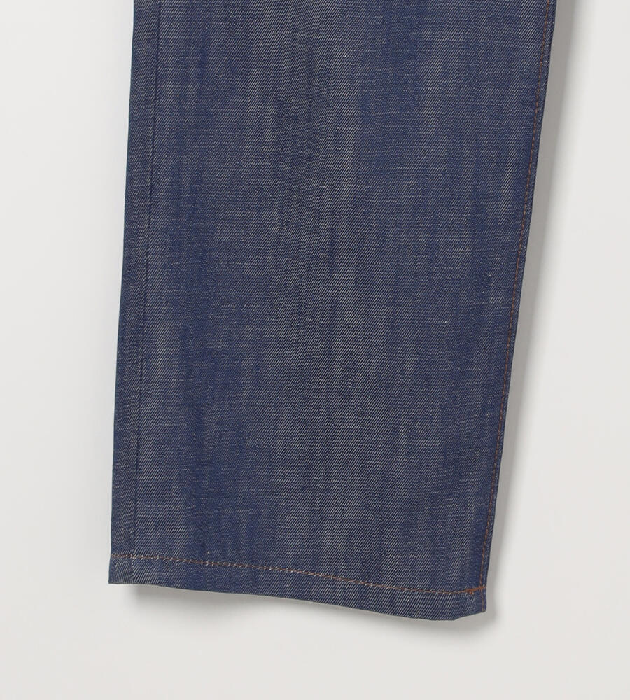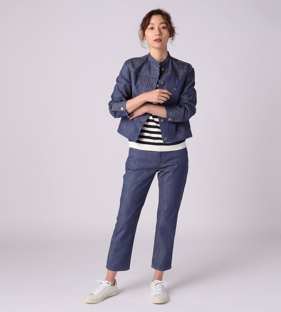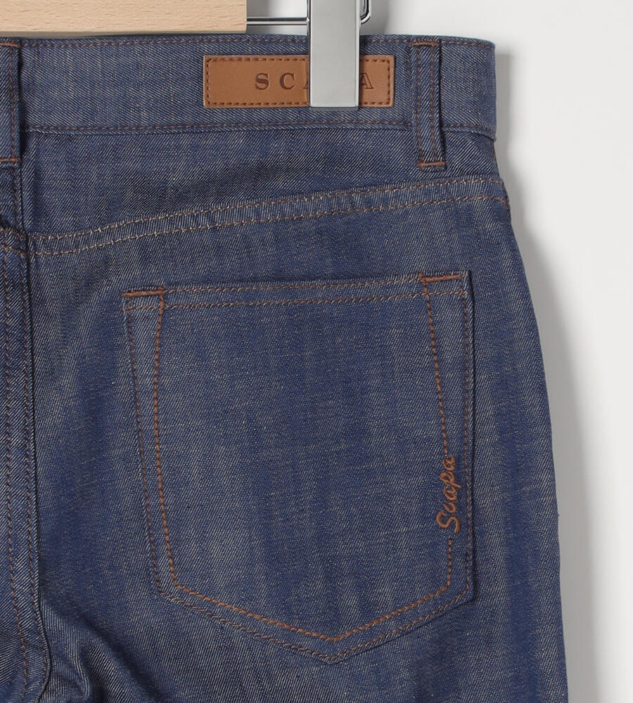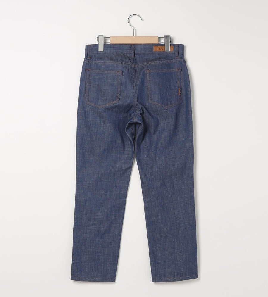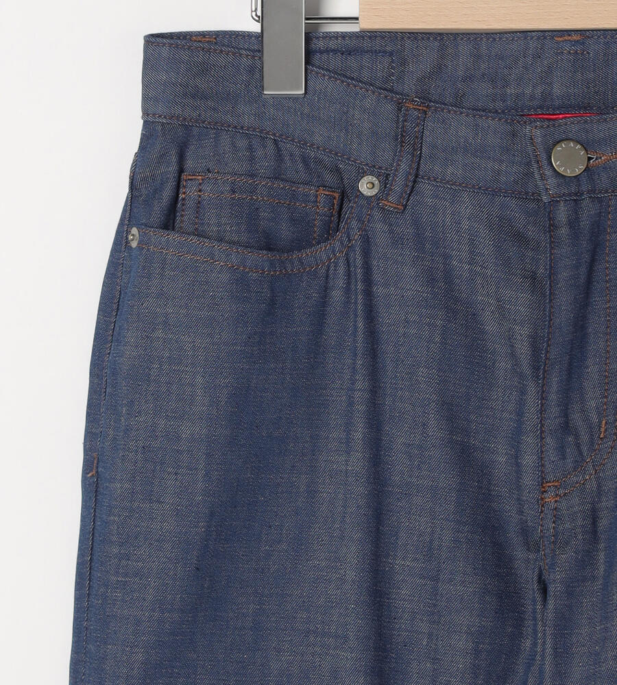 シンプルな5ポケット仕様のデニムパンツ。きれいな色味と微光沢感が品のよさを放ち、クリーンなカジュアルスタイルが楽しめる一枚です。今季らしい抜け感を演出するテーパードシルエットも魅力。レザーパッチやバックポケットのブランドロゴはさりげないアクセントに。同生地のジャケットとセットアップでも着用可能です。