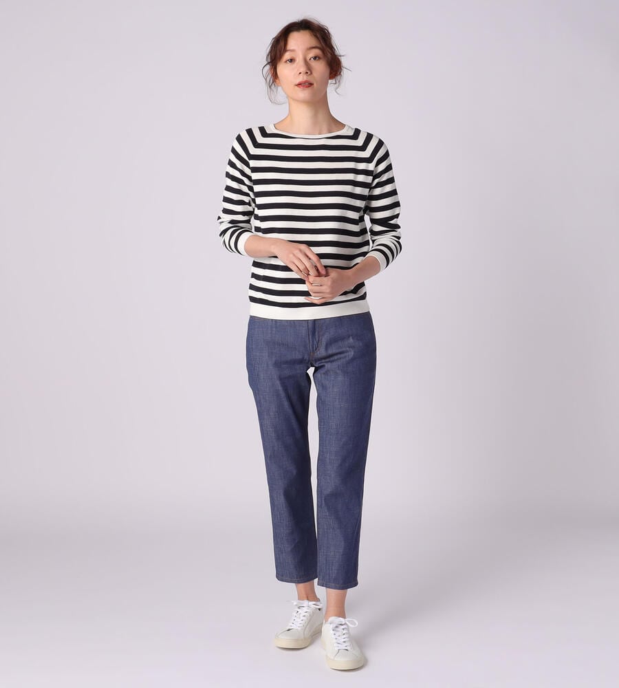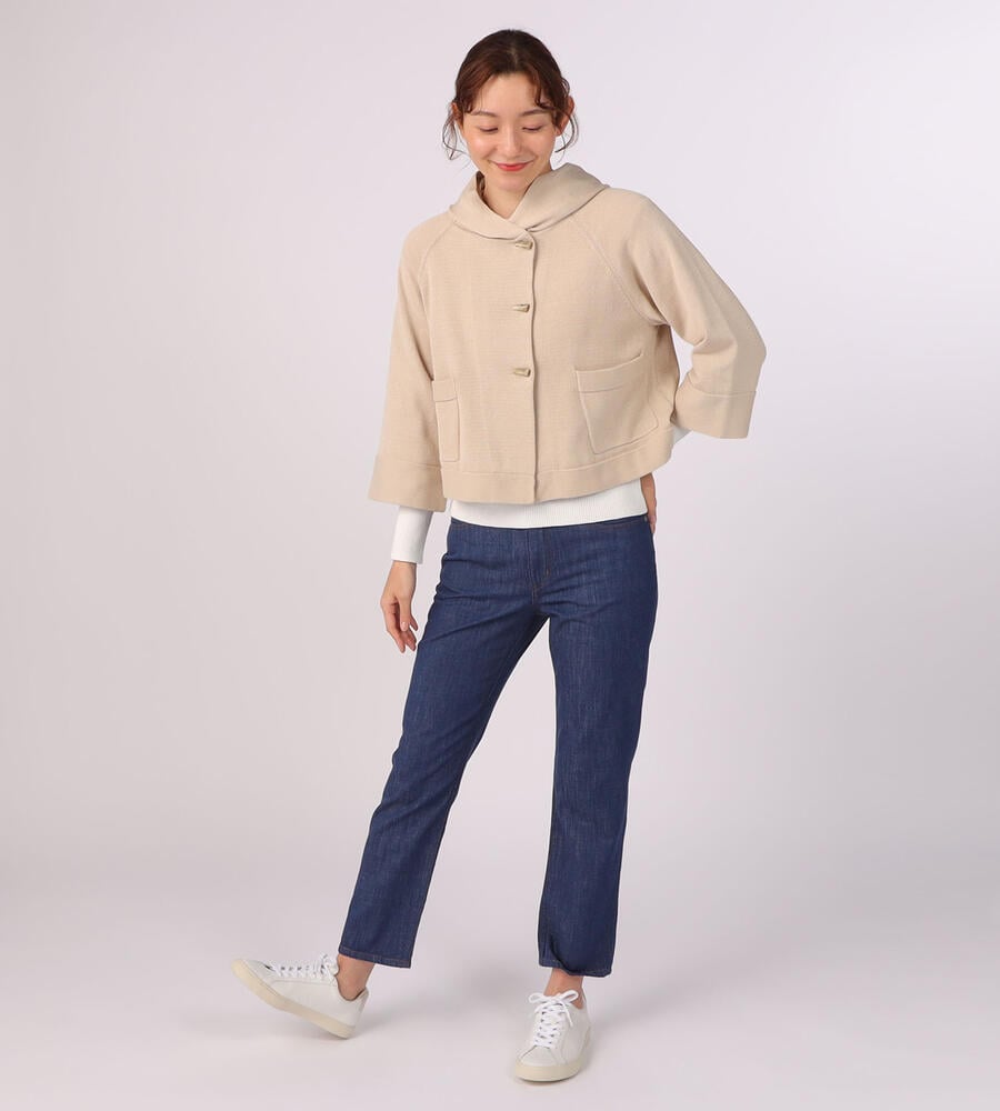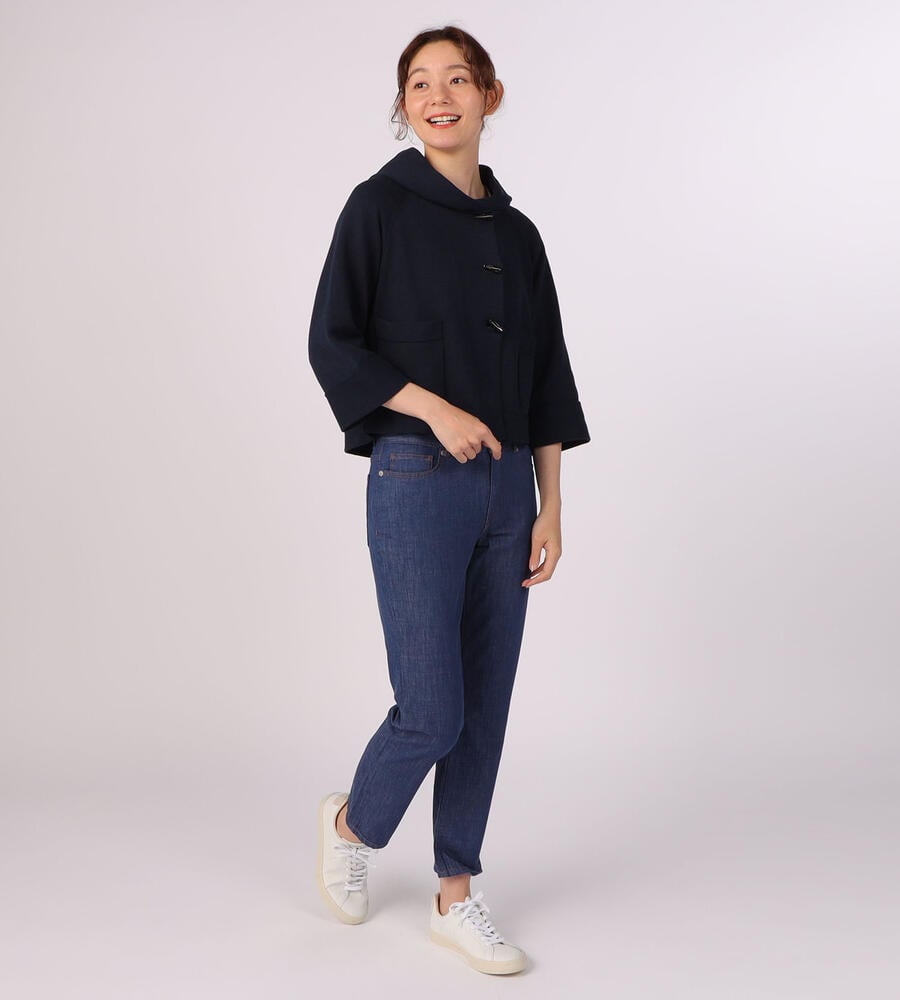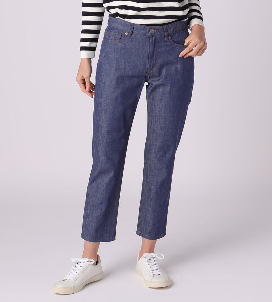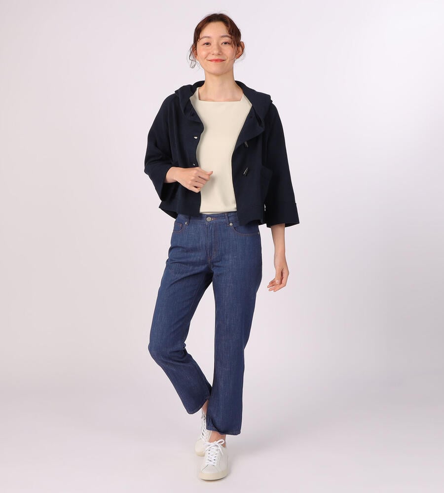 シンプルな5ポケット仕様のデニムパンツ。きれいな色味と微光沢感が品のよさを放ち、クリーンなカジュアルスタイルが楽しめる一枚です。今季らしい抜け感を演出するテーパードシルエットも魅力。レザーパッチやバックポケットのブランドロゴはさりげないアクセントに。同生地のジャケットとセットアップでも着用可能です。