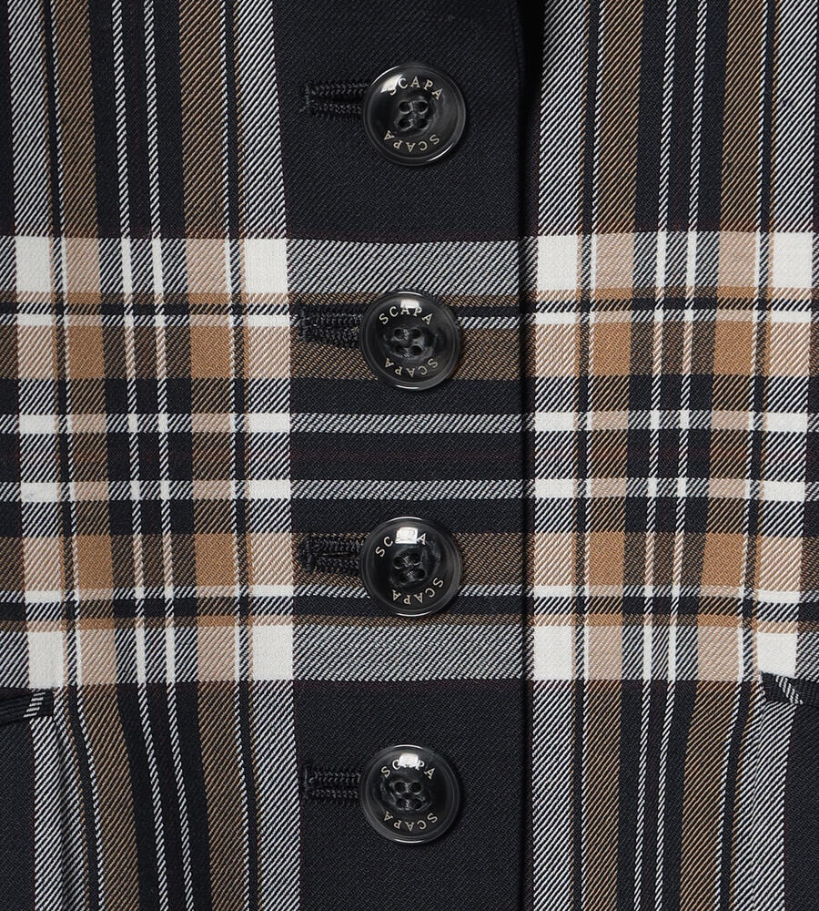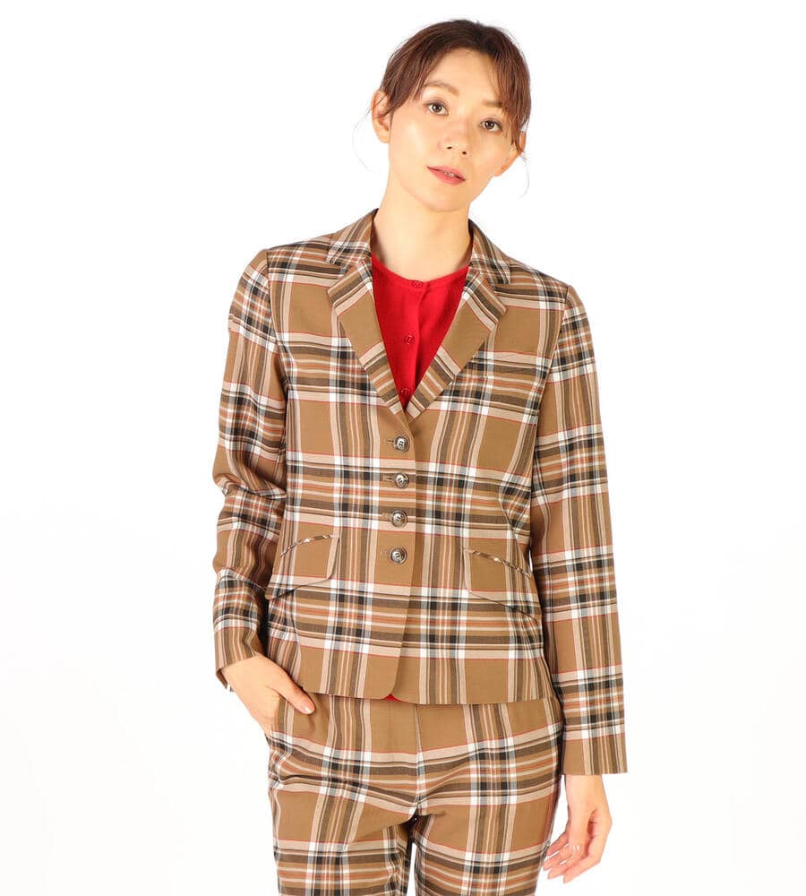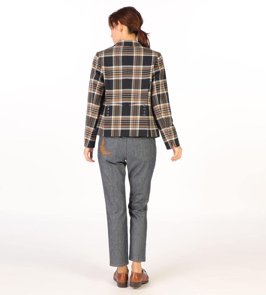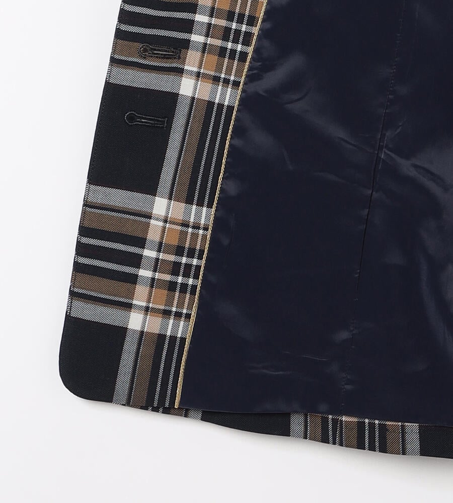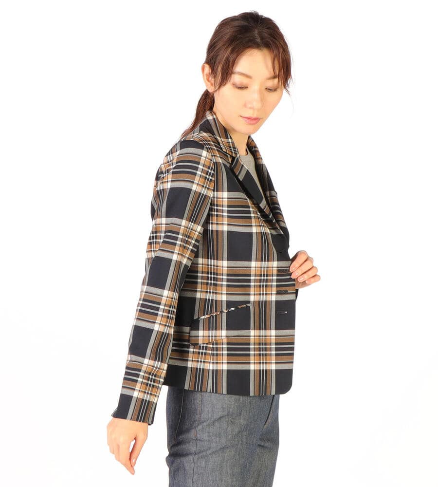 トラッドなタータン柄がスタイリングの主役になるジャケット。美しく計算されたシルエット、スリムなラペルがスタイリッシュな雰囲気に。左右にはフラップポケットを配置、バックにあしらったボタンディテールがポイント。シンプルなインナーと合わせてラフな着こなすのもおすすめです。