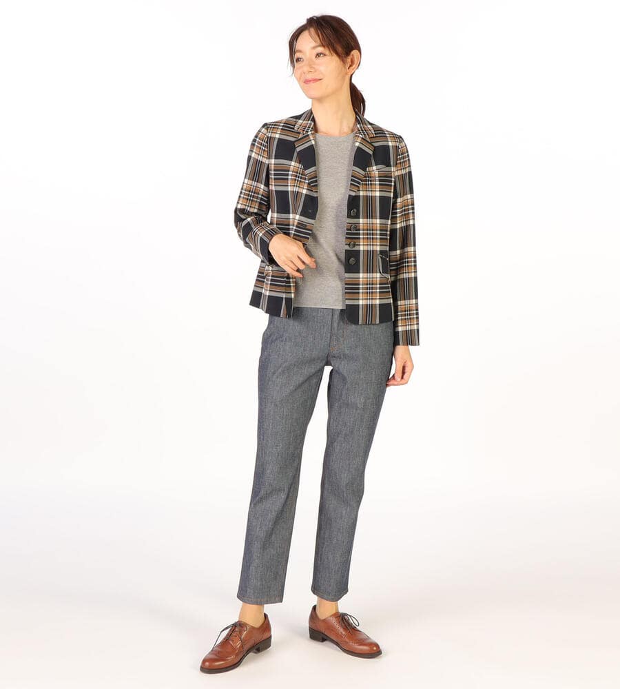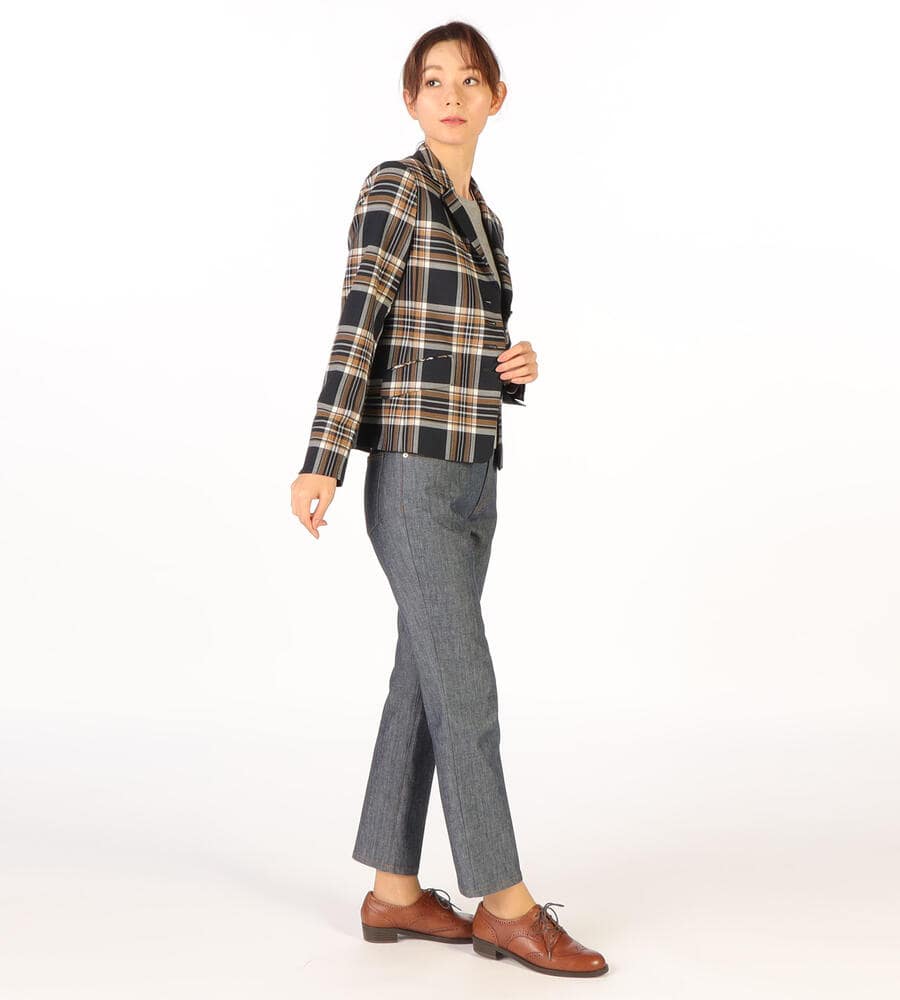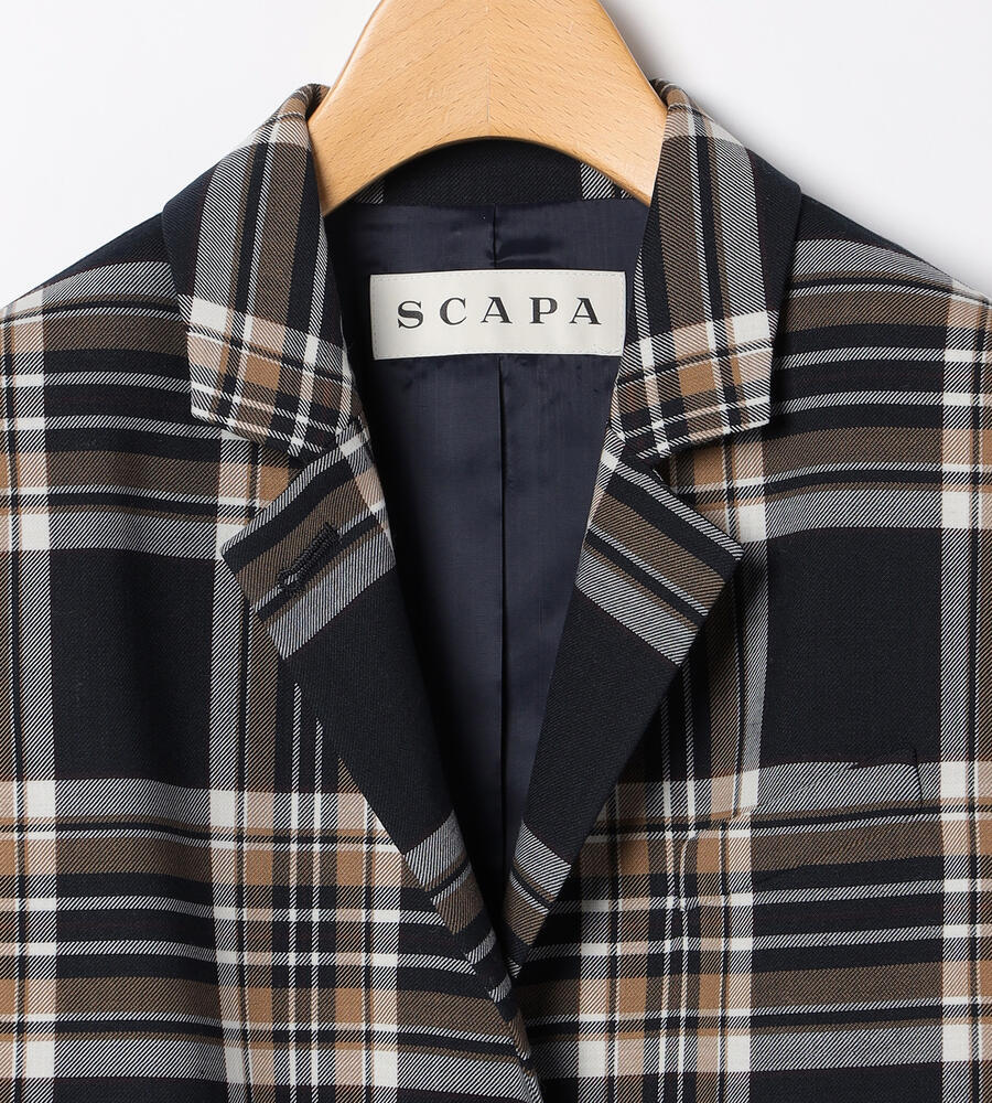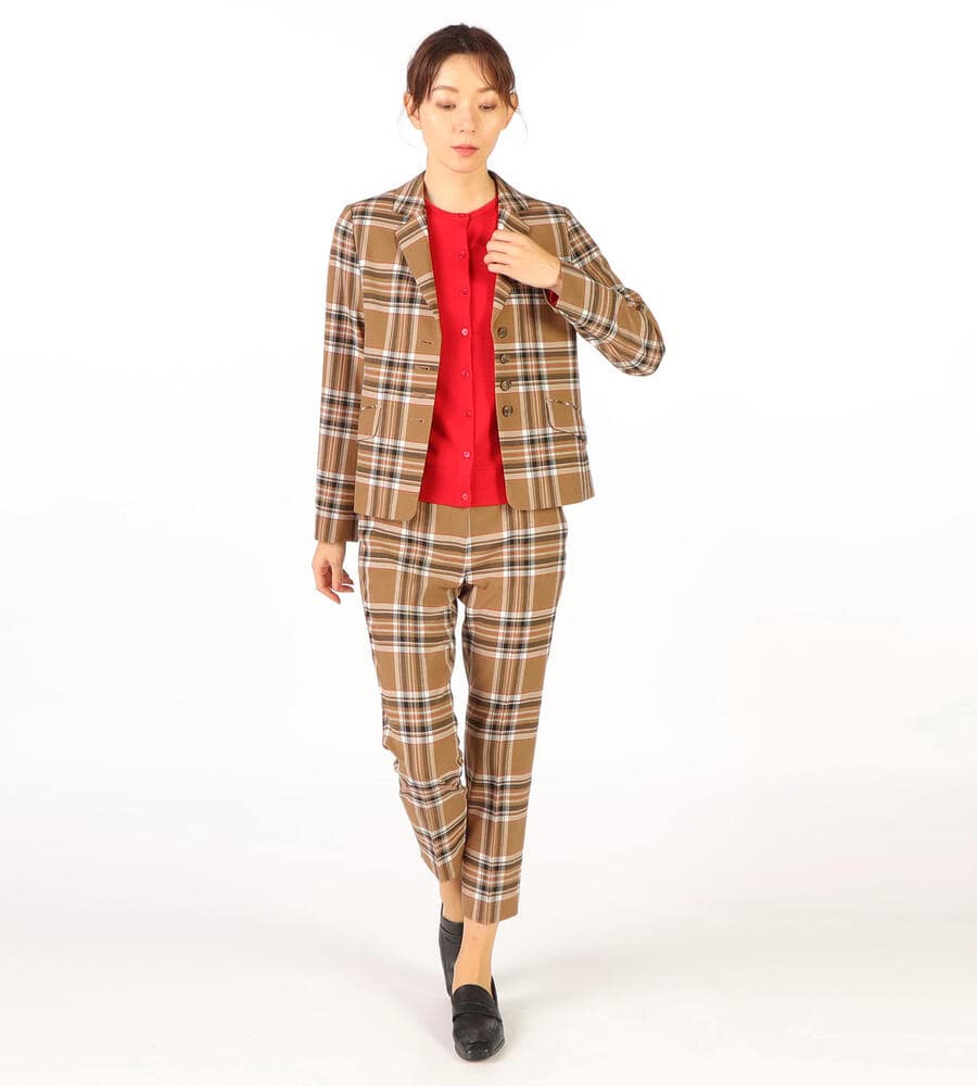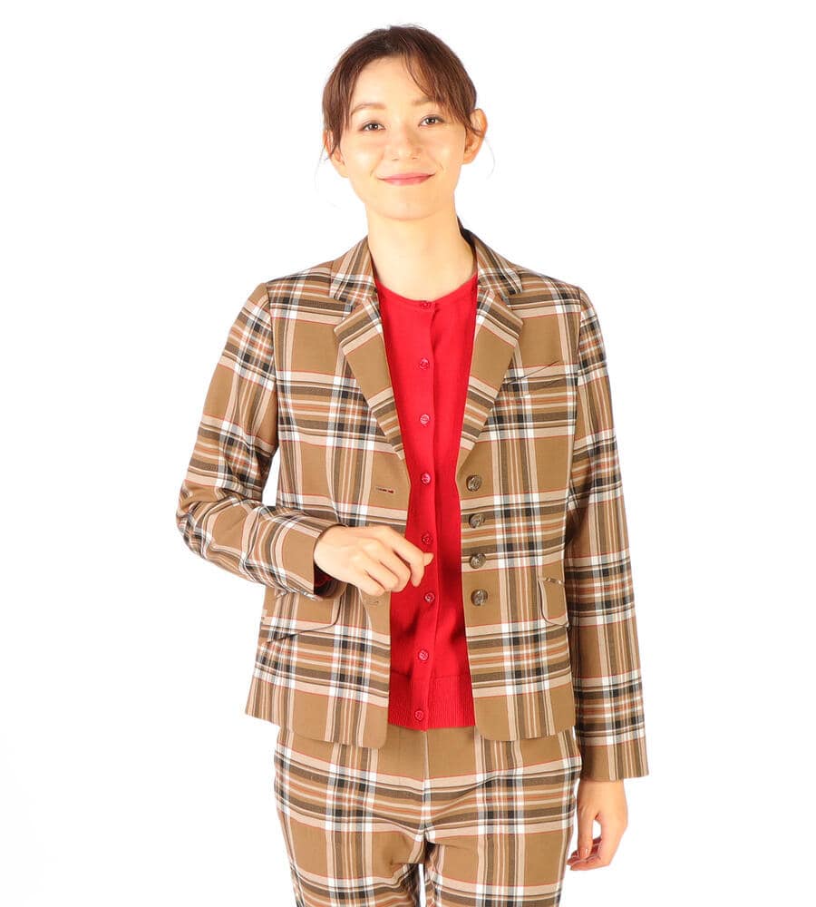 トラッドなタータン柄がスタイリングの主役になるジャケット。美しく計算されたシルエット、スリムなラペルがスタイリッシュな雰囲気に。左右にはフラップポケットを配置、バックにあしらったボタンディテールがポイント。シンプルなインナーと合わせてラフな着こなすのもおすすめです。