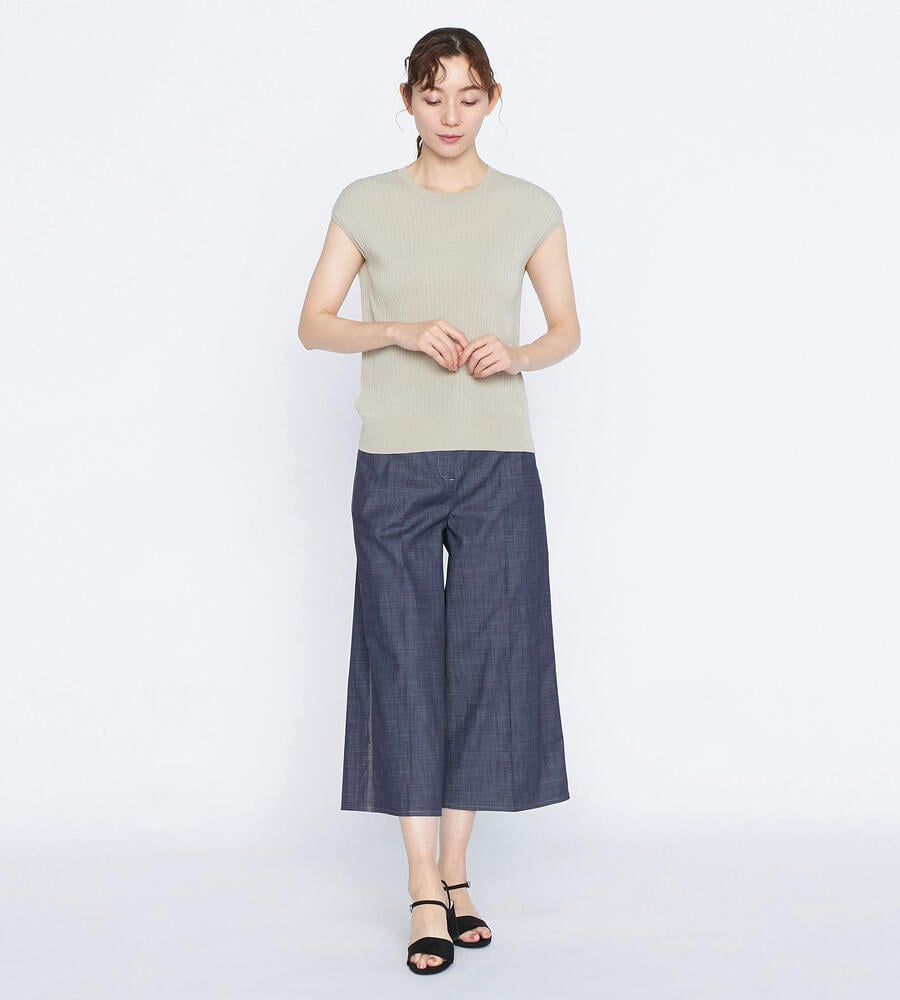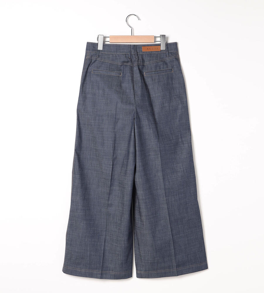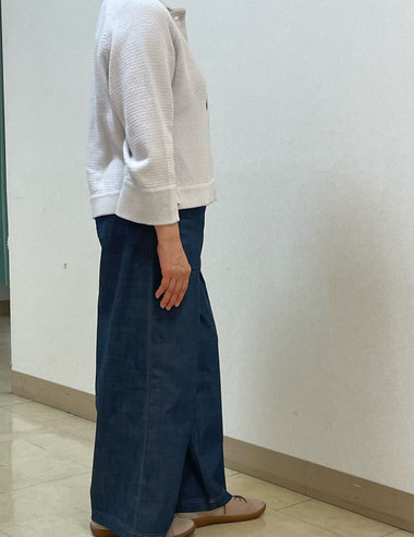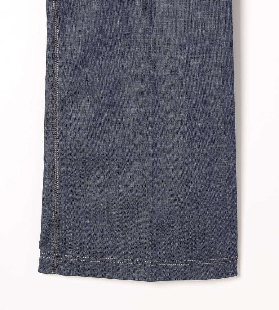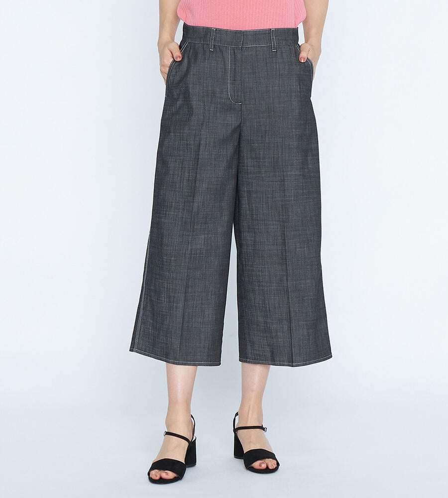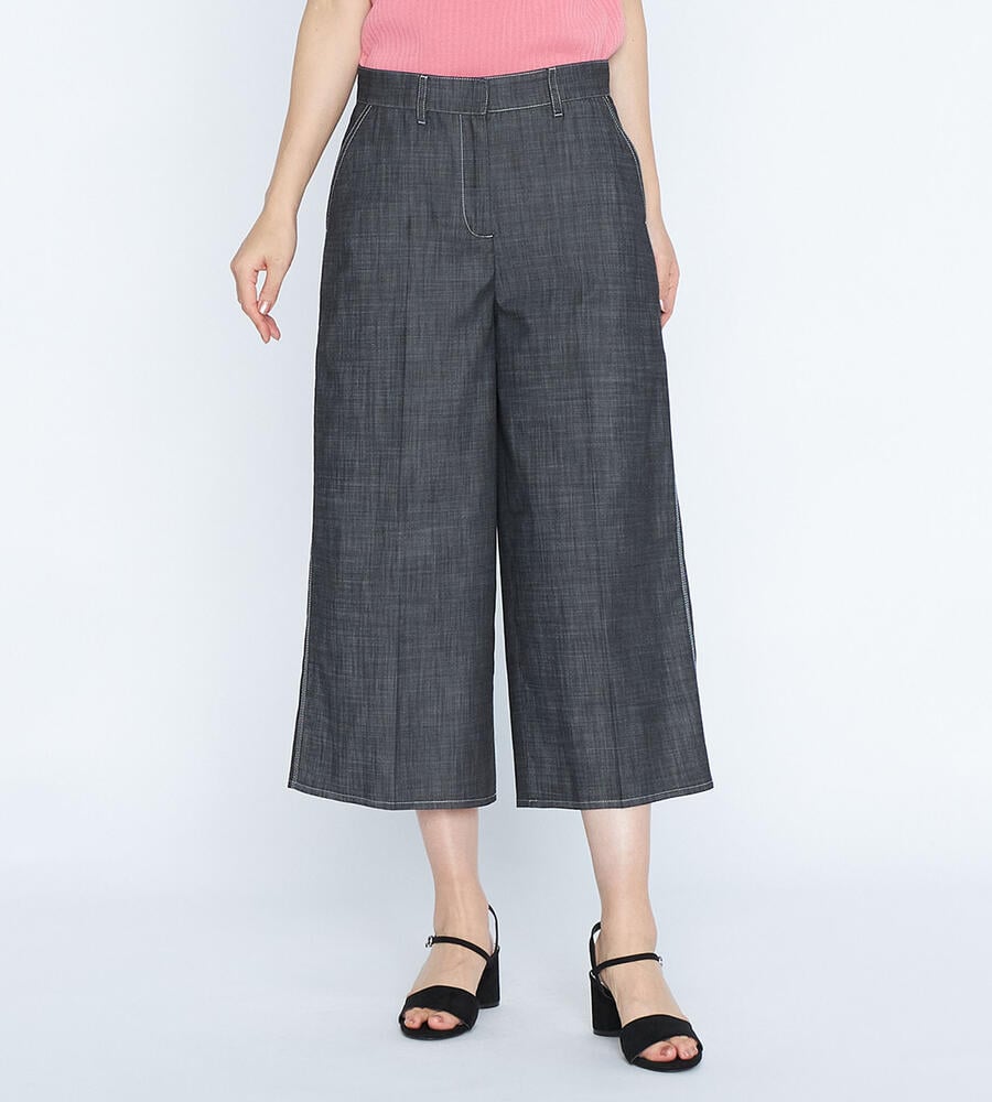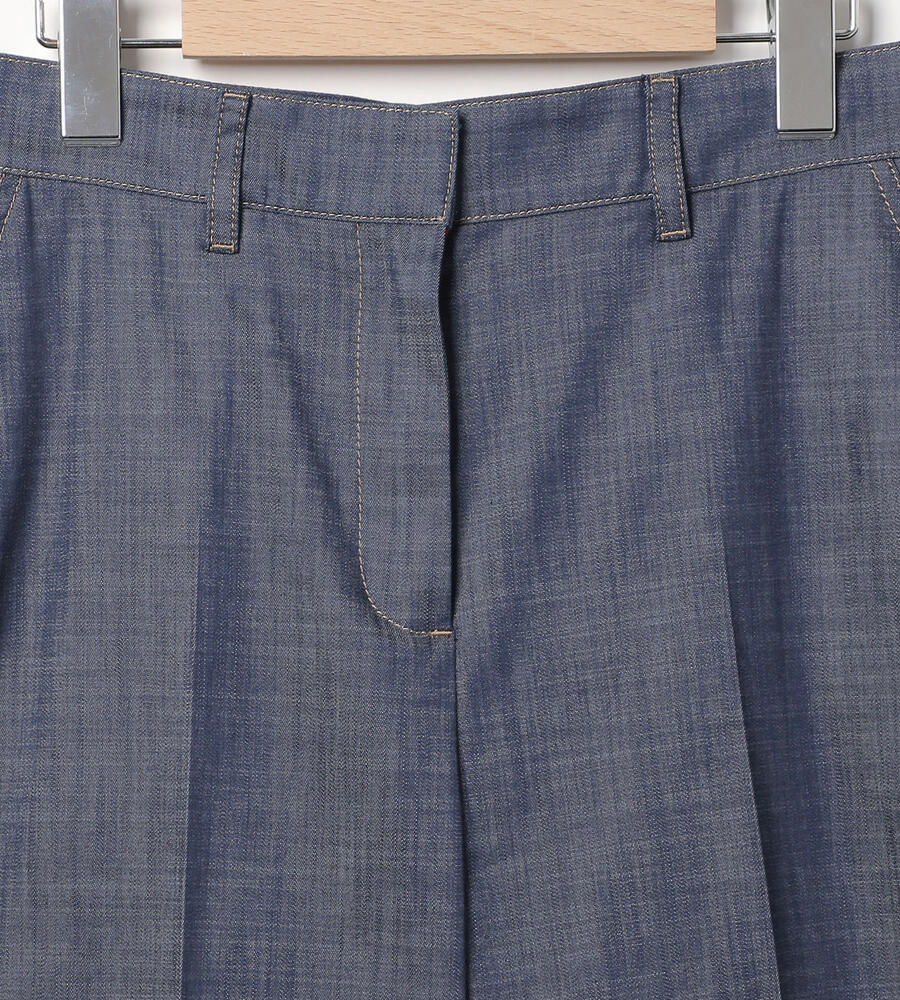 シルエットの程よいワイド感と半端丈の軽やかな印象が特徴のパンツ。ヨーク切り替えとヒップポケットを高めの位置にしており、後ろ姿はすっきりと見えます。センタープレスはシャープさをプラス。霜降り調の表情やフシ感が特徴の豊かな表情も魅力です。配色のステッチがカジュアルなアクセントとして効いています。
