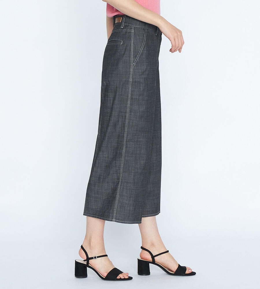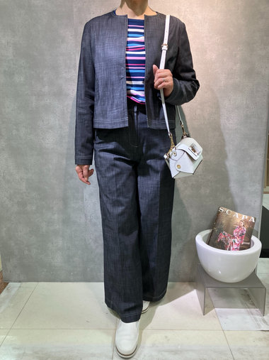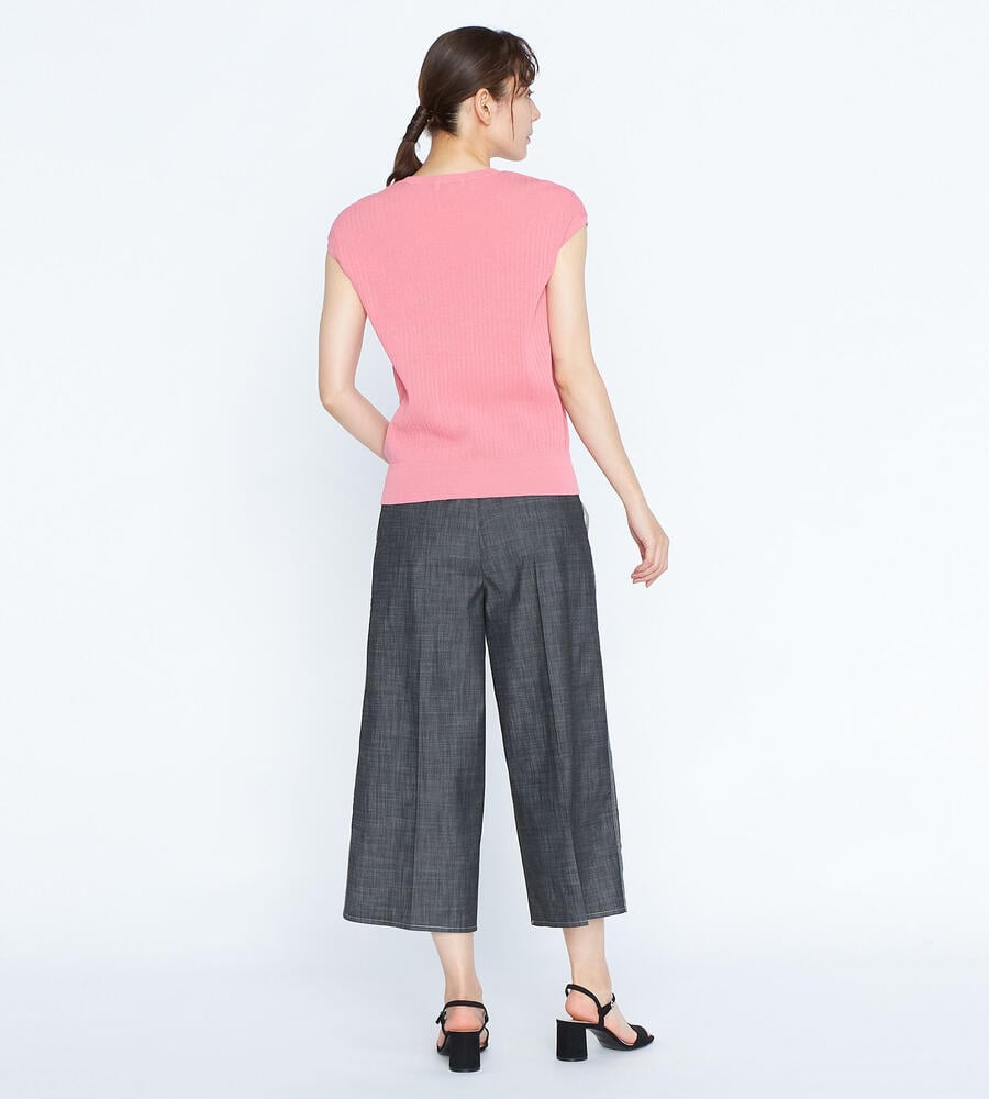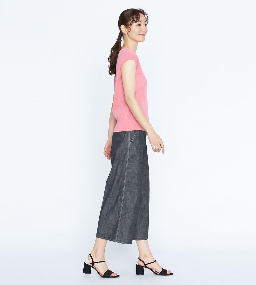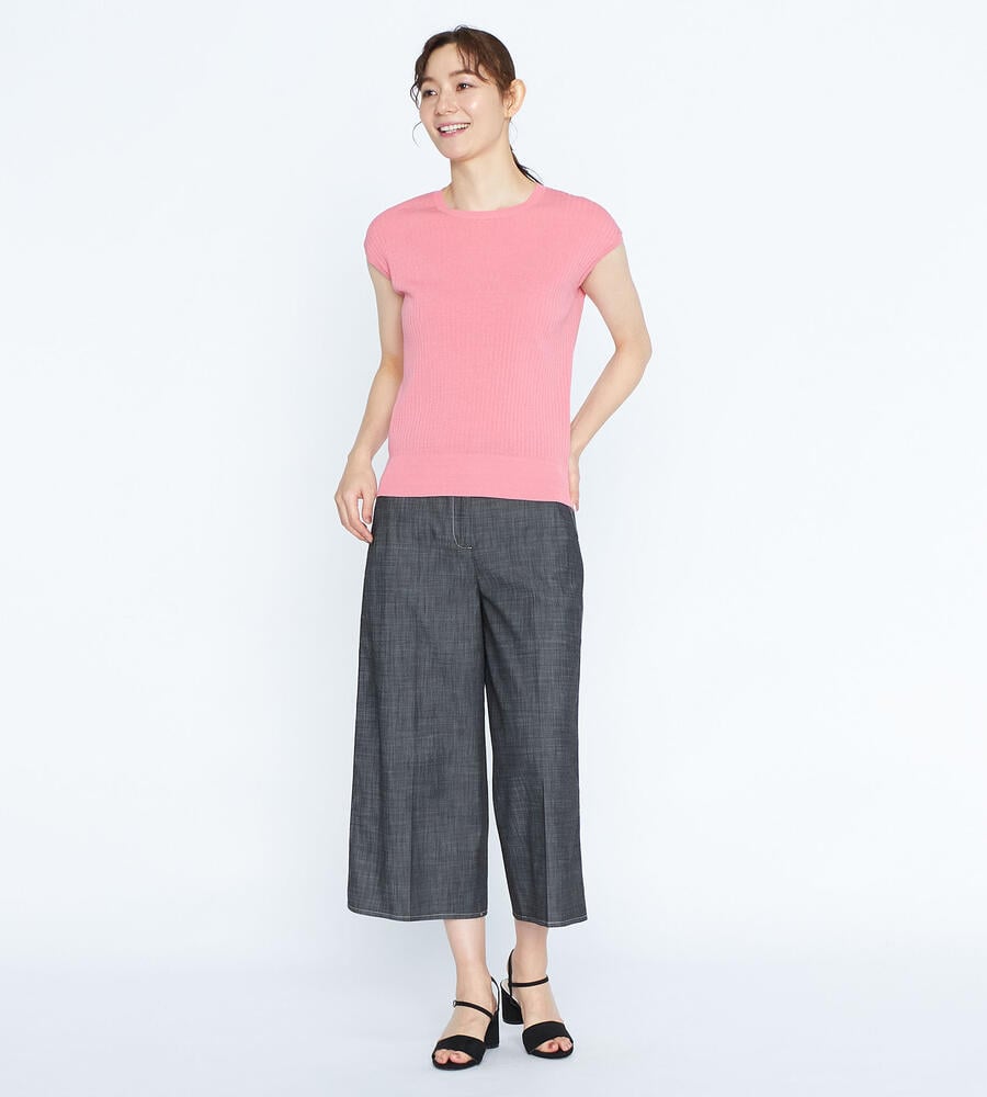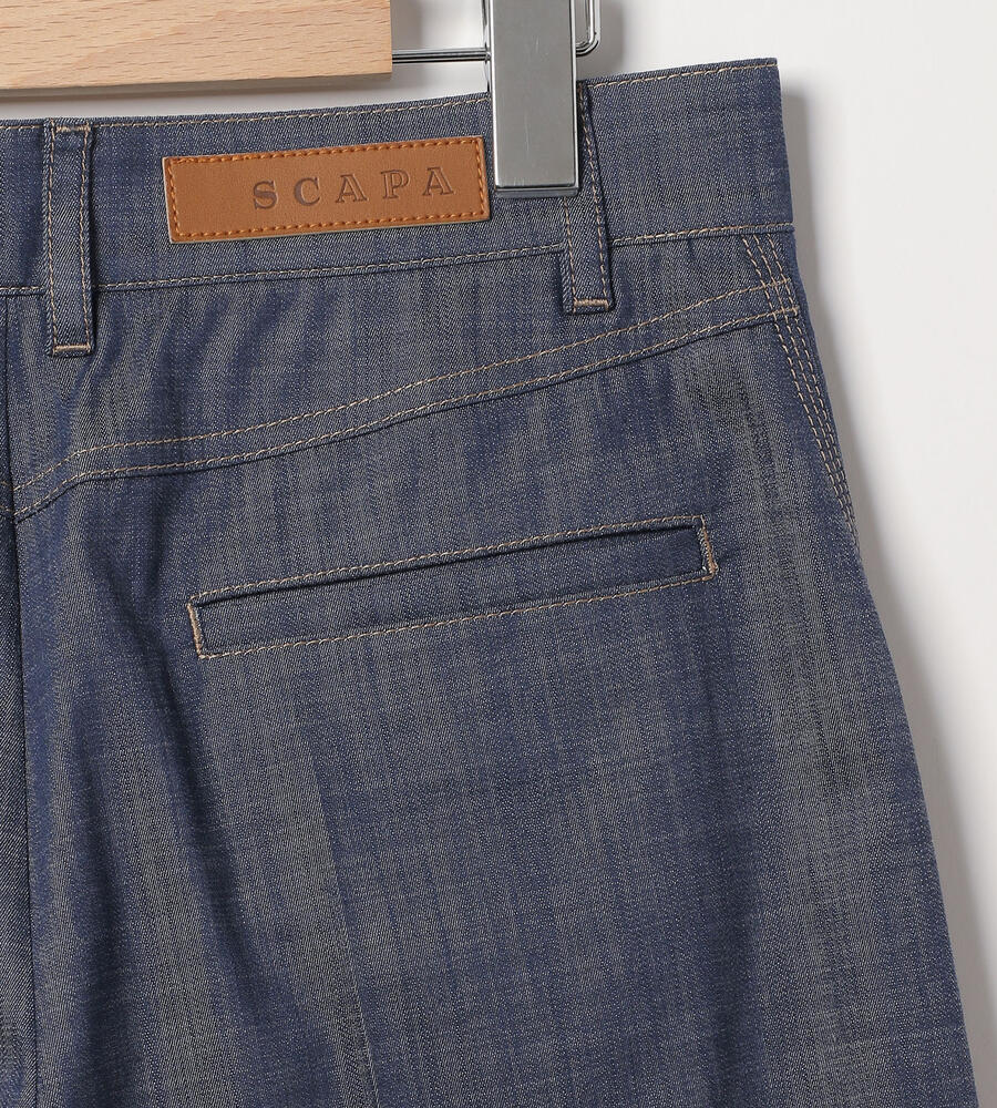 シルエットの程よいワイド感と半端丈の軽やかな印象が特徴のパンツ。ヨーク切り替えとヒップポケットを高めの位置にしており、後ろ姿はすっきりと見えます。センタープレスはシャープさをプラス。霜降り調の表情やフシ感が特徴の豊かな表情も魅力です。配色のステッチがカジュアルなアクセントとして効いています。