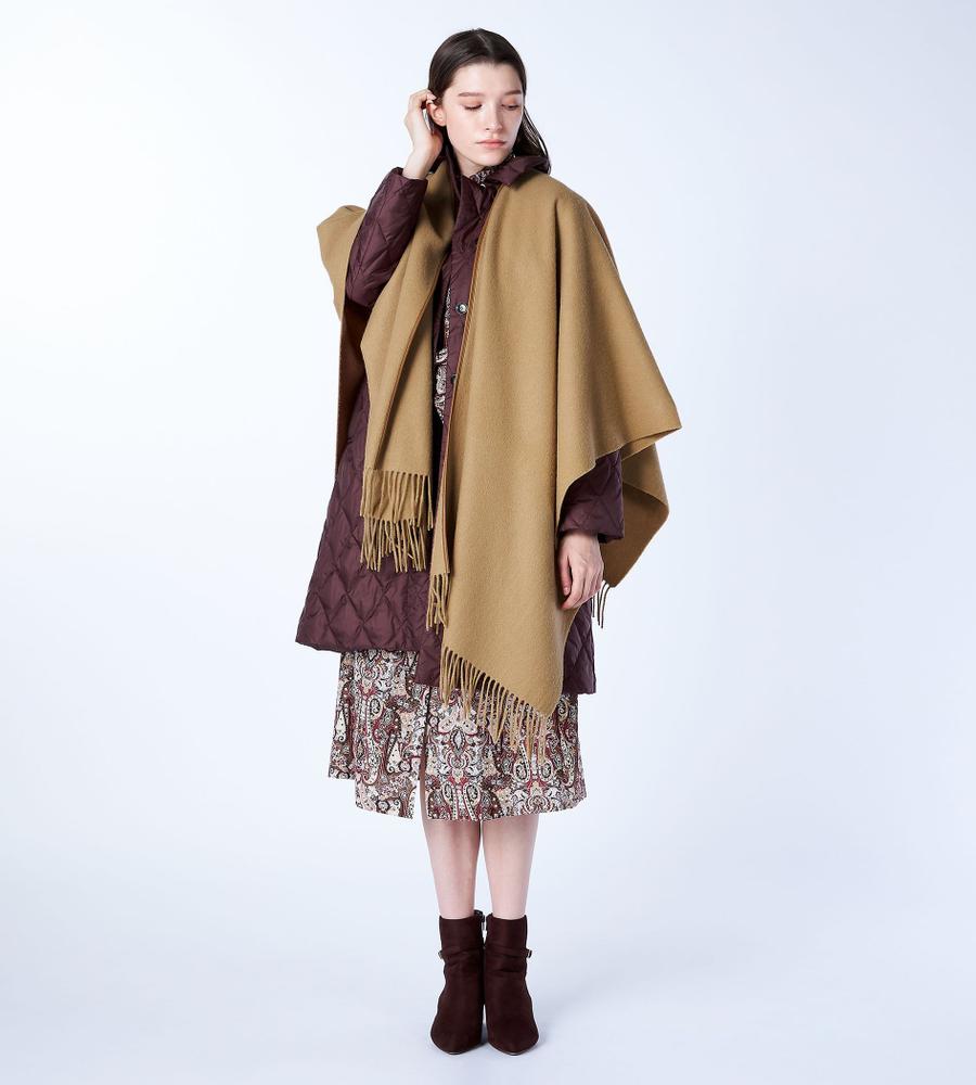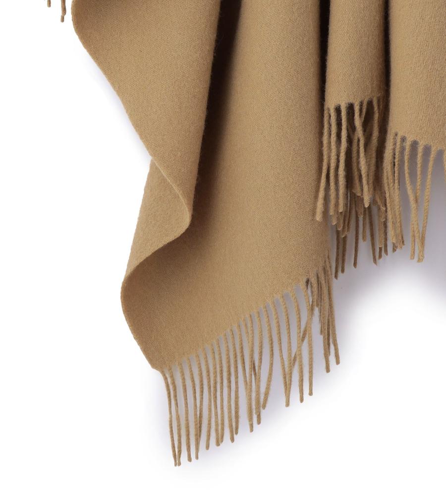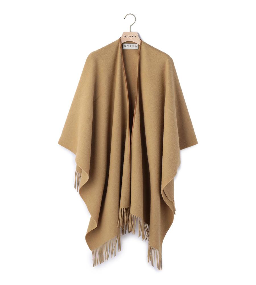 スタイリングの仕上げにさらっと羽織っていただけるストール風のポンチョです。柔らかく軽やかな風合いや、優れた保温性を兼ね備えた毛100%素材を使用しています。フロント部分のパイピングと動きのあるフリンジデザインが華やかな印象。シンプルな着こなしのアクセントや防寒対策に最適なアイテムです。