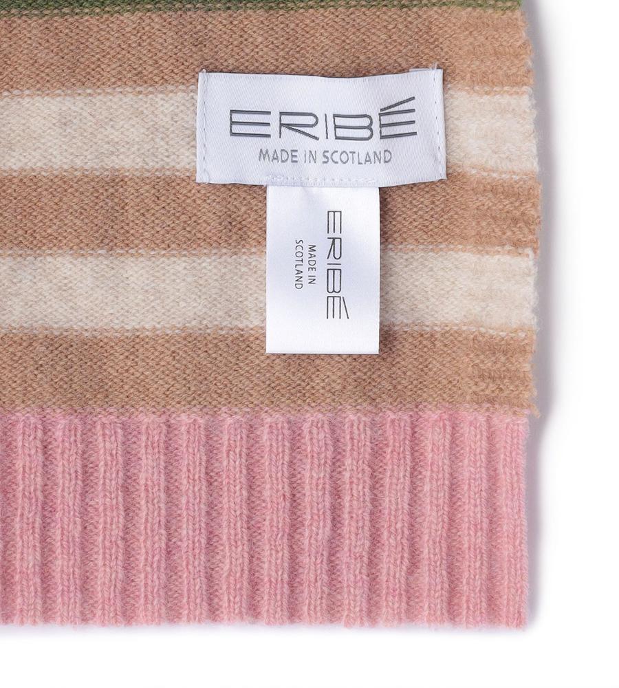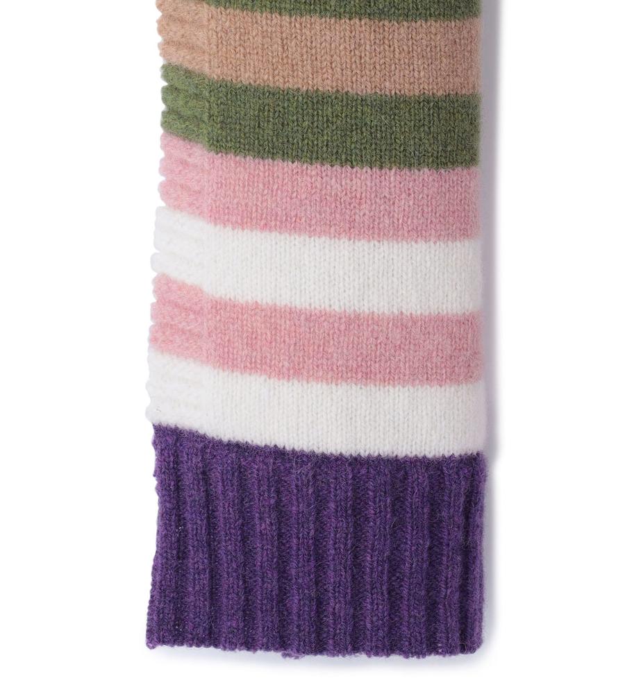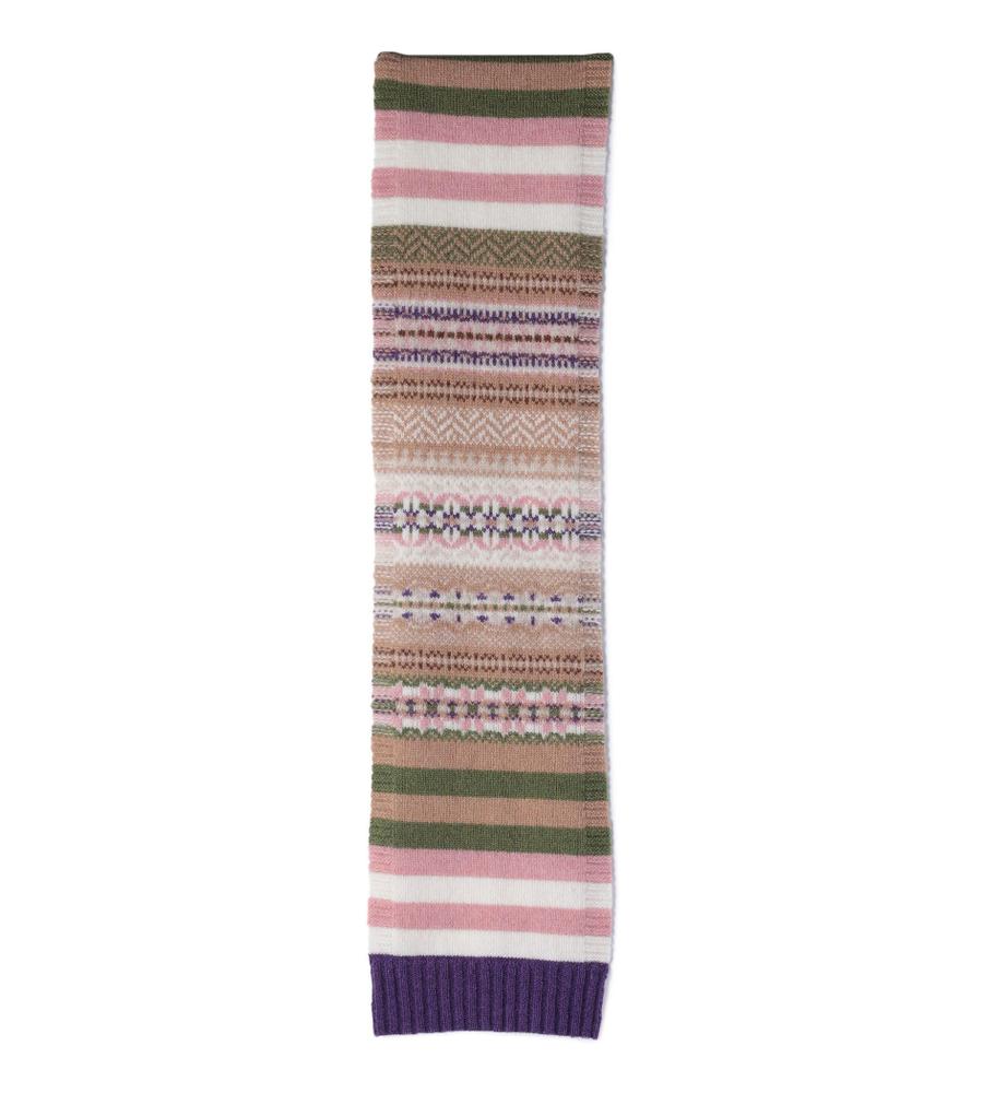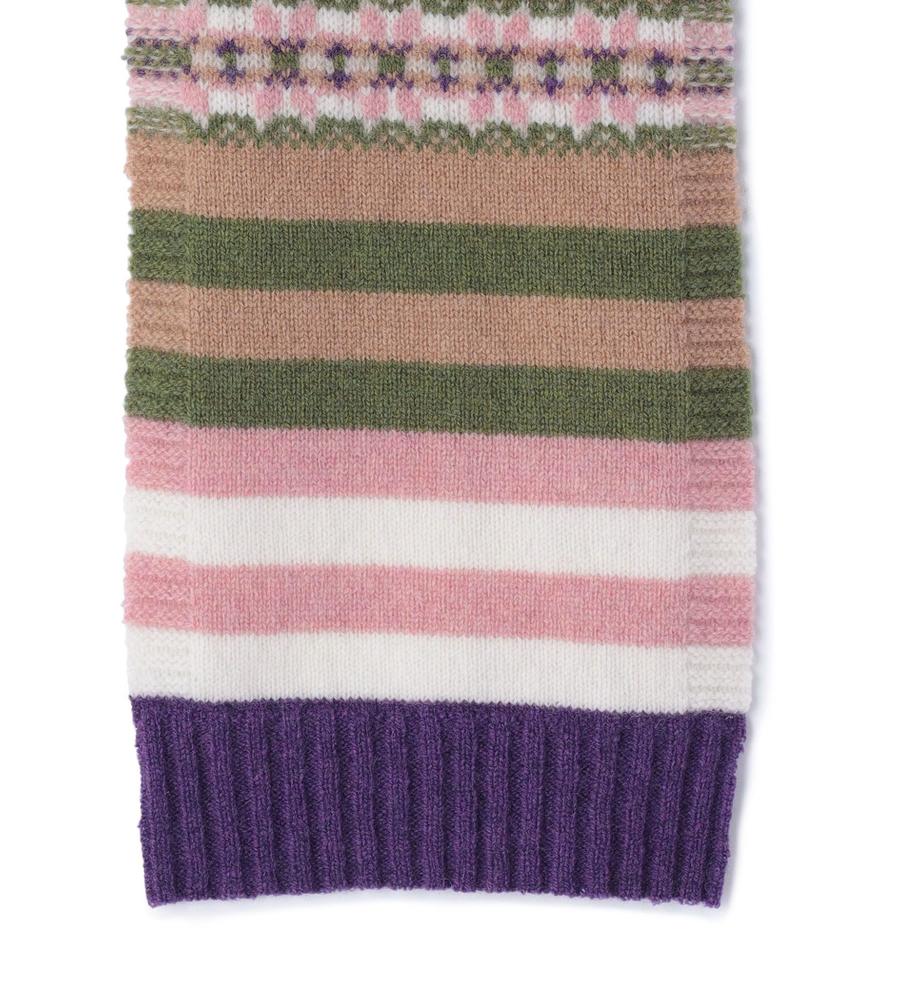 マルチストライプ柄とフェアアイル柄の組み合わせがおしゃれなミニマフラー。スコットランドのブランドERIBEは、オリジナリティある華やかなデザインが魅力。毛100%のあたたかな生地感で、秋冬シーズンの着こなしに最適。重くなりがちな秋冬シーズンの着こなしに、明るいアクセントを与えてくれるアイテムです。