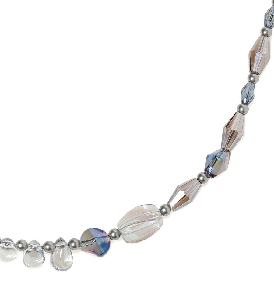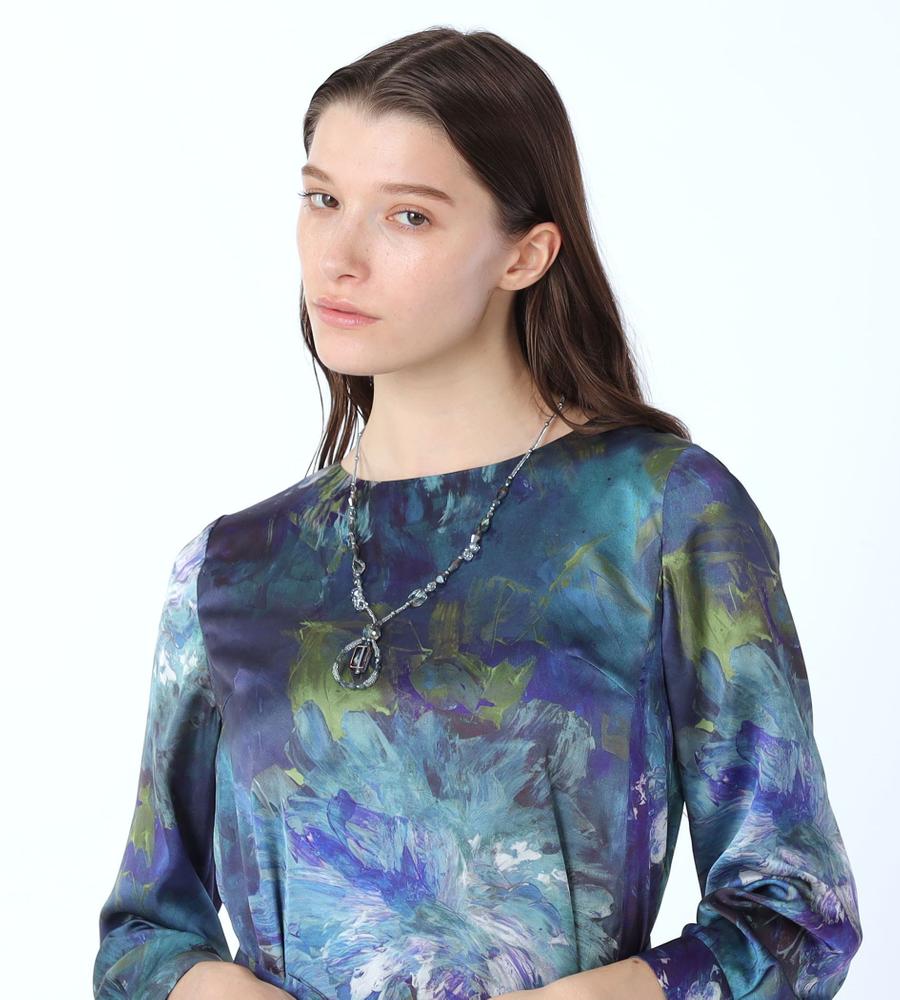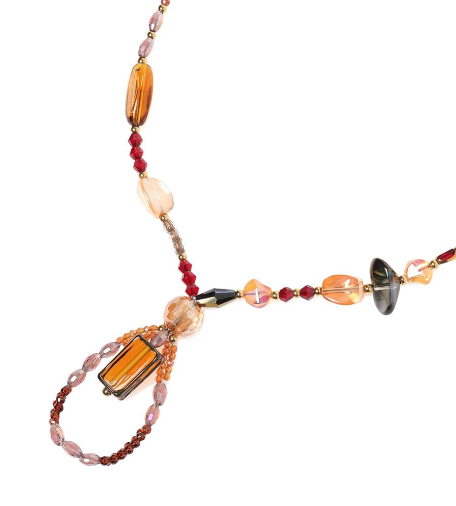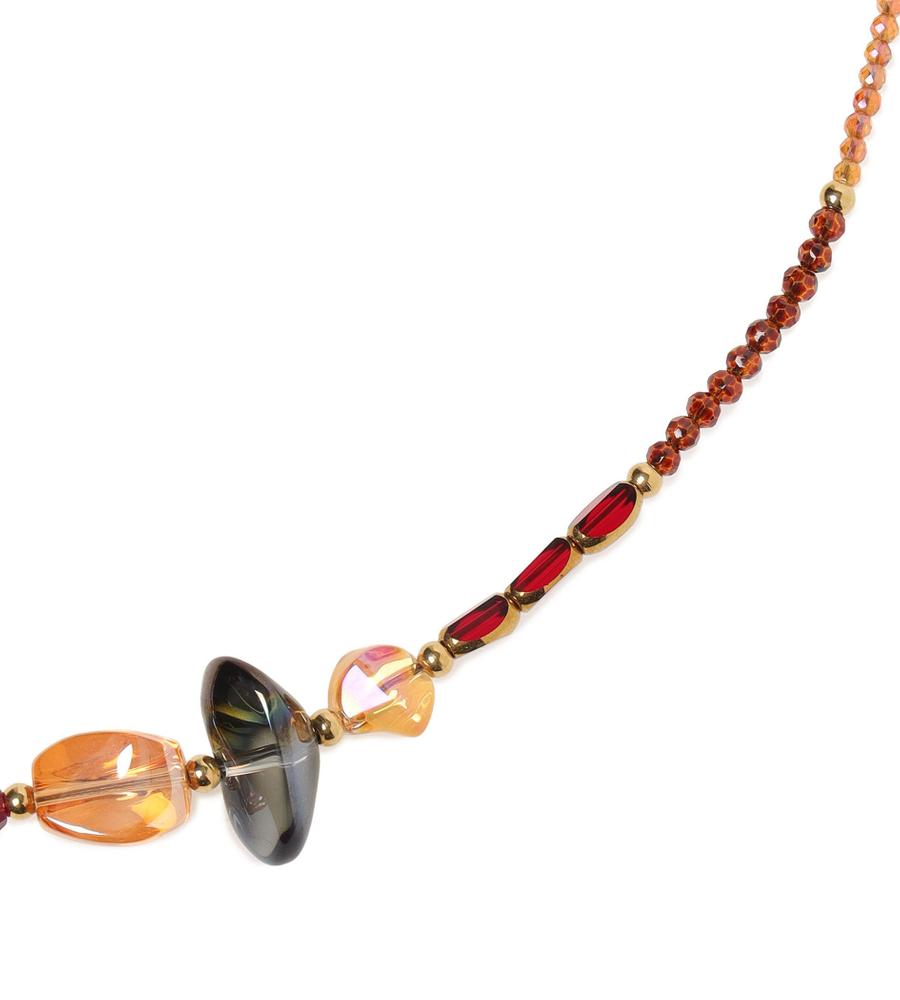 コーディネートに華やぎを添える美しいロングネックレス。色や形の異なるビーズを組み合わせ、センター部分に大ぶりなモチーフをあしらっています。Tシャツからニット、ドレスまで様々なアイテムと相性がよく、季節や着こなしを問わずにお使いいただける一品。アジャスター部分で多少の長さ調整も可能です。