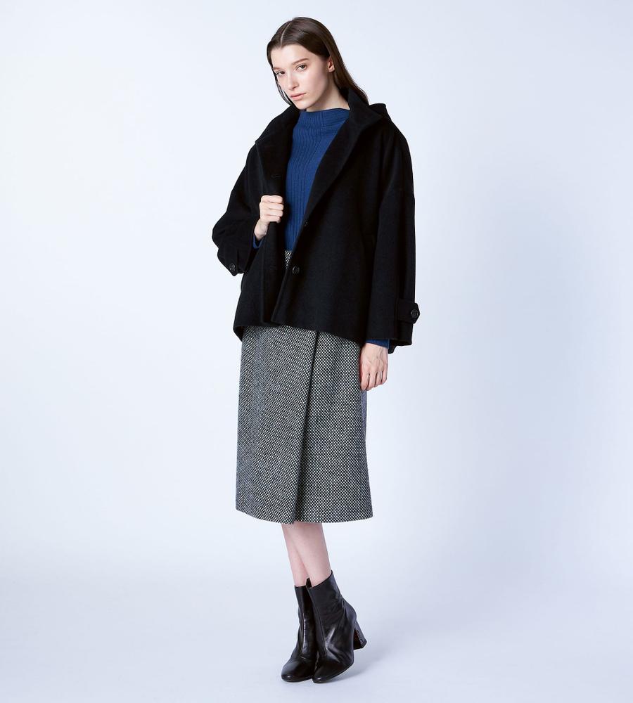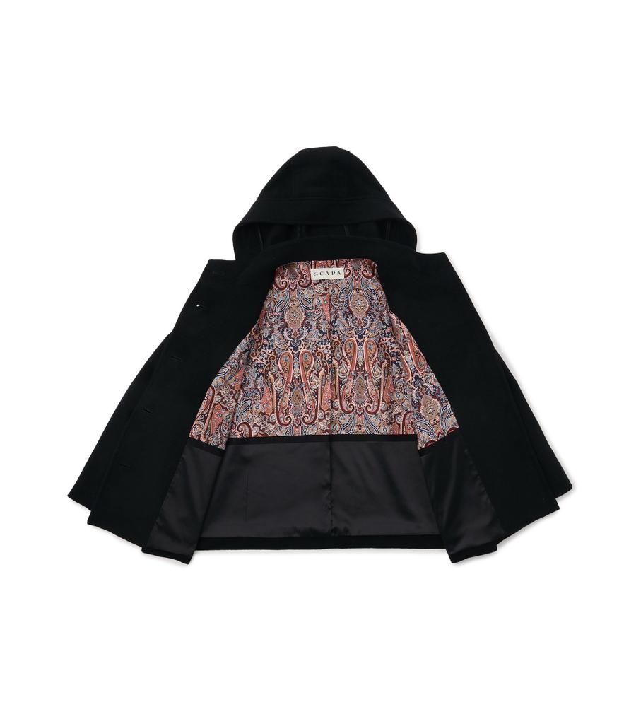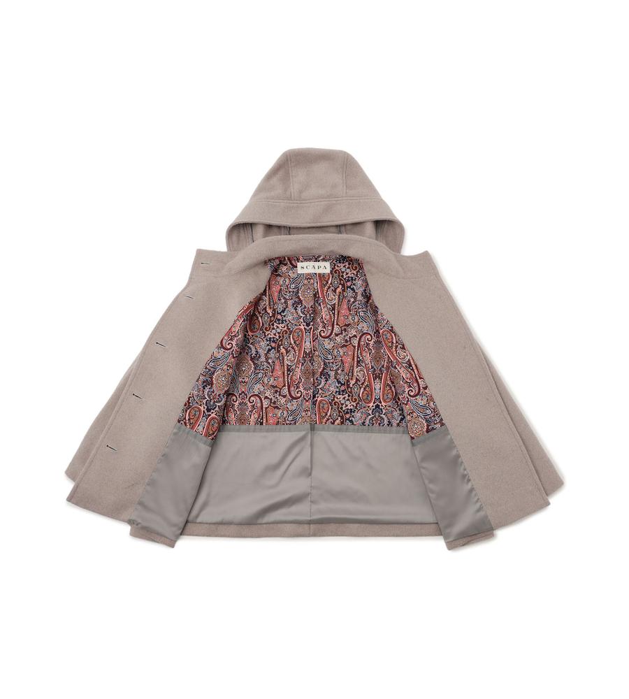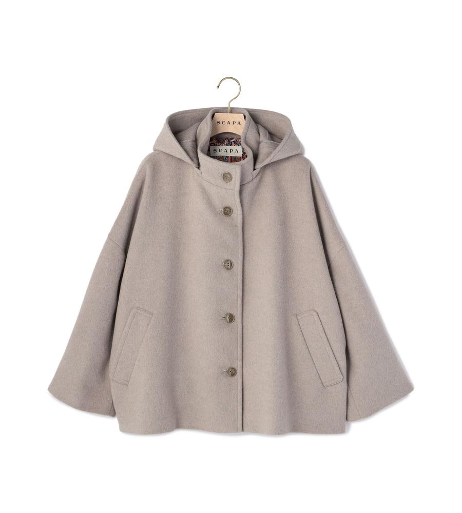 リラックスしたフォルムがモダンな、フード付きのショートコート。美しい毛並みや微光沢がエレガントな、アンゴラビーバー素材です。フロントはシンプルなシングル仕立てで、袖口にはアクセントのベルトディテールをオン。軽快な着丈は、合わせるボトムを選びません。脱いだときにさりげなく目を惹く、裏地のペイズリープリントがポイントです。