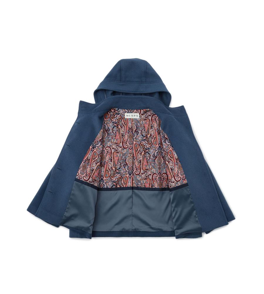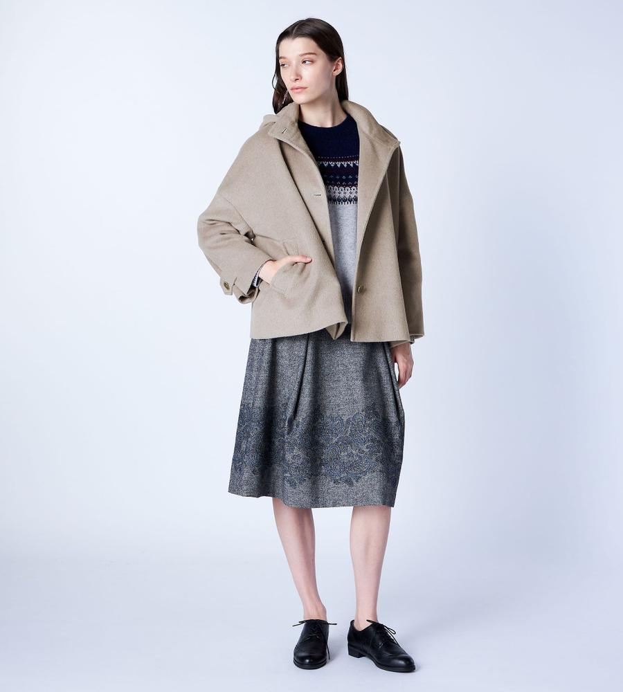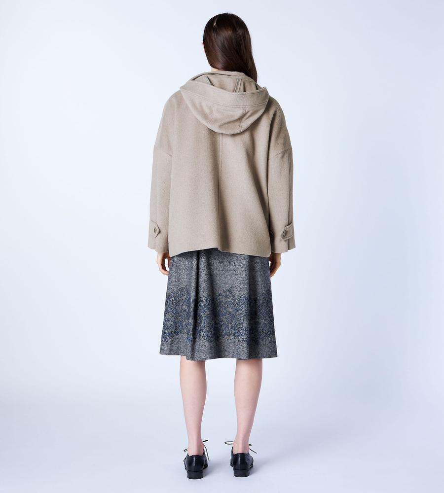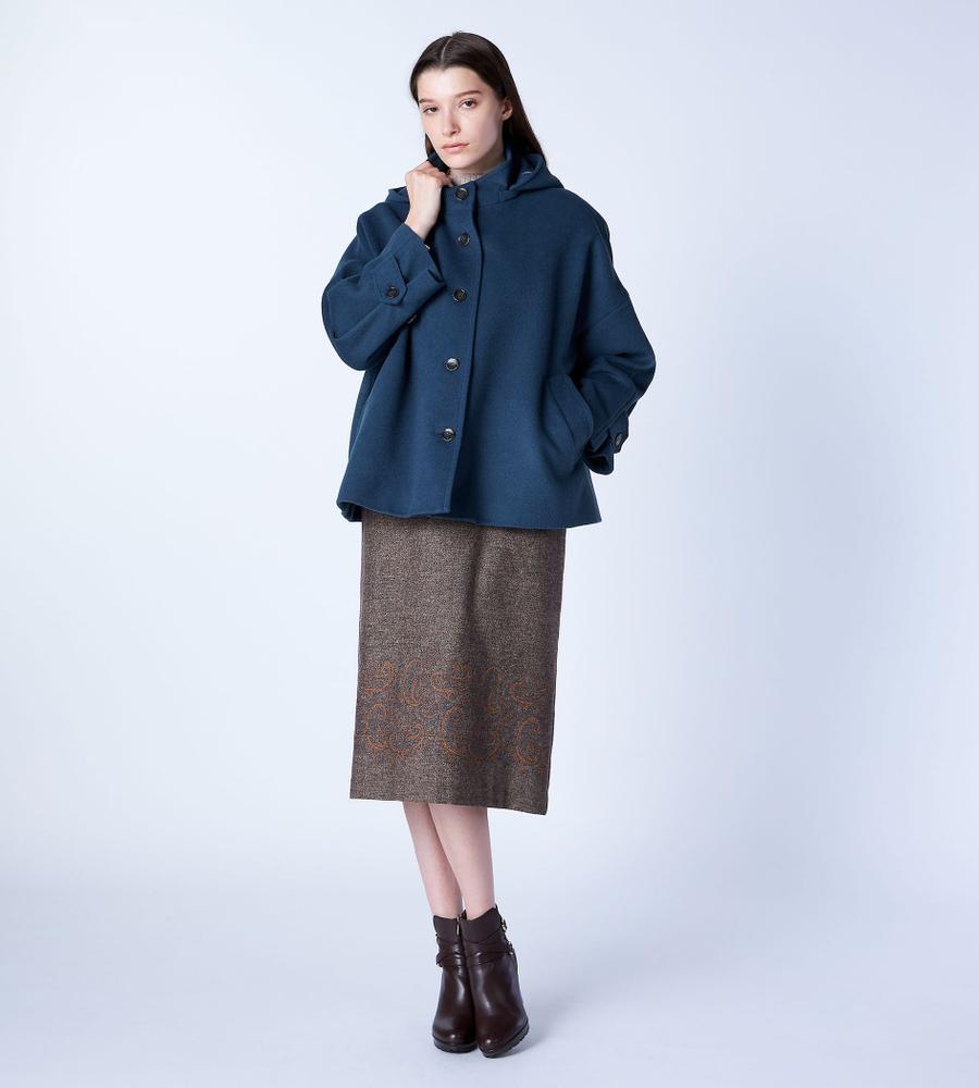 リラックスしたフォルムがモダンな、フード付きのショートコート。美しい毛並みや微光沢がエレガントな、アンゴラビーバー素材です。フロントはシンプルなシングル仕立てで、袖口にはアクセントのベルトディテールをオン。軽快な着丈は、合わせるボトムを選びません。脱いだときにさりげなく目を惹く、裏地のペイズリープリントがポイントです。