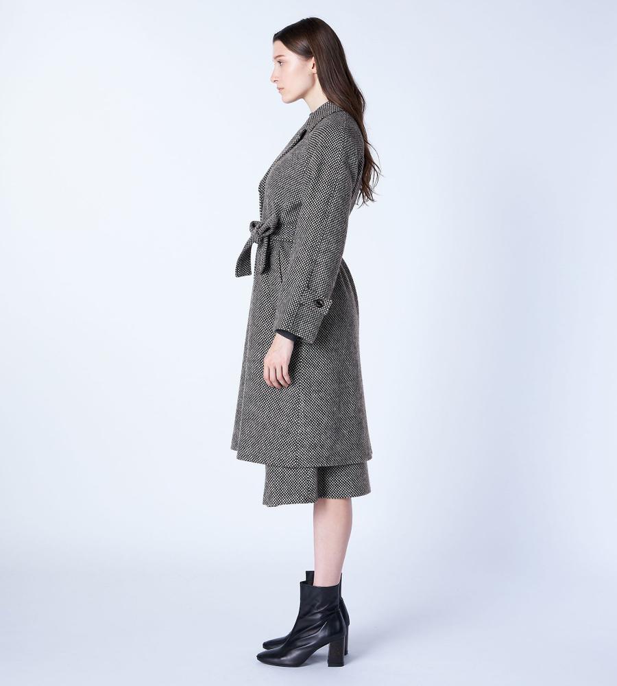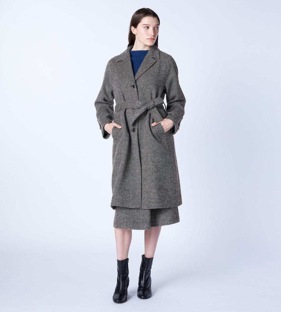 ドビー織りの毛で仕立てた、クラシカルなベルテッドロングコート。ベルトでウエストを絞ると、エレガントなAラインに仕上がります。インナーの合わせで変化を楽しめる、テーラードカラーもポイントです。着用時に手の入れやすいフロントポケット付き。フォーマルスタイルにも合わせられ、またフーディー×ジーンズなどのカジュアルルックにもマッチします。