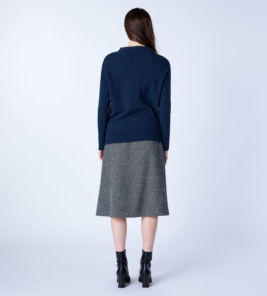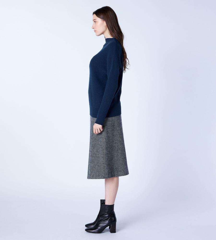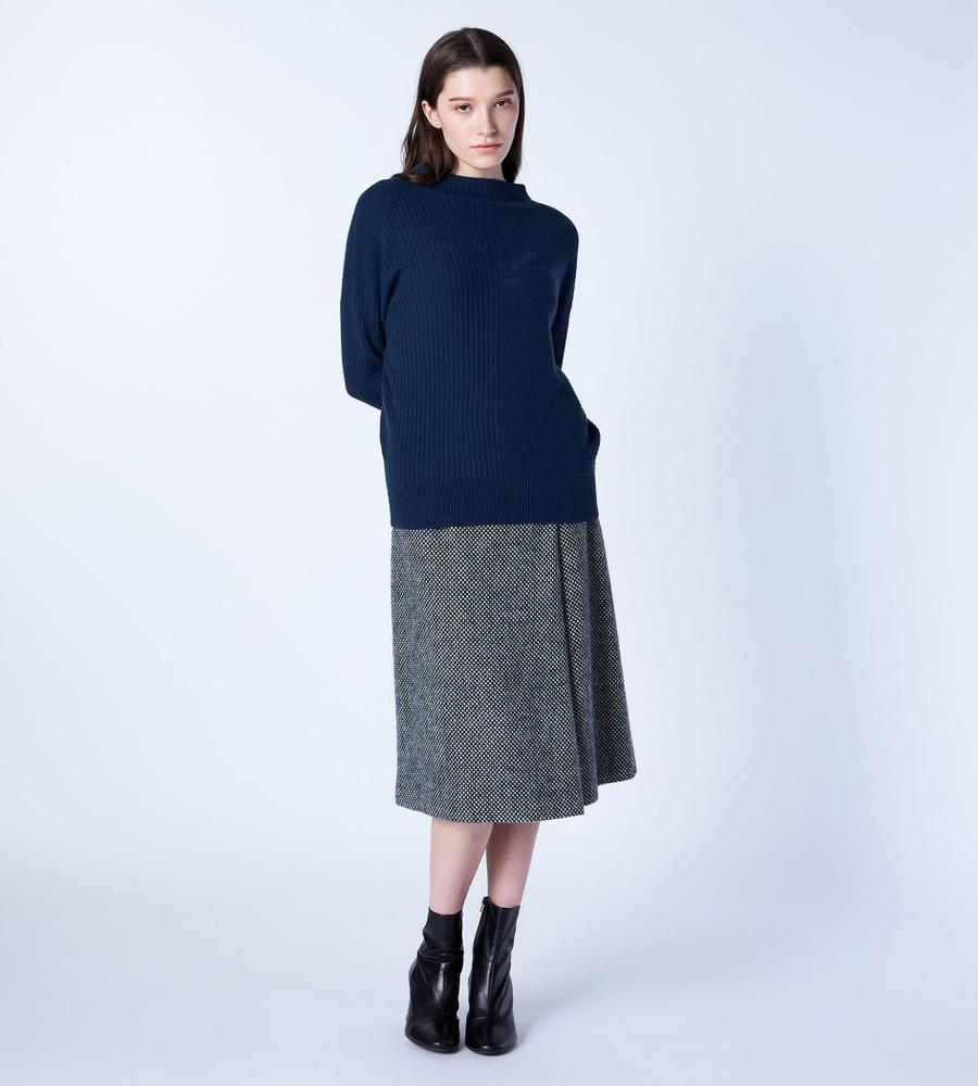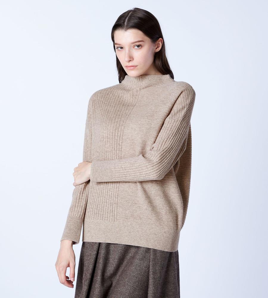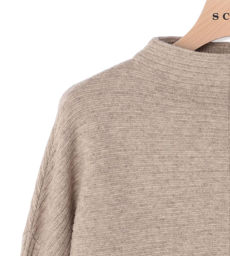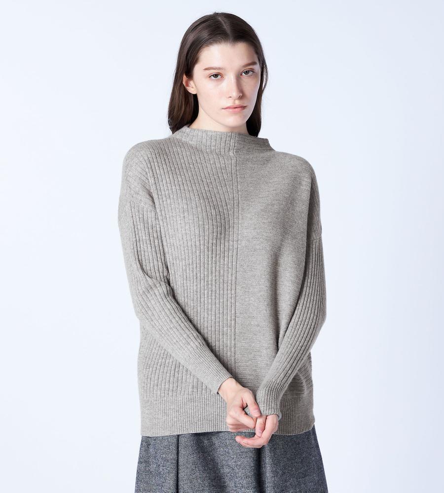 毛100%を用いたニットトップス。右身頃と左身頃の編地を変えることで、単色ながらも表情豊か。アシンメトリーデザインがモードの風格も湛えています。秋冬コーデの種着となる、しっかりとした素材感。ゆとりがありながらも、肩まわりはすっきりと見えるデザインで、ゆるすぎない洗練スタイルを楽しめます。
