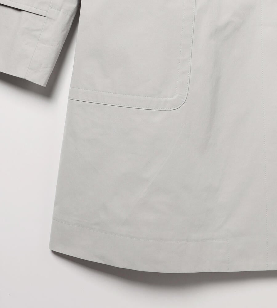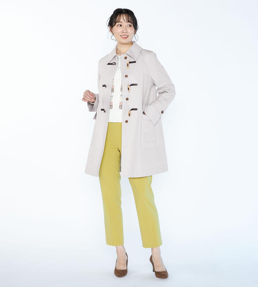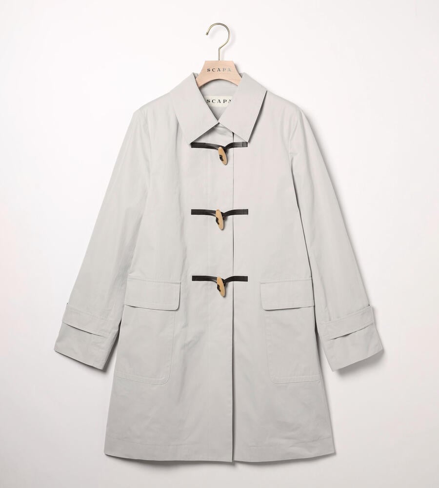 スタイリングを軽やかに仕上げる明るめのカラーで展開したエアリーツイルコート。左右にフラップポケットを配置し、フロントのトグルがモダンクラシックな印象を与えています。腰まわりをカバーする着丈でコーディネートをバランス良く着こなせるのも嬉しいポイント。