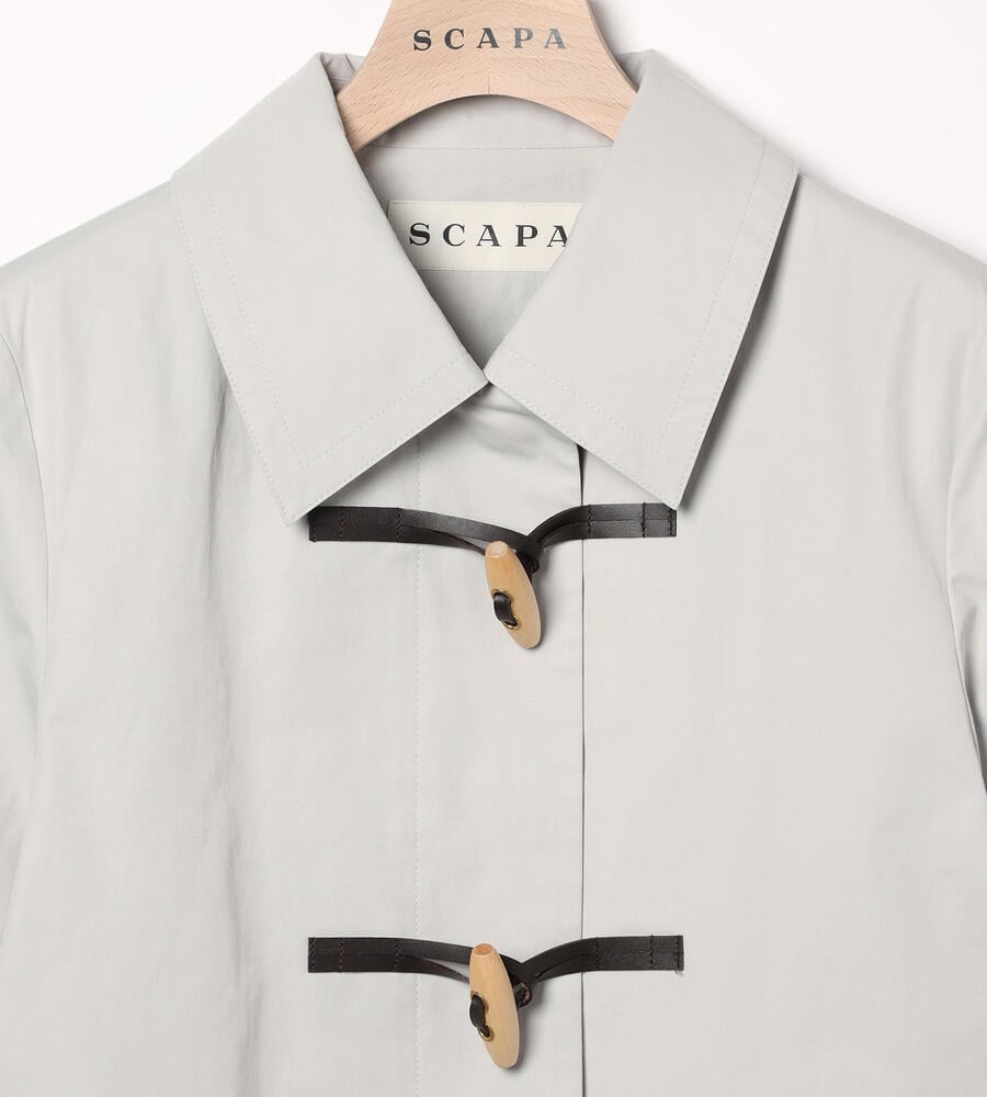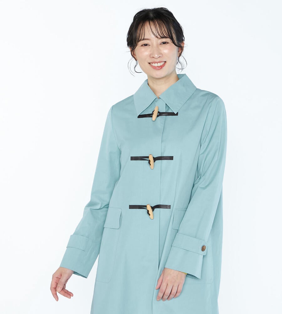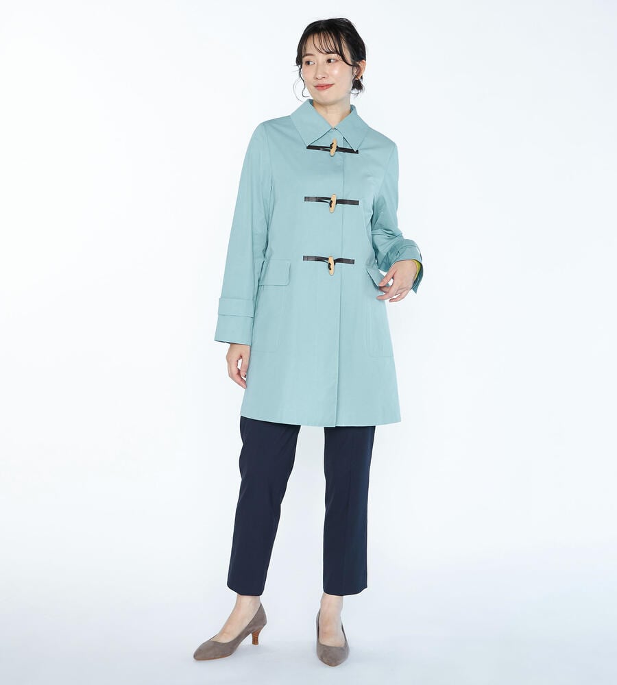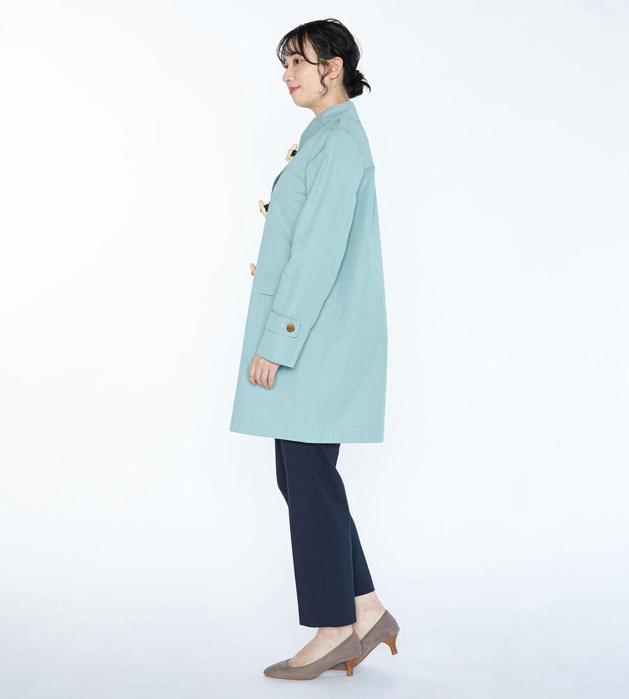 スタイリングを軽やかに仕上げる明るめのカラーで展開したエアリーツイルコート。左右にフラップポケットを配置し、フロントのトグルがモダンクラシックな印象を与えています。腰まわりをカバーする着丈でコーディネートをバランス良く着こなせるのも嬉しいポイント。