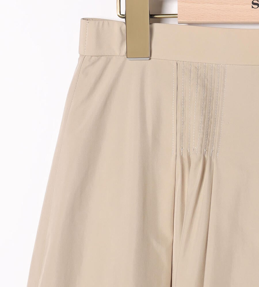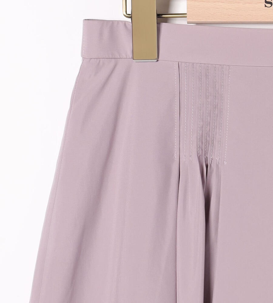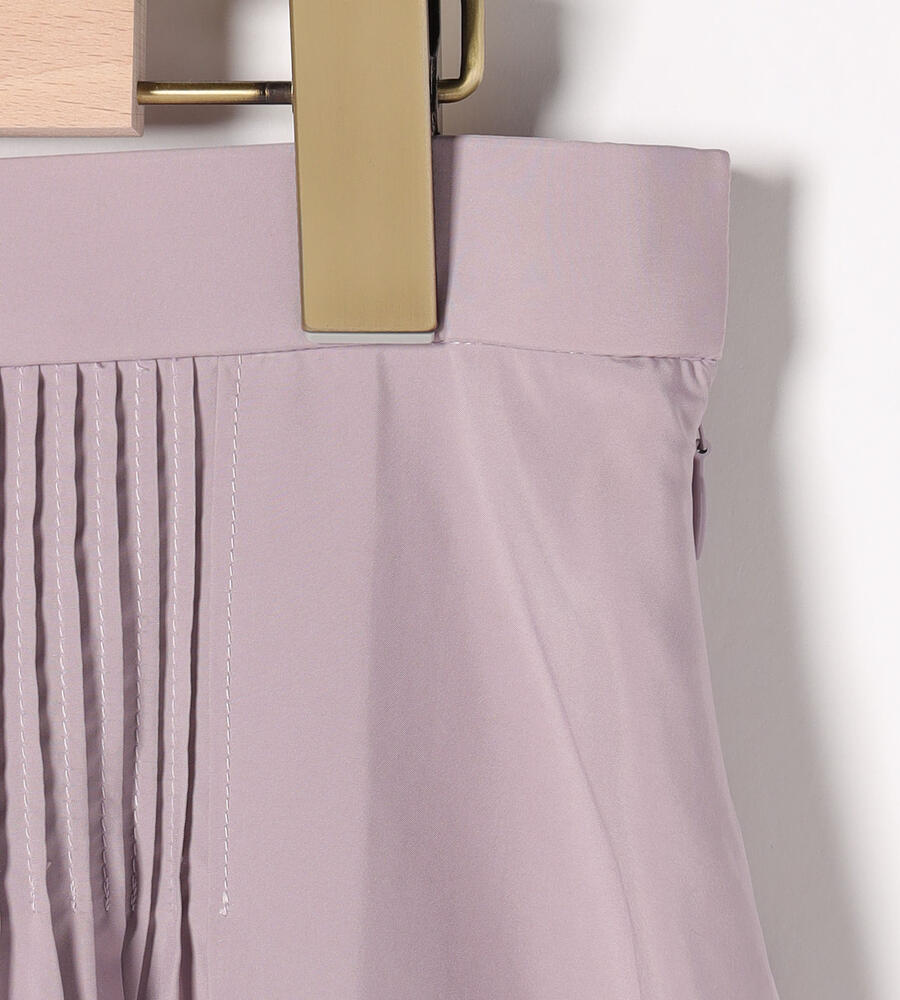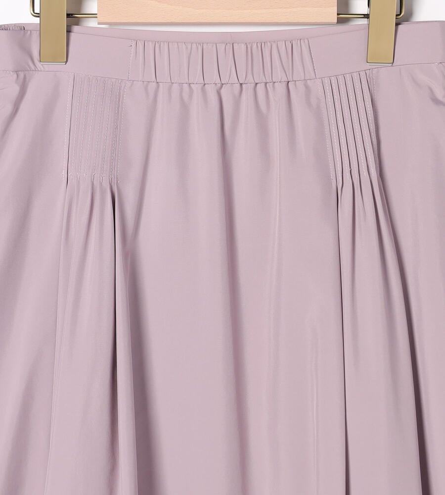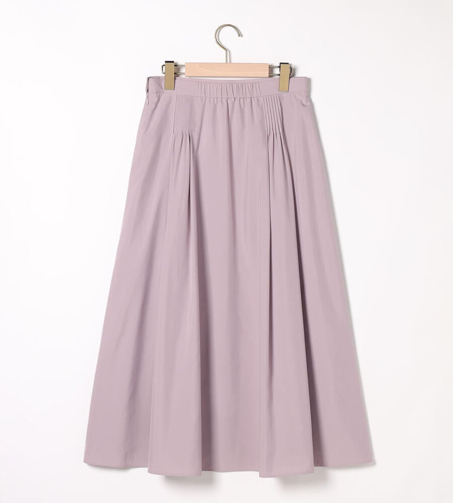 薄手で滑らかなタッチのライトタフタ生地で仕立てたスカートです。落ち着いた膝下のフレアミディシルエットが大人の女性らしさを演出します。ウエストに丁寧にピンタックを施した、手の込んだつくりも魅力の1着。バックウエストがゴム仕様で、締め付け感を軽減し快適な着用感を味わえるのもポイントです。