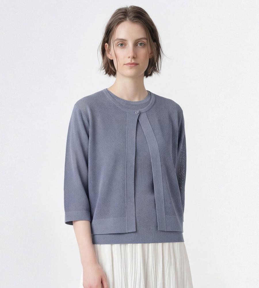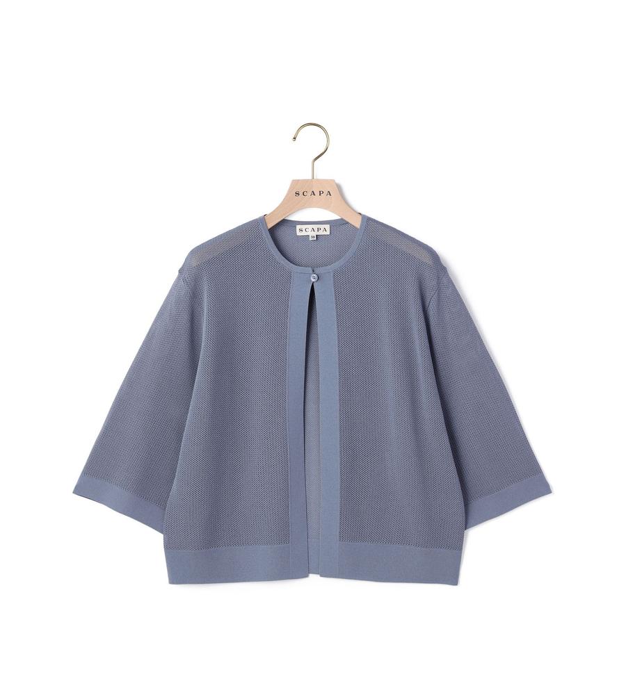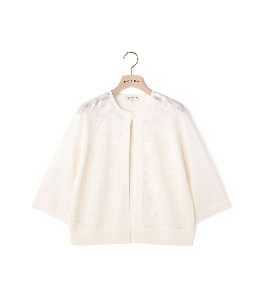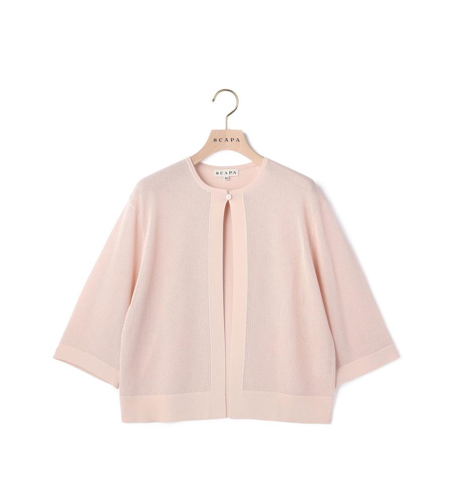 毎日のコーデにトレンド感をプラスする、メッシュ編みのニットで仕上げたカーディガンです。さりげない透け感がセクシーになり過ぎない大人の肌見せスタイルをかなえてくれます。これからの季節の空調対策や紫外線対策にもぴったり、同素材のプルオーバーニットとアンサンブルでそろえるのもおすすめです。