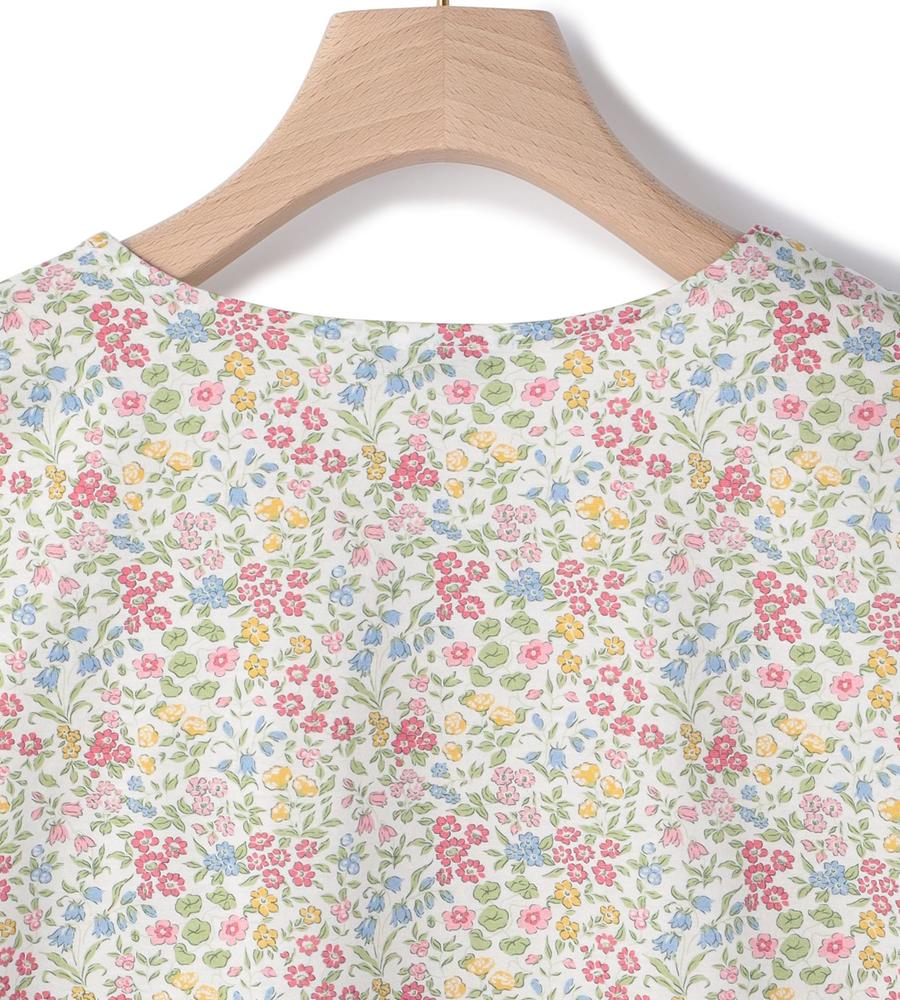 愛らしさとさわやかさを兼ね備えたリバティプリントのカットソー。ほど良いフィット感のあるシルエットで、すっきりスマートな着こなしに。一枚着はもちろん、レイヤードのインに取り入れるのもおすすめです。