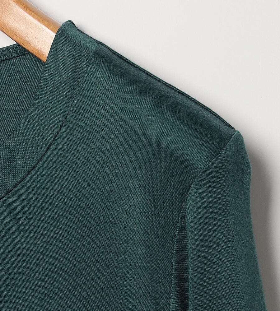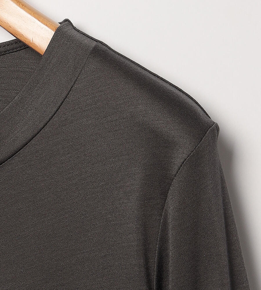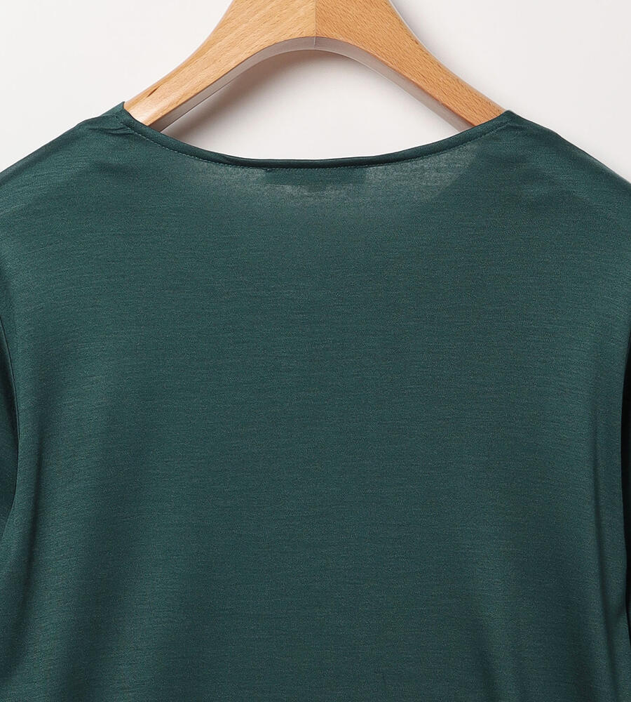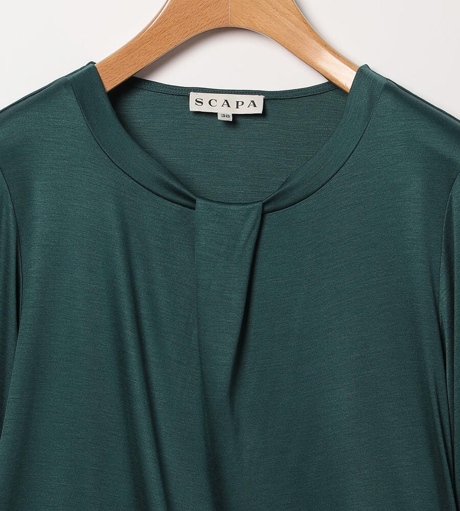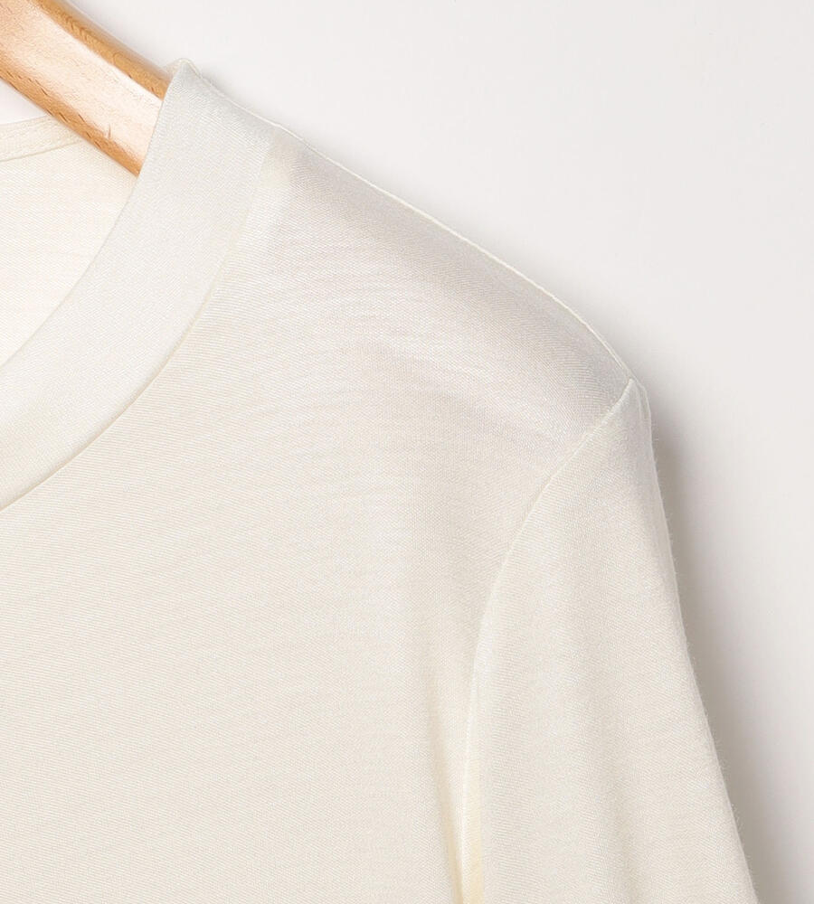 シルク混の滑らかな質感がドレッシーな印象を与えてくれるスムースカットソーです。襟元にタックを施したディテールが、さりげなくポイントになっています。袖口のギャザーによって生まれる美しいドレープ感もエレガント。デイリーユースに最適な、大人のワードローブに加えたいカラーバリエーションが揃っています。