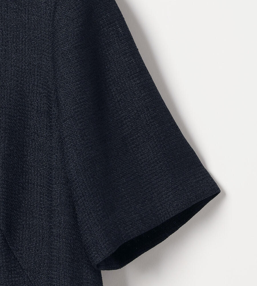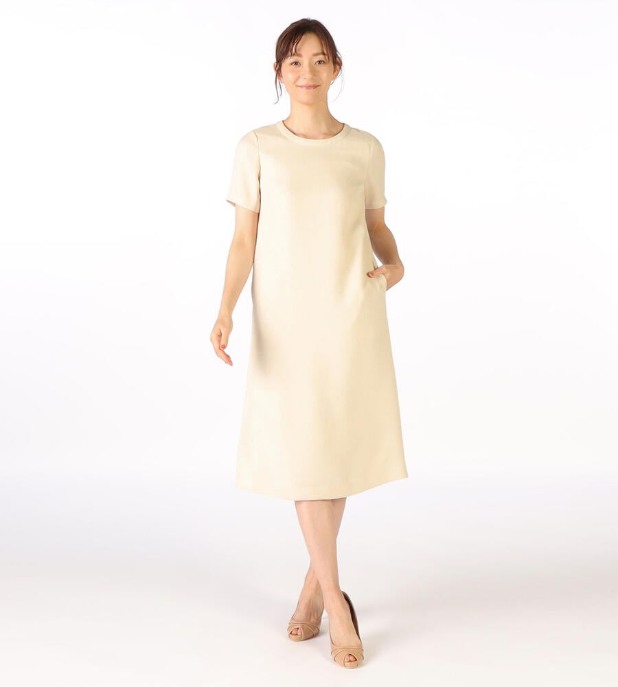 クラシックなスタイルへと導いてくれる、半袖のクルーネックワンピース。コンパクトなトップから自然に広がるフレアラインで、もたつきのないすっきりとした着こなしに仕上がります。首元にスカーフを巻いたり、ベルトでウエストマークしたり、手持ちの小物でアレンジをプラスできるのも魅力です。同素材のジャケットとセットアップでも着用できます。