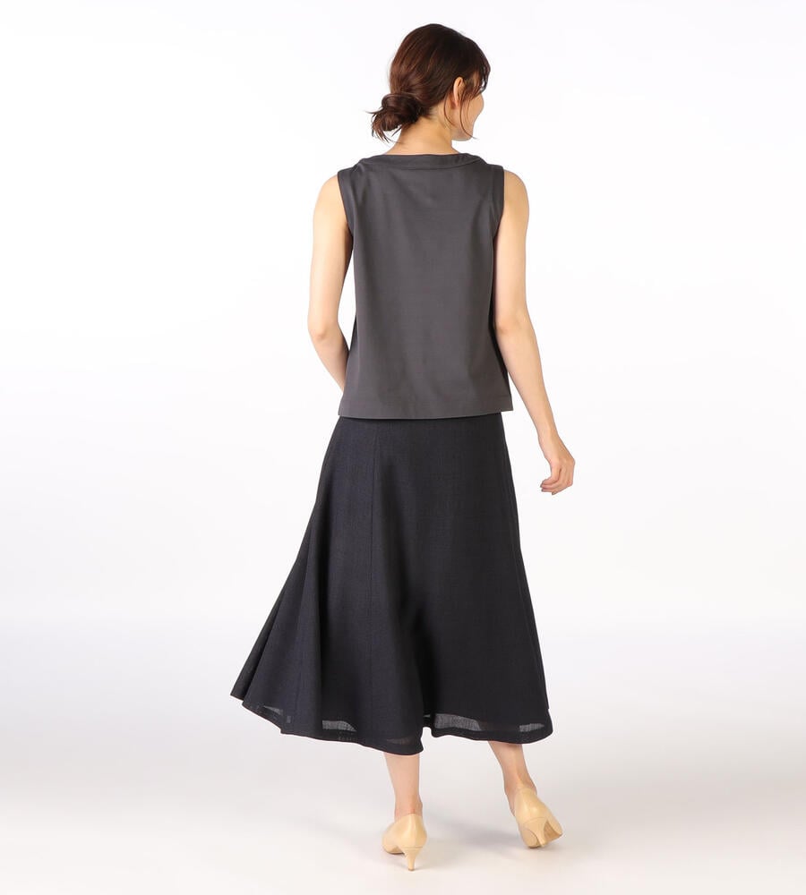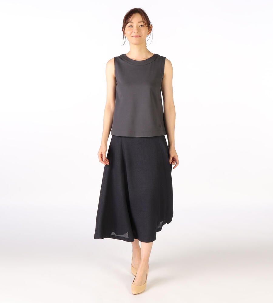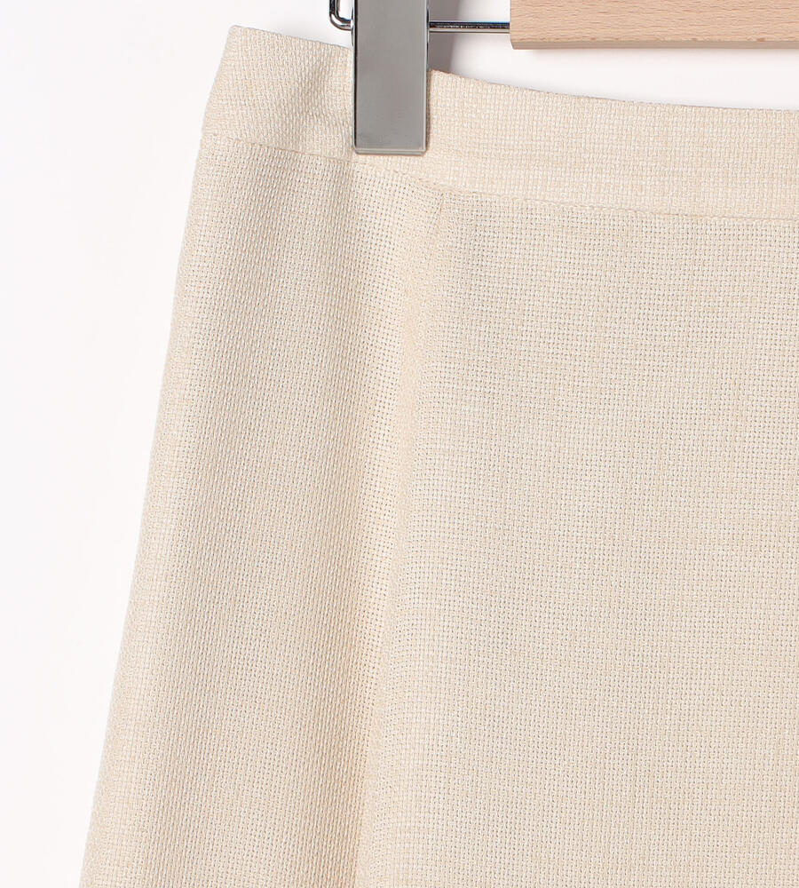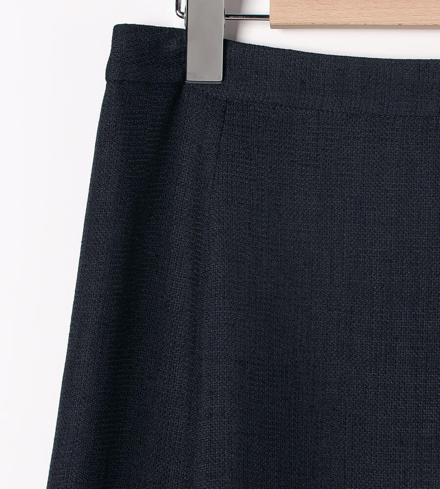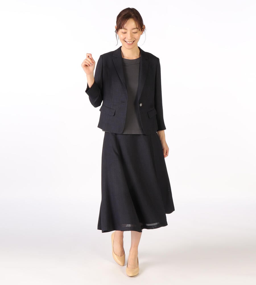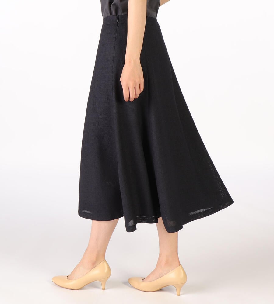 軽やかなポリエステルメッシュ素材と、美しくなびくフレアシルエットにより、フェミニンな夏スタイルを堪能できるミモレ丈のスカートです。ふくらはぎが隠れるほどの着丈で大人が取り入れやすい一着。裏地付きの安心仕様ながら、裾の僅かな透け感が季節感をアピールします。同シリーズのジャケットとセットアップで取り入れられるのも魅力です。