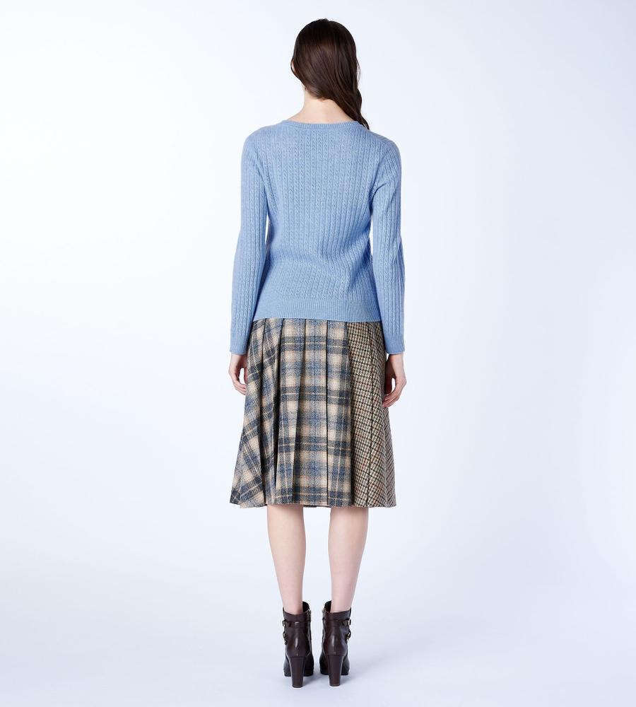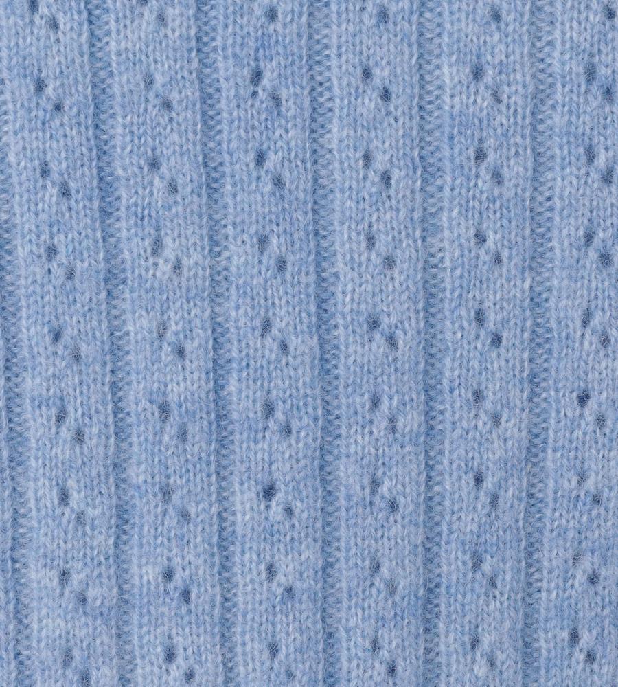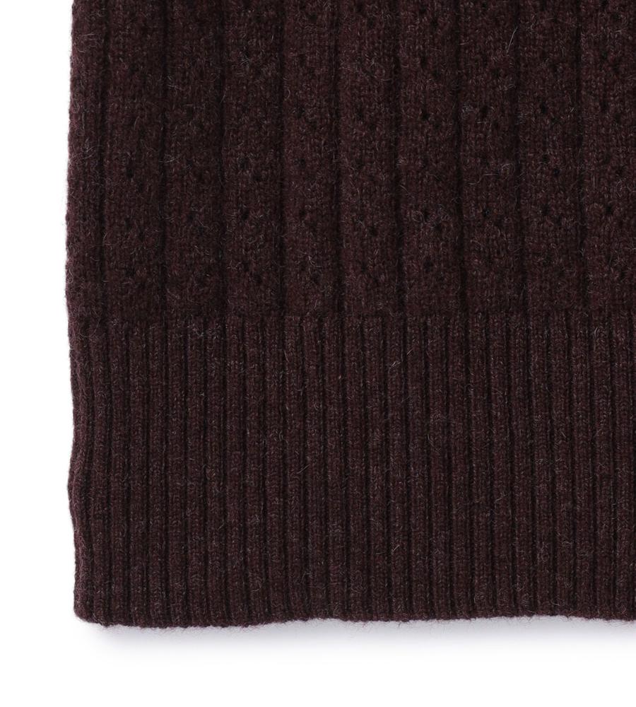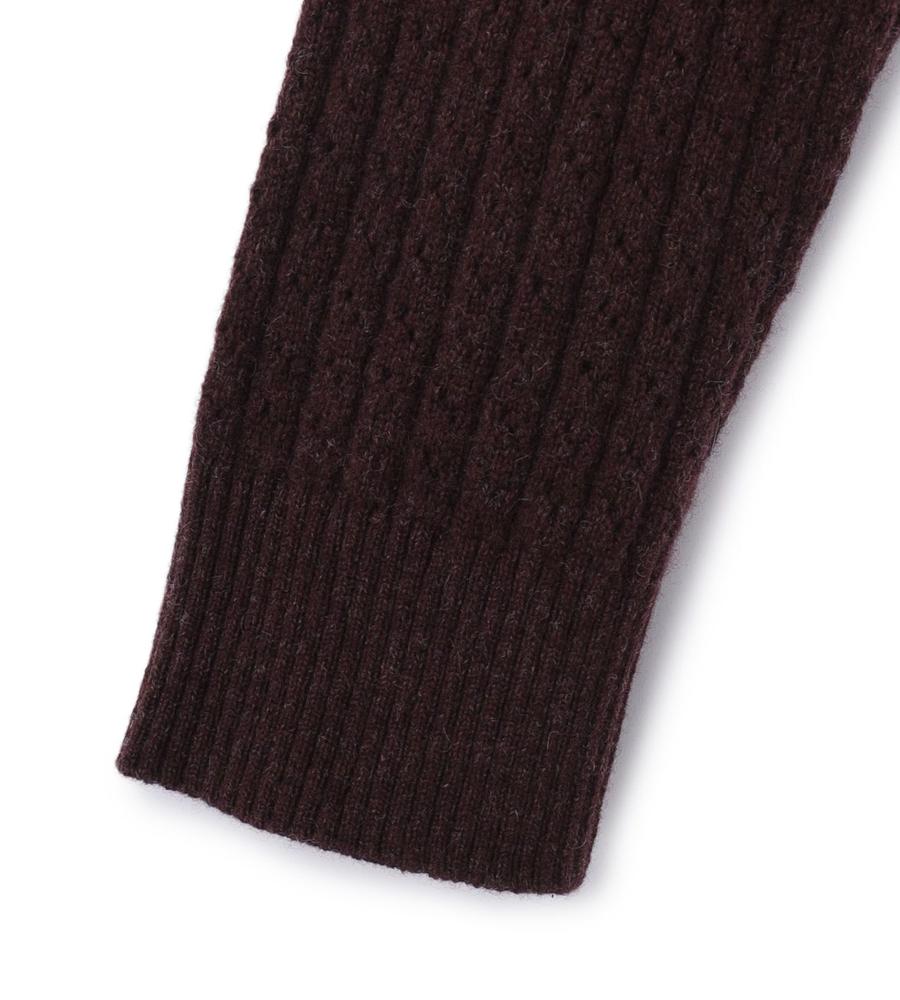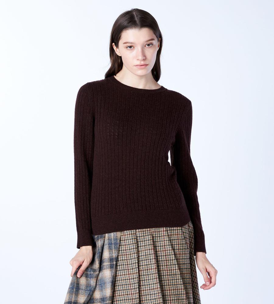 カシミヤをふんだんに用いたニットトップス。レースのような模様が浮かぶ編地で、上質ながらも大人の女性らしい気品を備えた1点です。身体にすっきりと寄り添うシルエットは、ジャケットなどのインナーにも最適。1枚使いでしっかり暖かさを実感できる、頼もしいアイテムです。ネックラインが開きすぎていないのもきちんとした印象で楽しめるポイント。