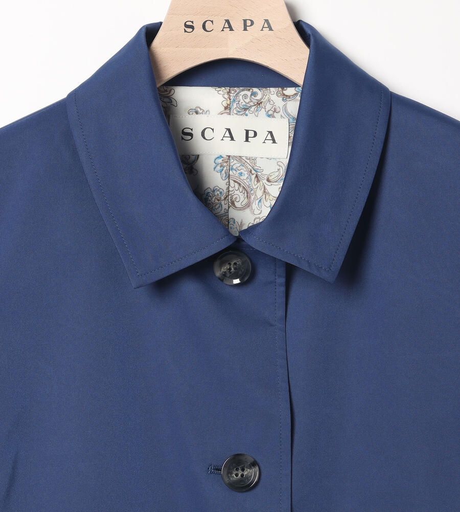 シンプルで洗練されたベーシックなデザインが幅広いスタイルにフィットするステンカラーコート。左右にポケットを配置し、ストレッチ性を備えた軽やかなポリエステル素材で仕立てています。部分裏地にはペイズリー柄を切り替えさりげない華やかさを添えました。